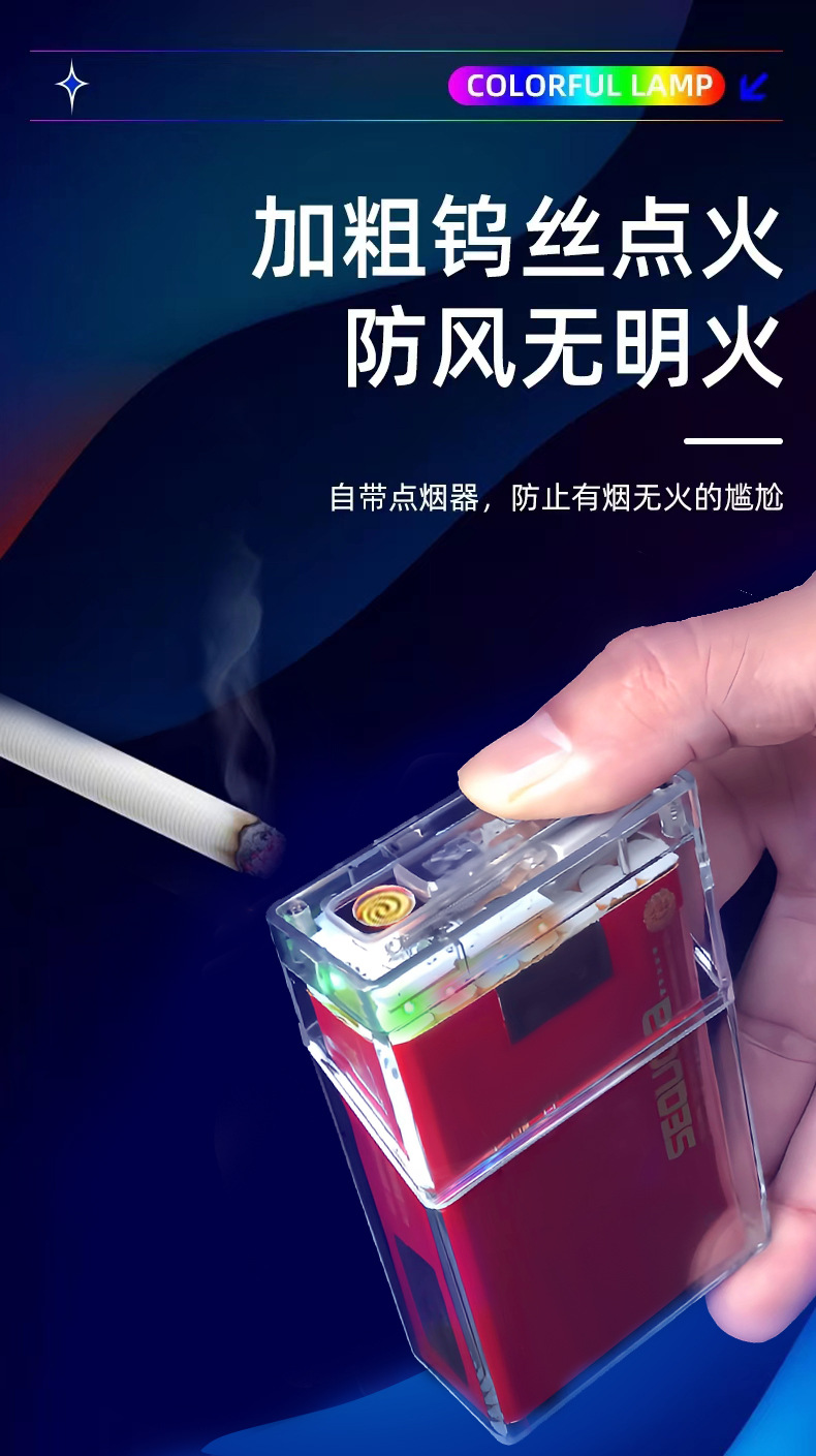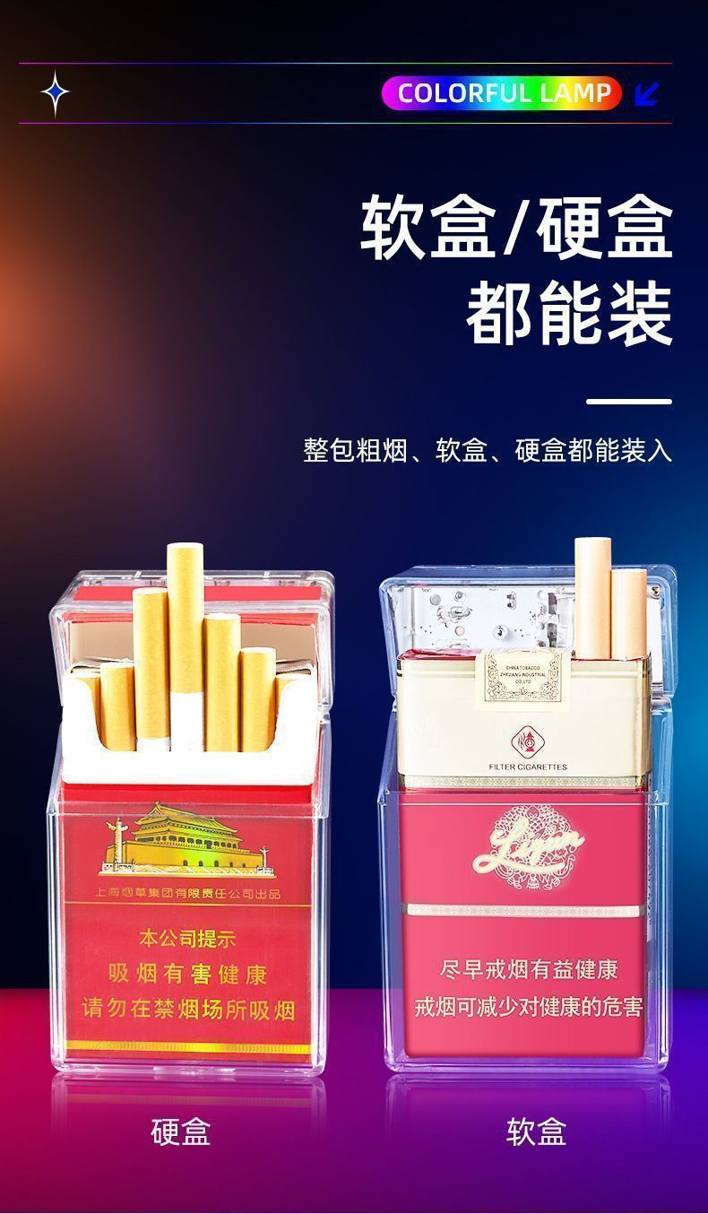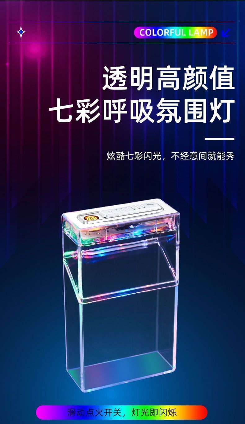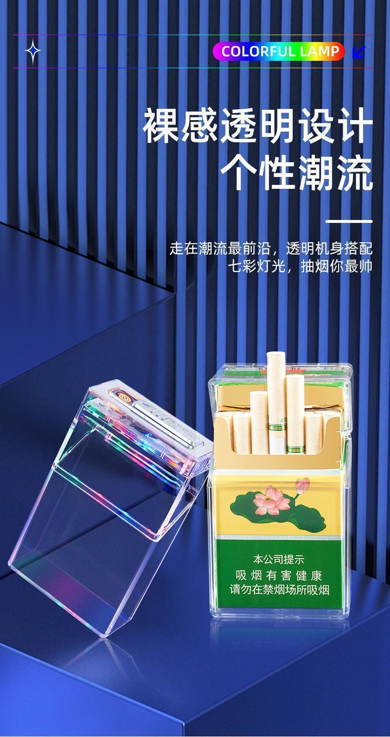 Casing Transparan Cahaya Suasana Lintas Batas Kotak Rokok Lampu Kilatan Visual 20 Charging Lighter Seluruh Kemasan Penutup Flip Anti Tekanan
