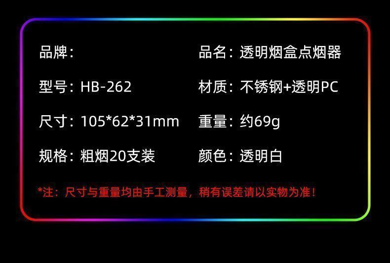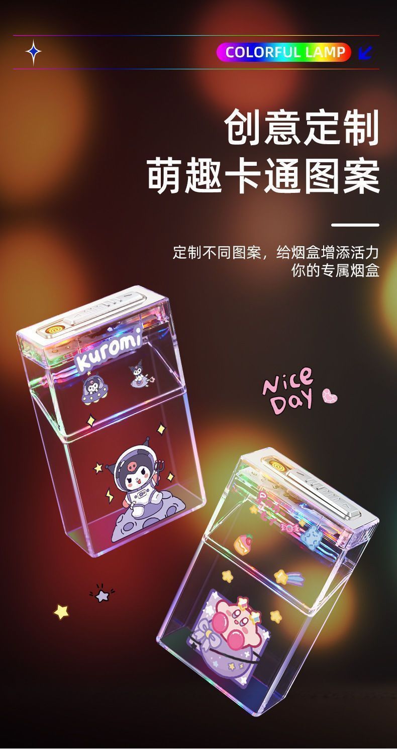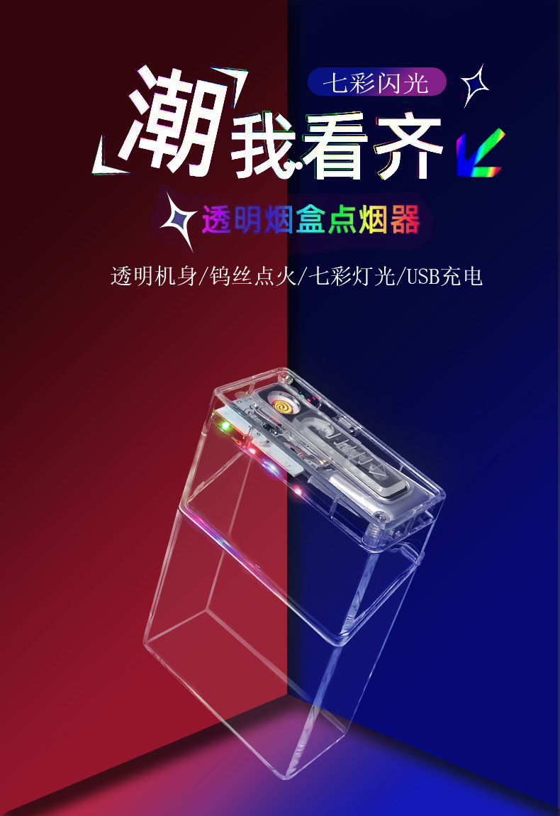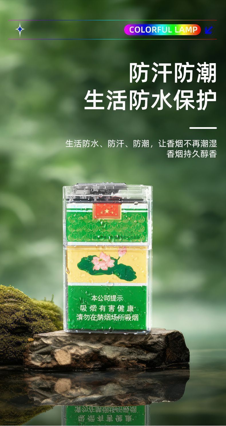 Casing Transparan Cahaya Suasana Lintas Batas Kotak Rokok Lampu Kilatan Visual 20 Charging Lighter Seluruh Kemasan Penutup Flip Anti Tekanan