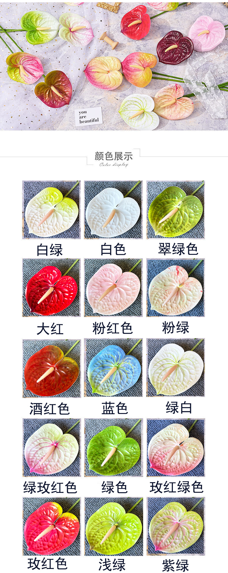 Anthurium anthurium bunga buatan tangan flamingo palem dekorasi pernikahan fotografi bunga tinggi bahan bunga merangkai bunga dekorasi bunga palsu