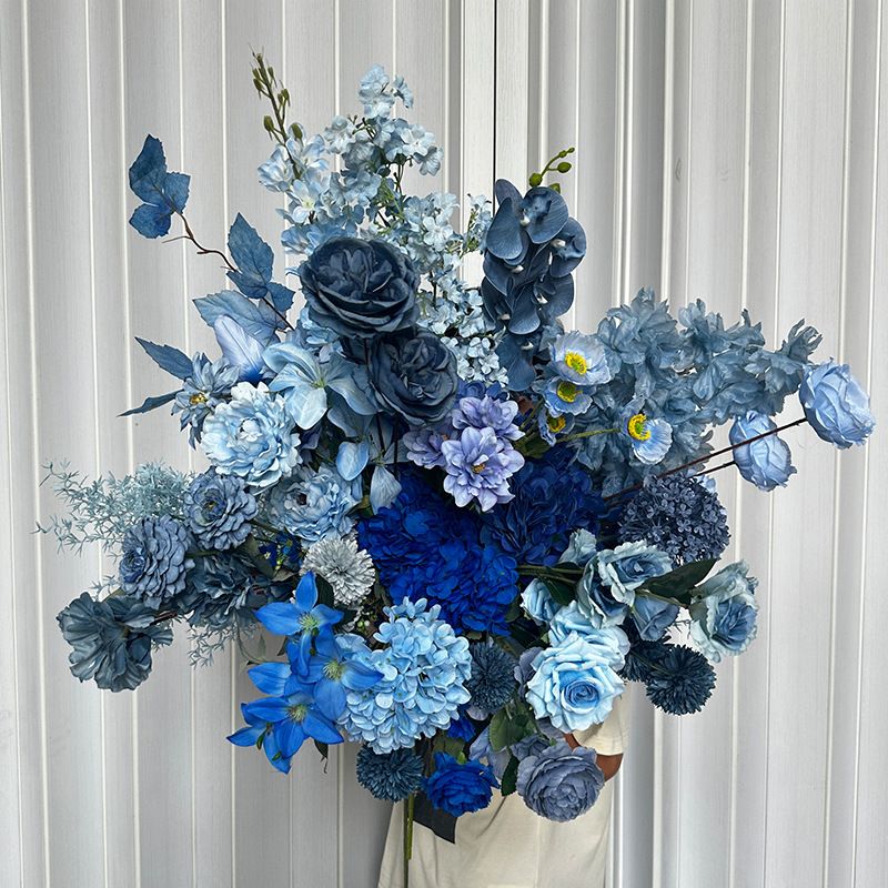 Bunga buatan biru untuk bunga pernikahan, dekorasi latar belakang panggung langit-langit hotel, bunga buatan, mawar, hydrangea, bunga buatan