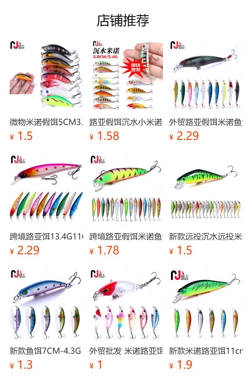Luya umpan pancing Luya, umpan palsu mengambang air Mino bionik mikro-objek, umpan pancing laut 8 warna grosir