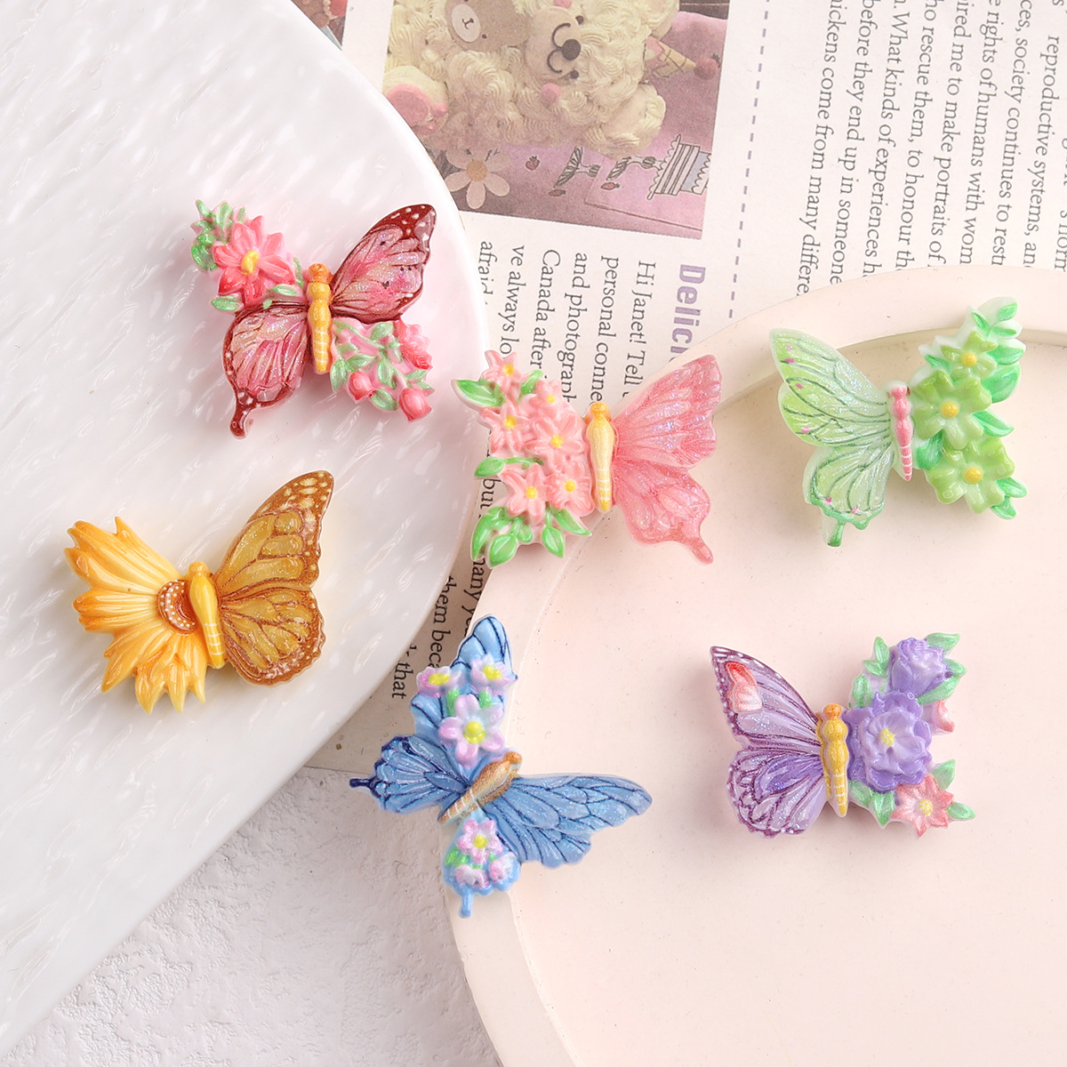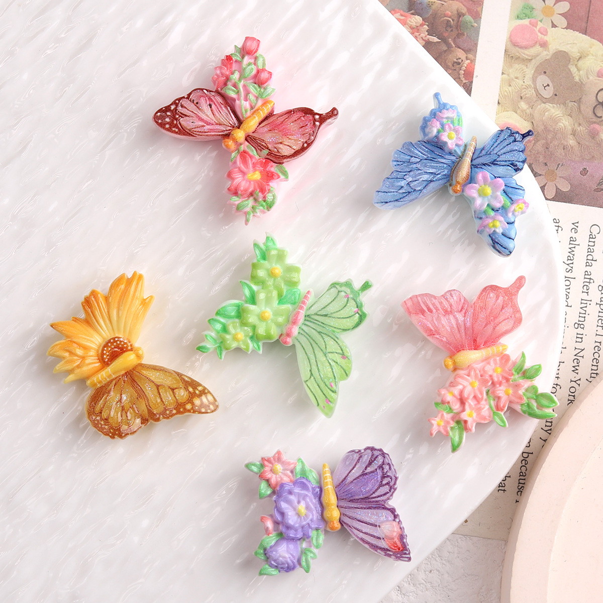 Aksesoris Resin DIY Kartun Jepitan Rambut Buatan Tangan Lem Krim Kupu-kupu Bunga Aksesoris Gesper Sepatu Ponsel