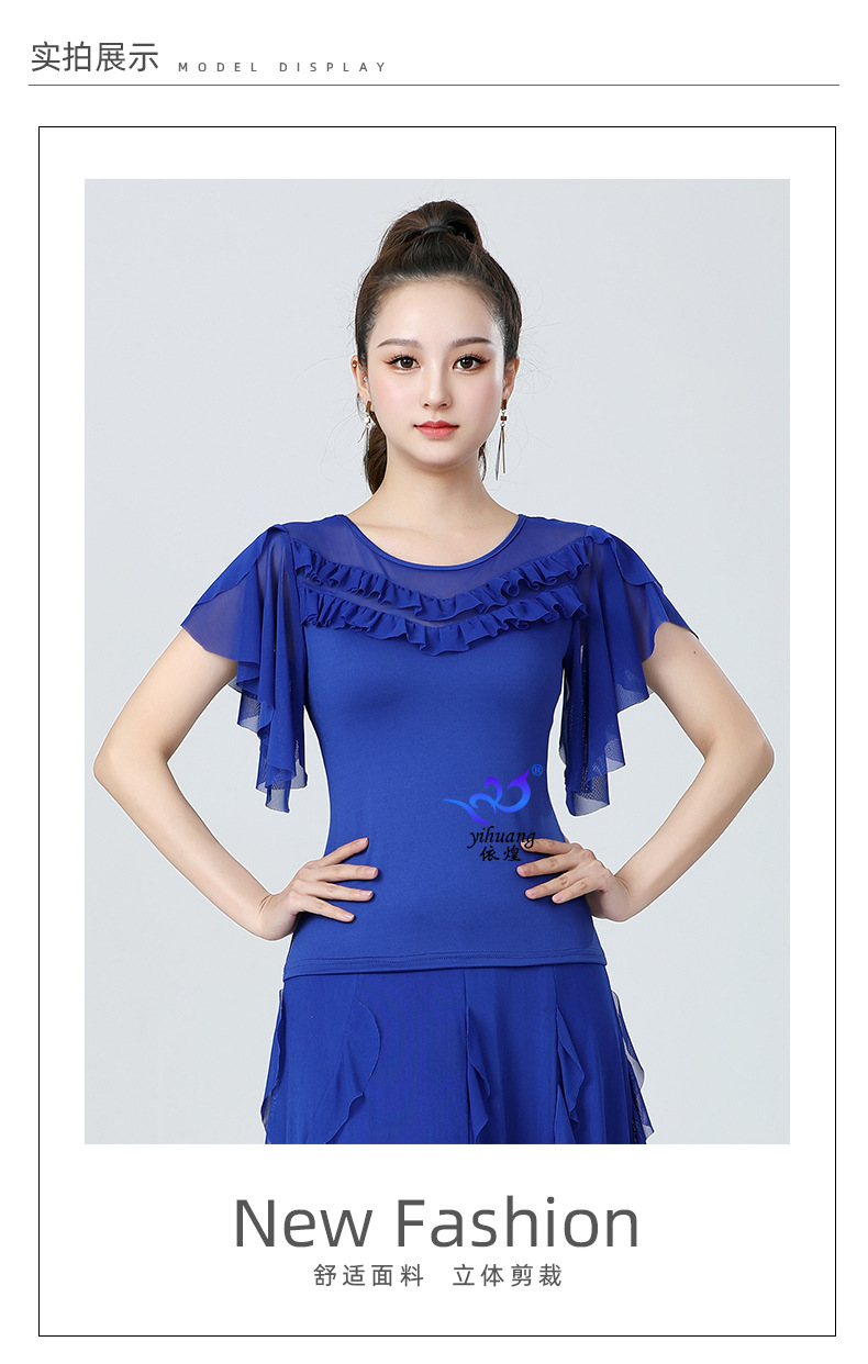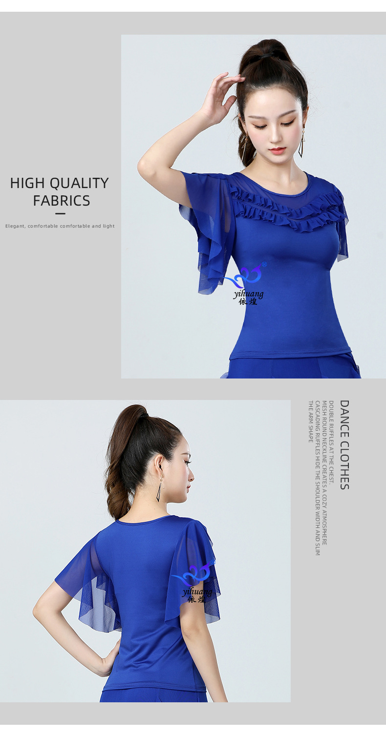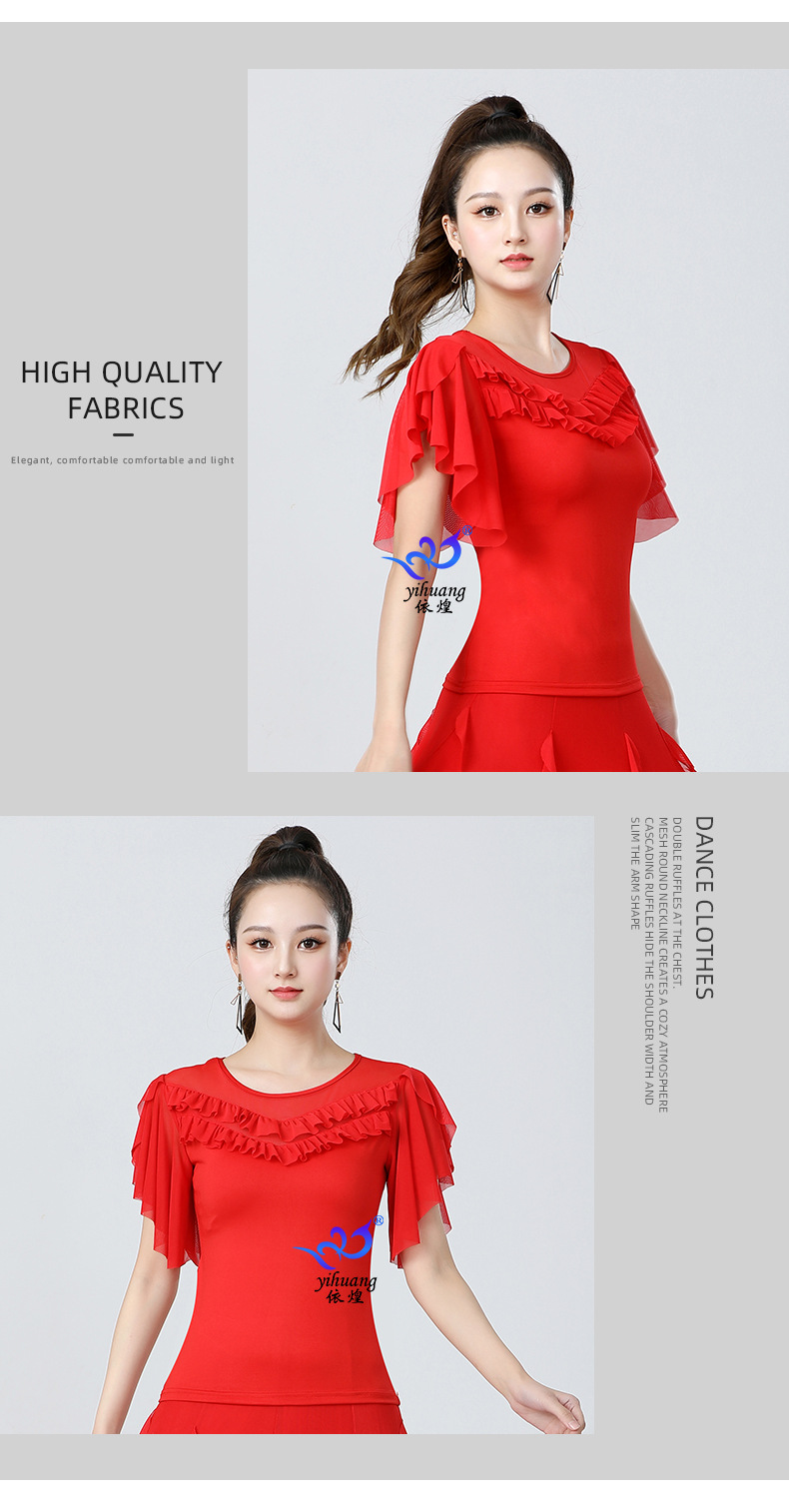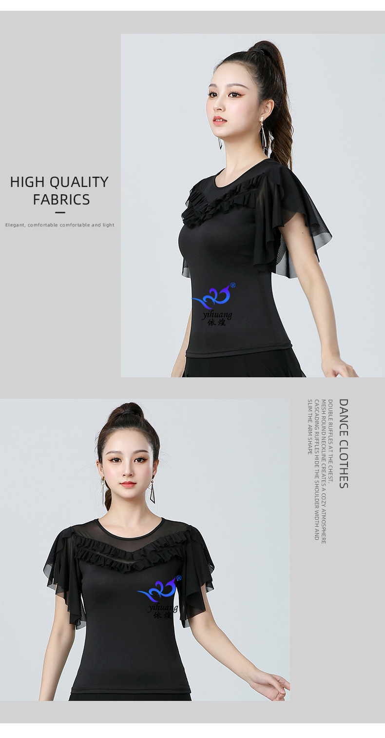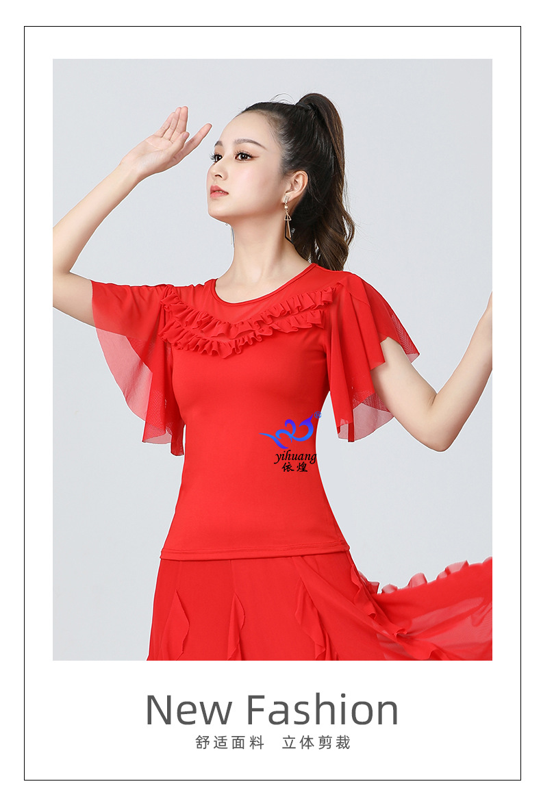 Pakaian dansa Modern, atasan dansa Latin, pakaian latihan lengan bel, penampilan panggung