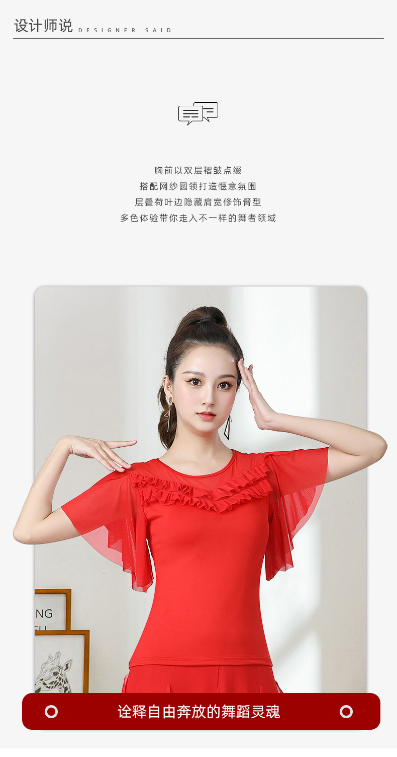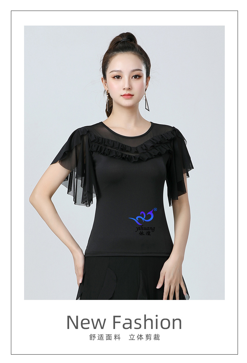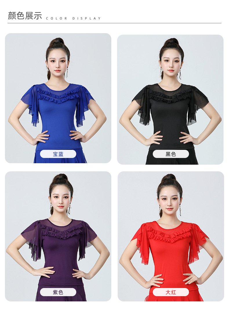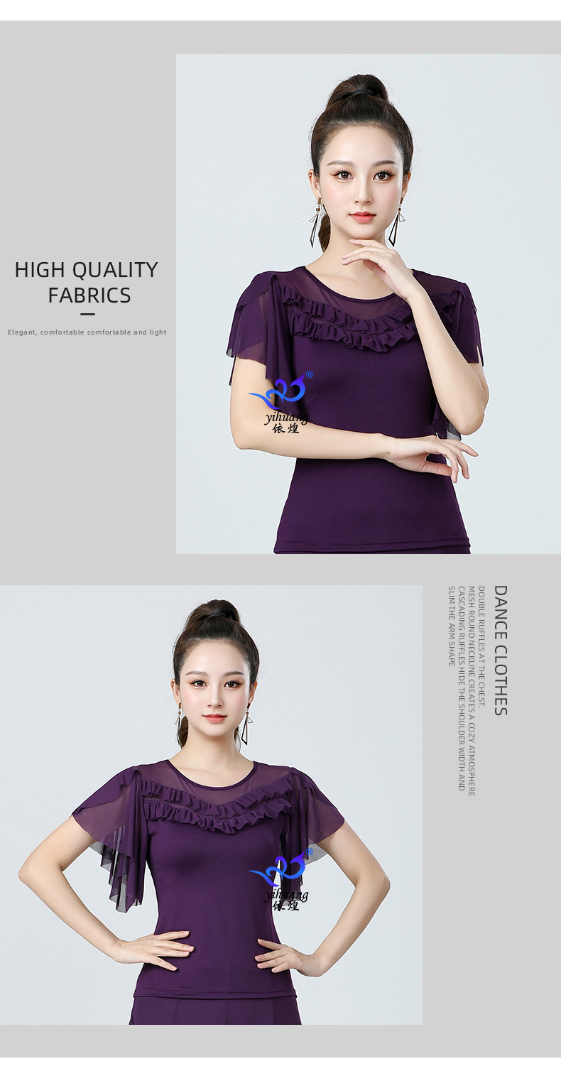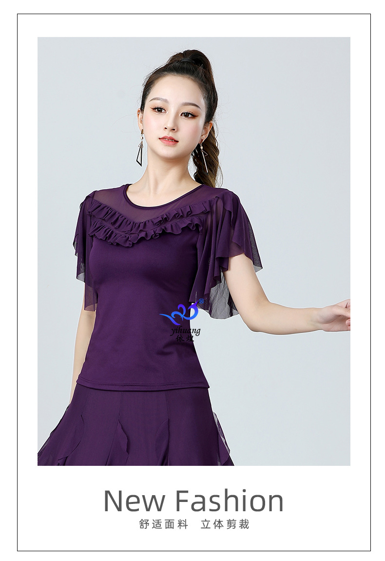 Pakaian dansa Modern, atasan dansa Latin, pakaian latihan lengan bel, penampilan panggung