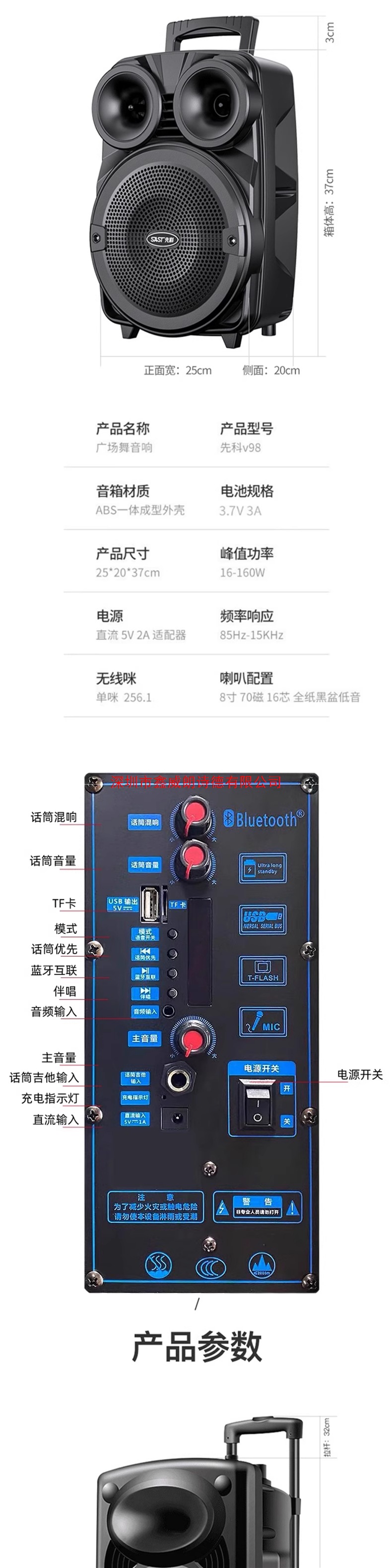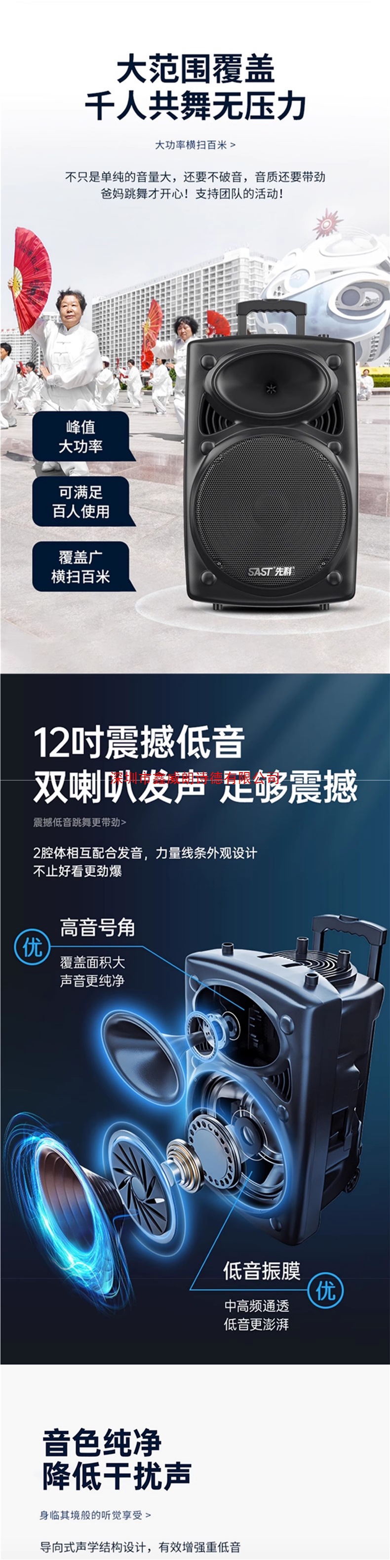 先科广场舞音响专业户外k歌音箱带话筒家用拉杆蓝牙手拉麦克风
