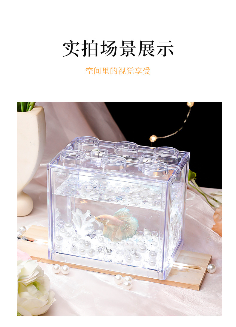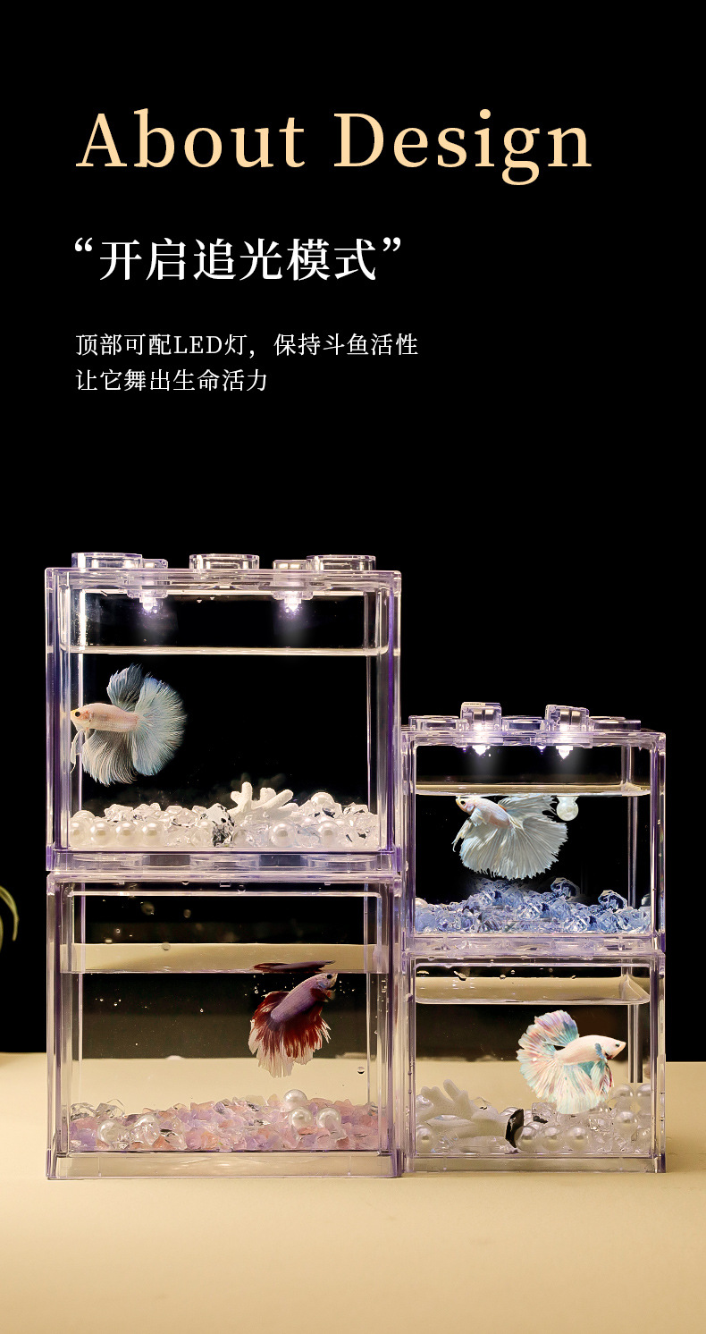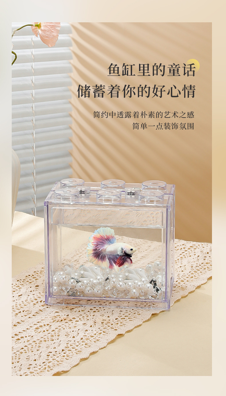 Tabel Tangki Ikan Thailand Ikan cupang Kecil Ikan Hias Hewan Peliharaan Hidup Ditumpuk dengan Balok Lego Tangki 6 Lubang Transparan Tinggi