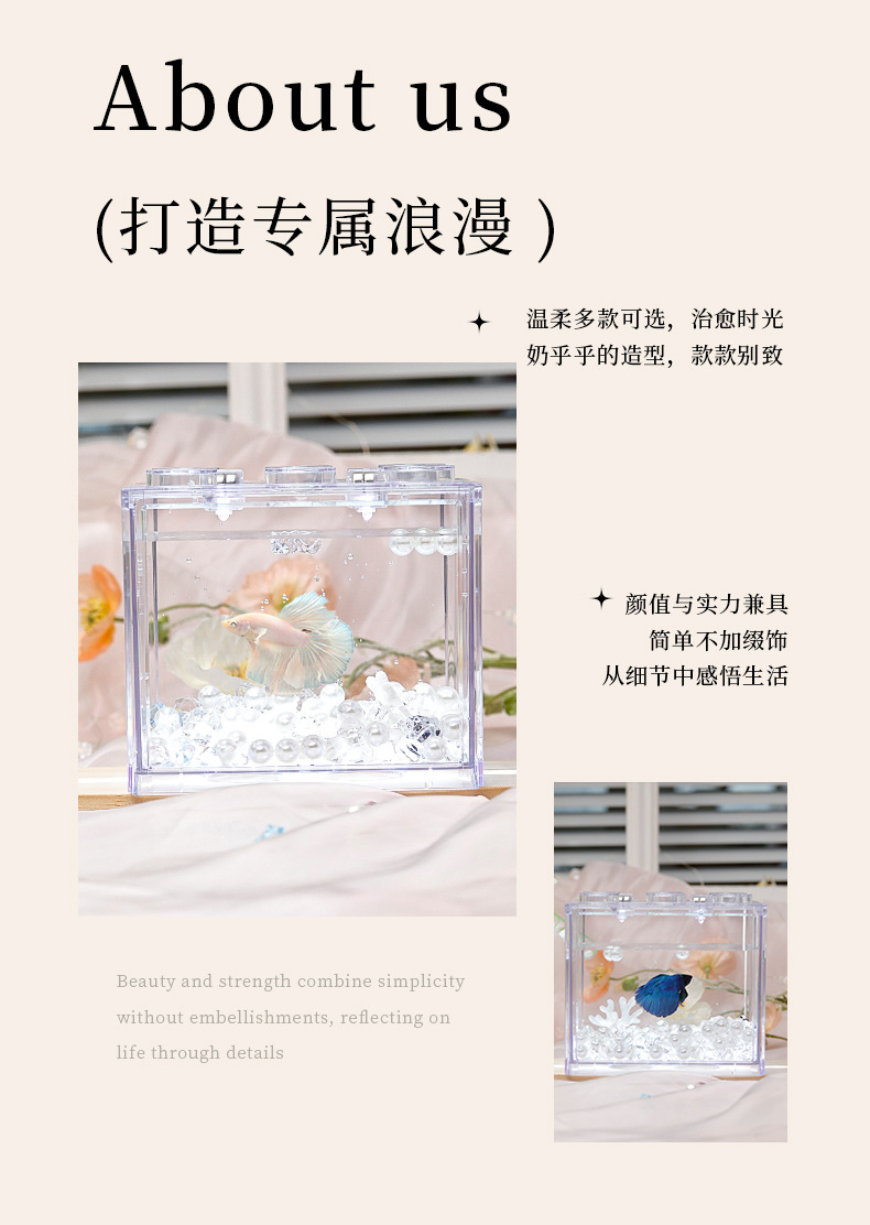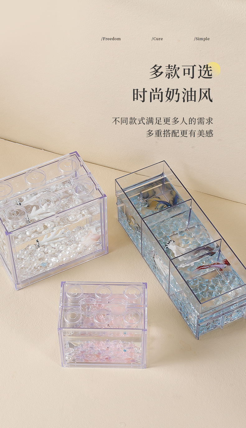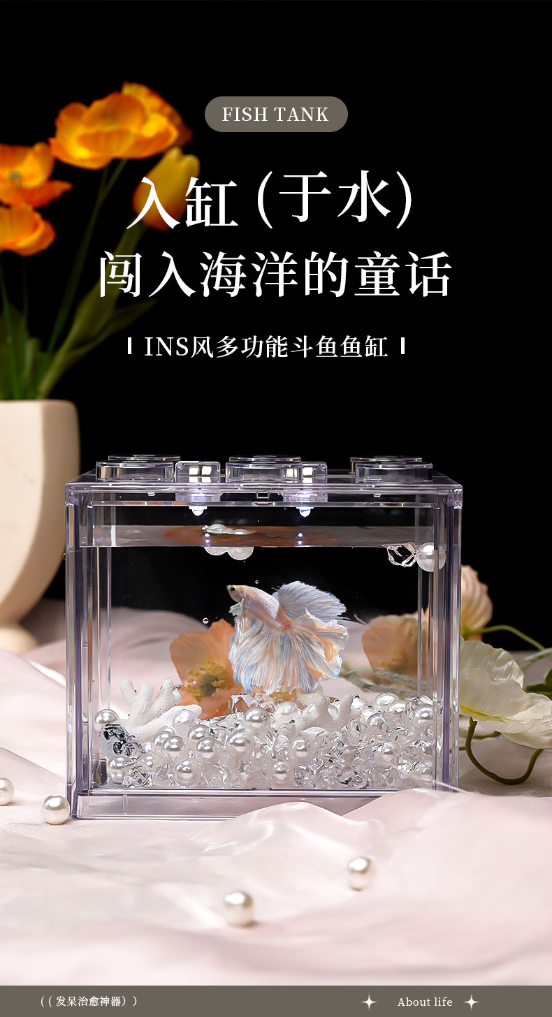 Tabel Tangki Ikan Thailand Ikan cupang Kecil Ikan Hias Hewan Peliharaan Hidup Ditumpuk dengan Balok Lego Tangki 6 Lubang Transparan Tinggi