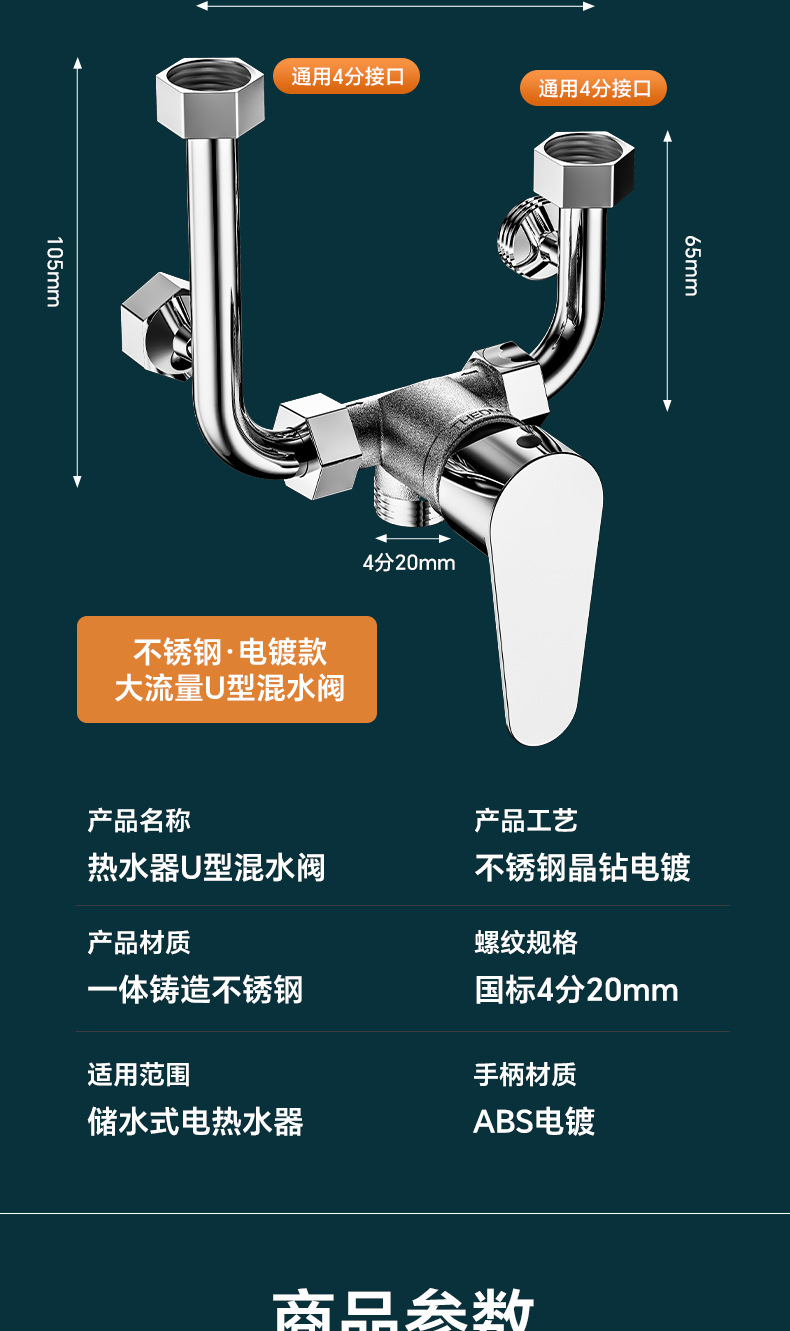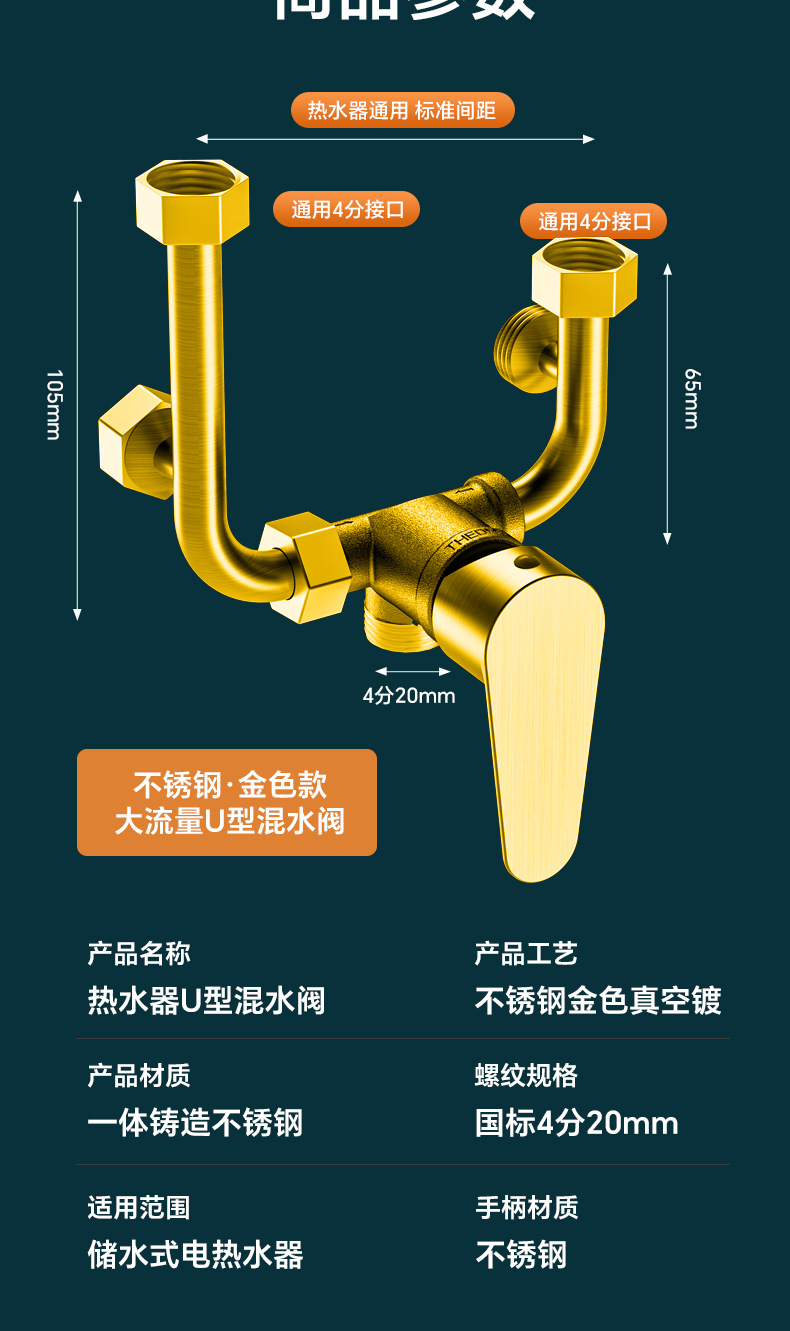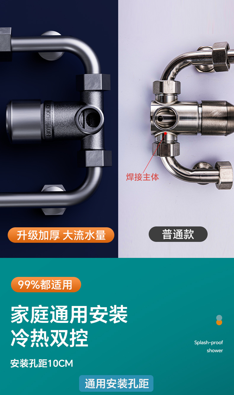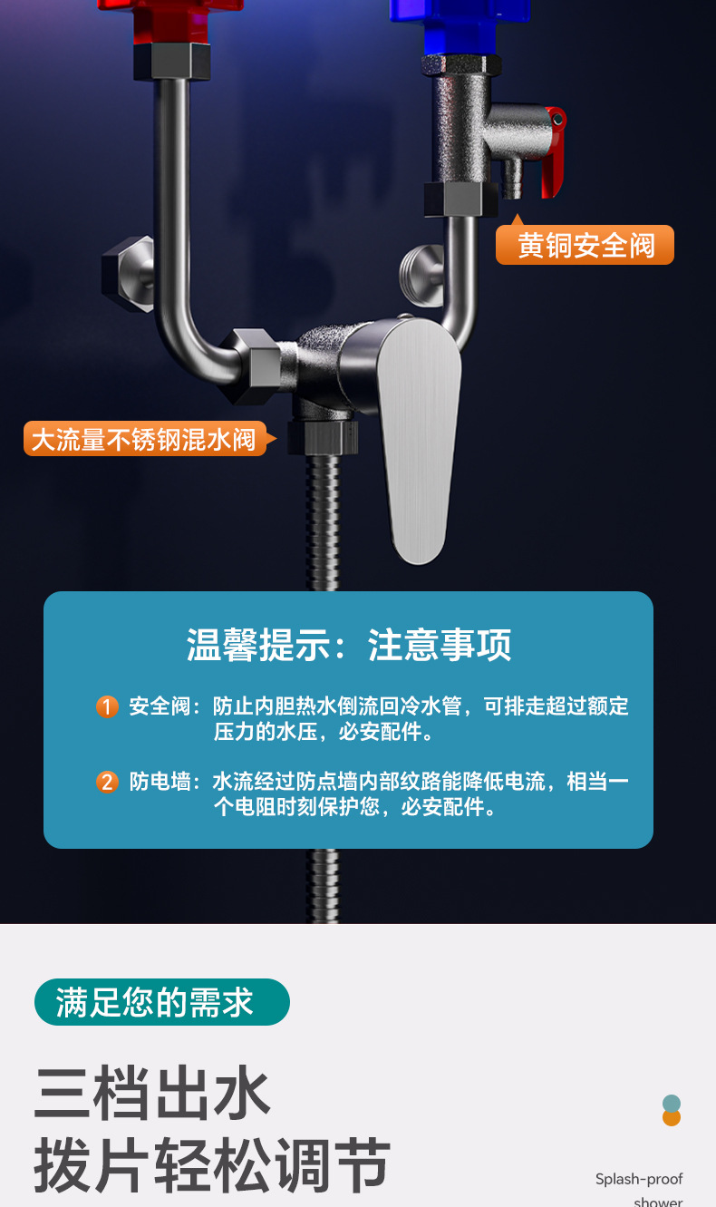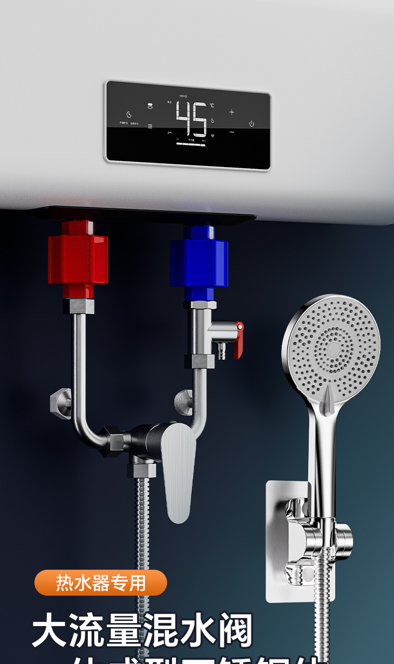 Katup pencampur pemanas air listrik baja tahan karat 304, katup berbentuk U untuk shower, saklar pemanas air berbentuk U, aliran tinggi anti-kejut listrik, untuk dinding