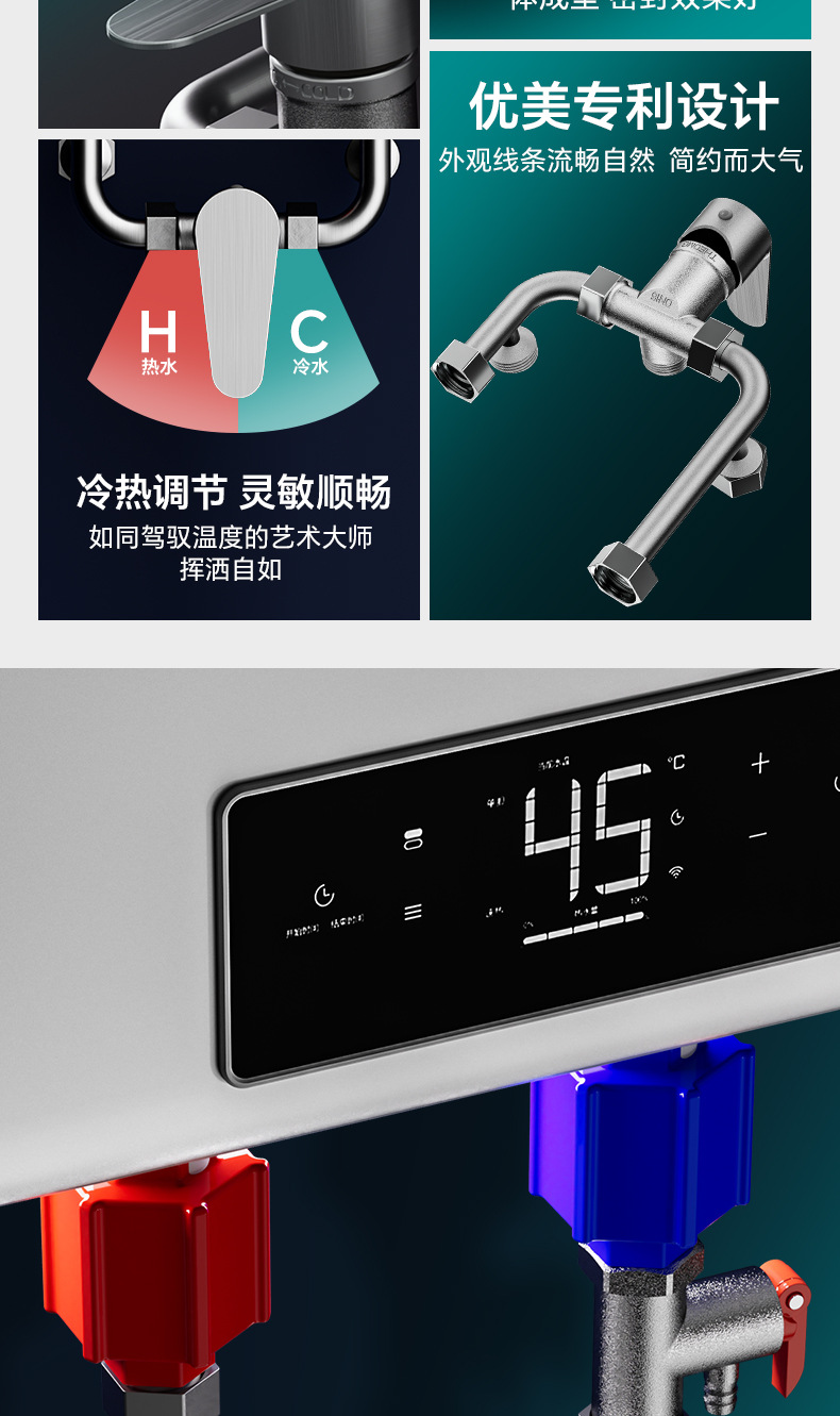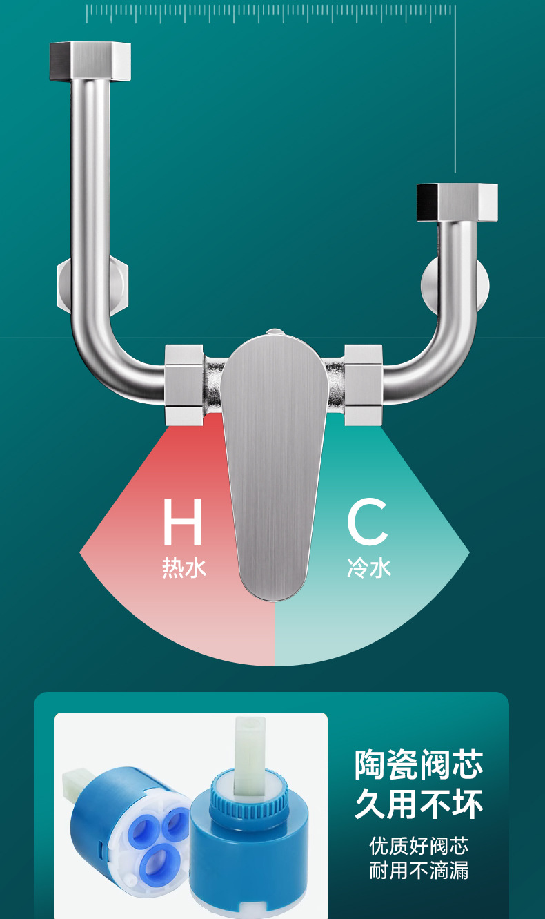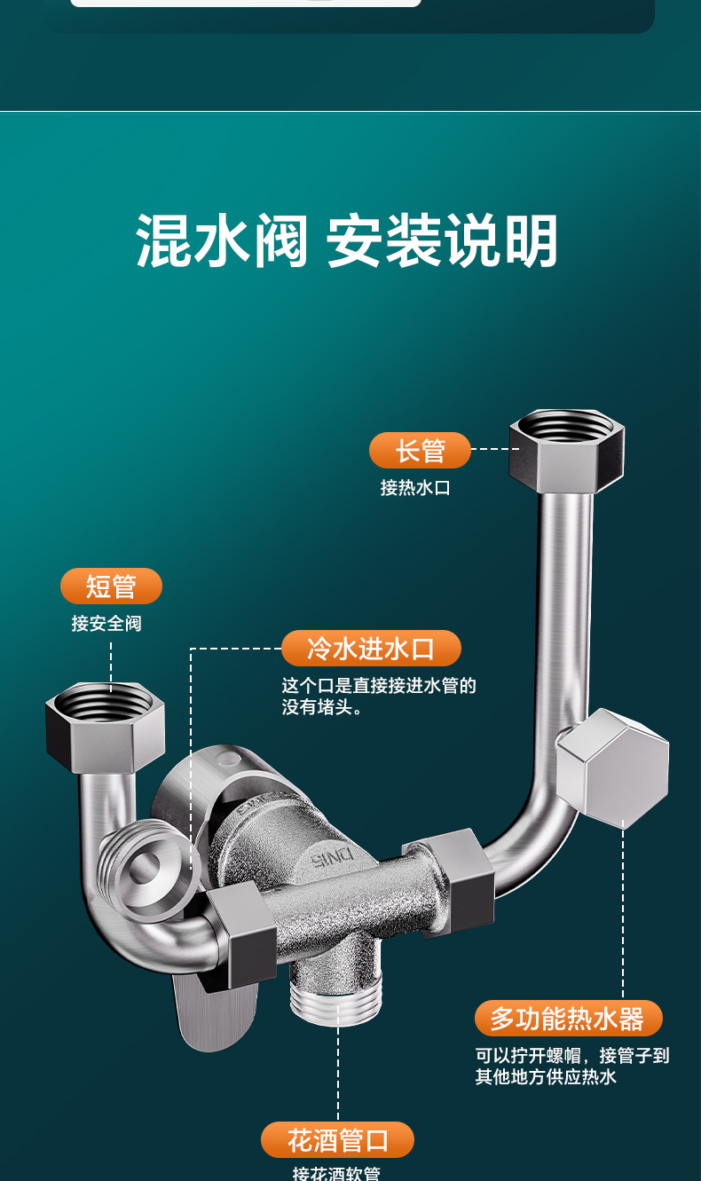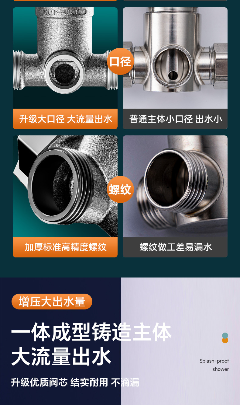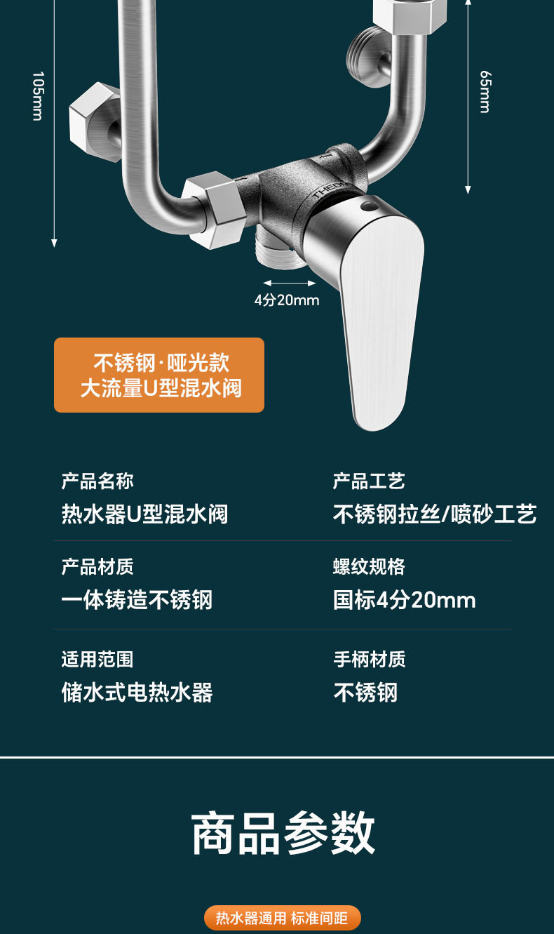 Katup pencampur pemanas air listrik baja tahan karat 304, katup berbentuk U untuk shower, saklar pemanas air berbentuk U, aliran tinggi anti-kejut listrik, untuk dinding