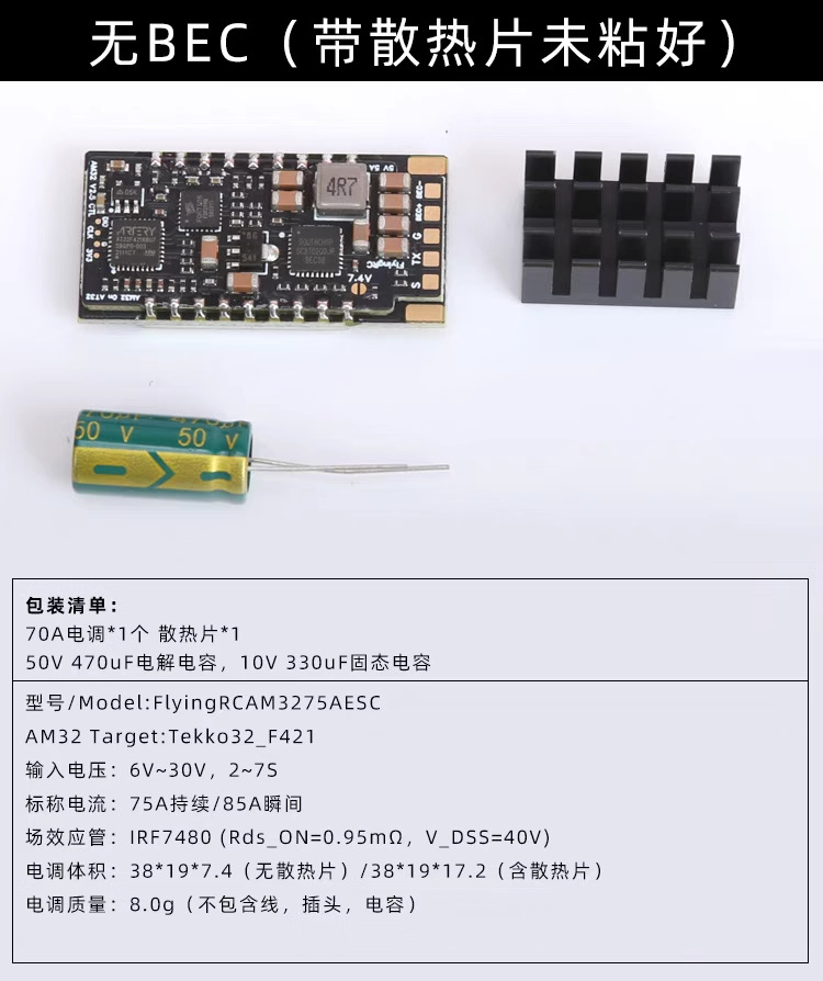 FlyingRC AM32 ESC V2.5 75A brushless tunggal mobil segel emas model pesawat BEC crossover fpv