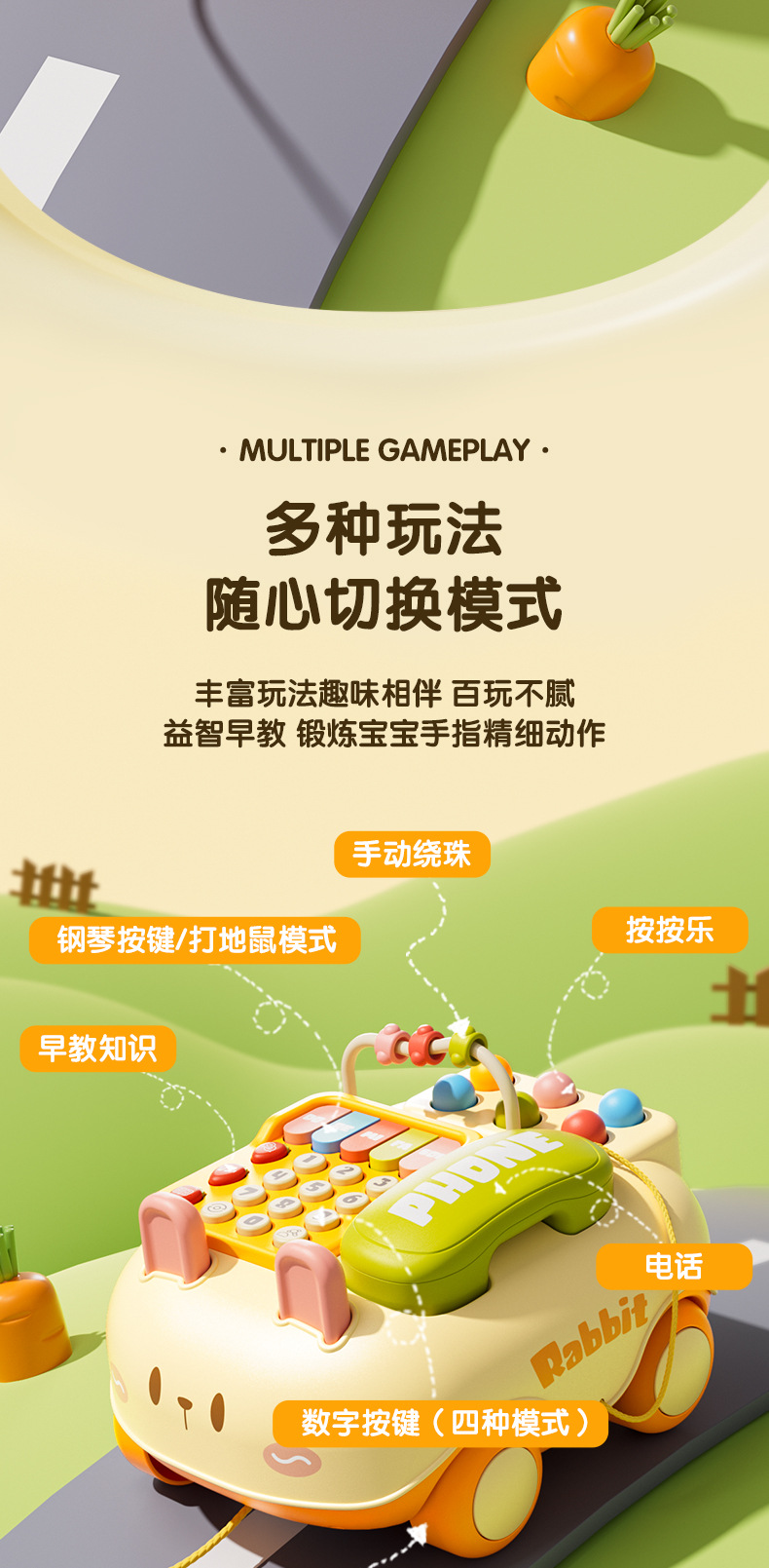 Anak-anak lintas batas multifungsi telepon simulasi permainan tikus cerita musik pendidikan awal bayi 1 tahun anak laki-laki dan perempuan