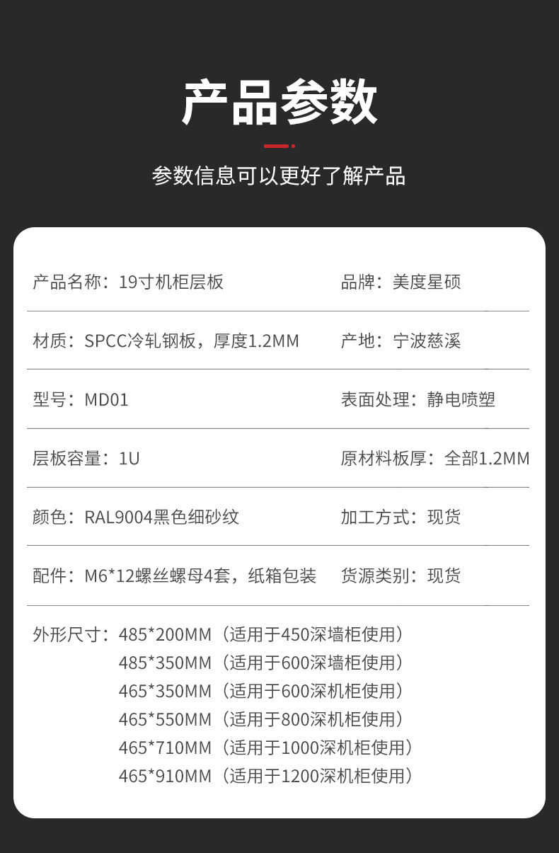 Rak standar kabinet 19 inci, palet Aksesori kabinet jaringan kedalaman 465mm 350mm