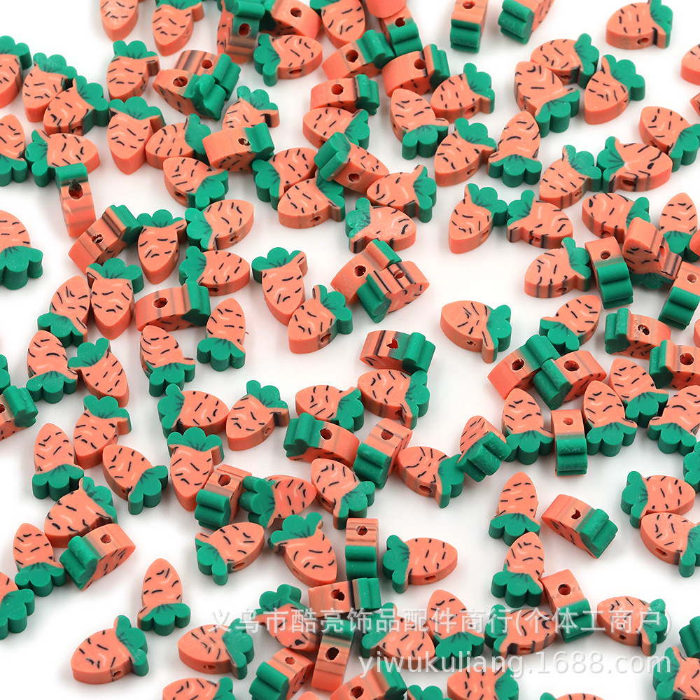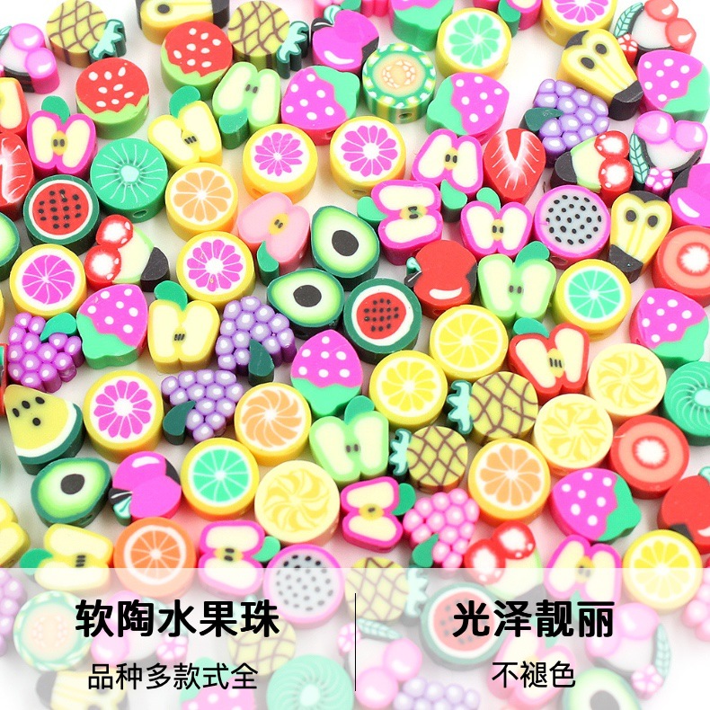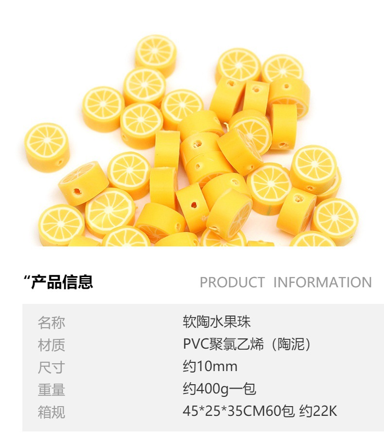 软陶珠10mm软陶切片水果橙子西瓜粘土珠儿童DIY手链项链串珠配件