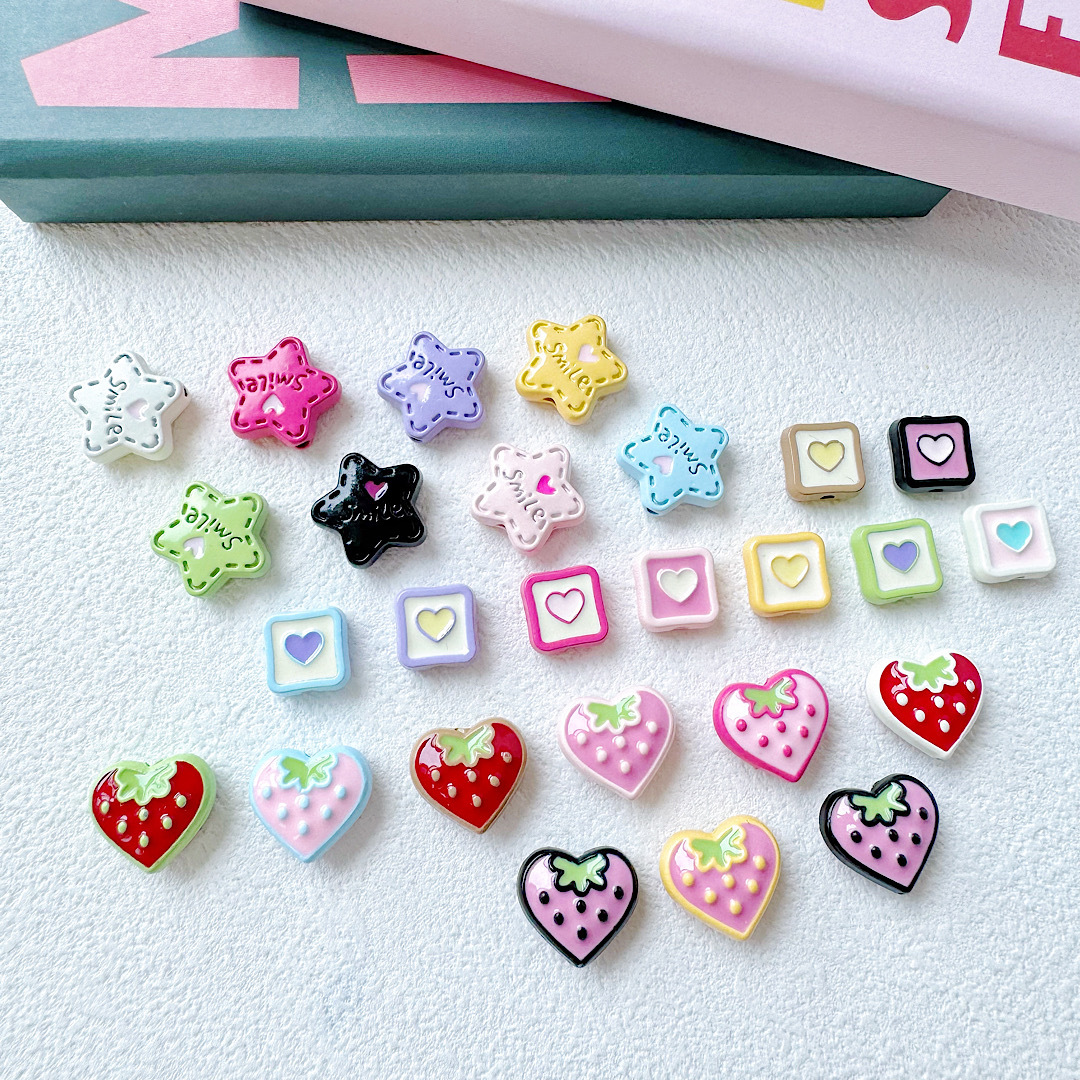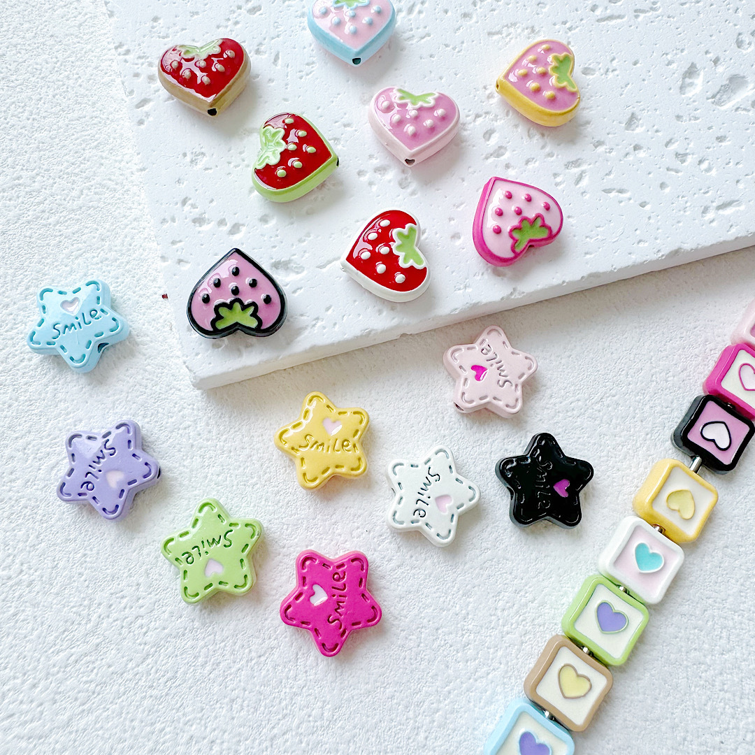 Macaron Gelang Gelang Manik-manik DIY Buatan Tangan Paduan Cat Hati Bintang Stroberi Lucu Warna Macaron Aksesoris Perhiasan