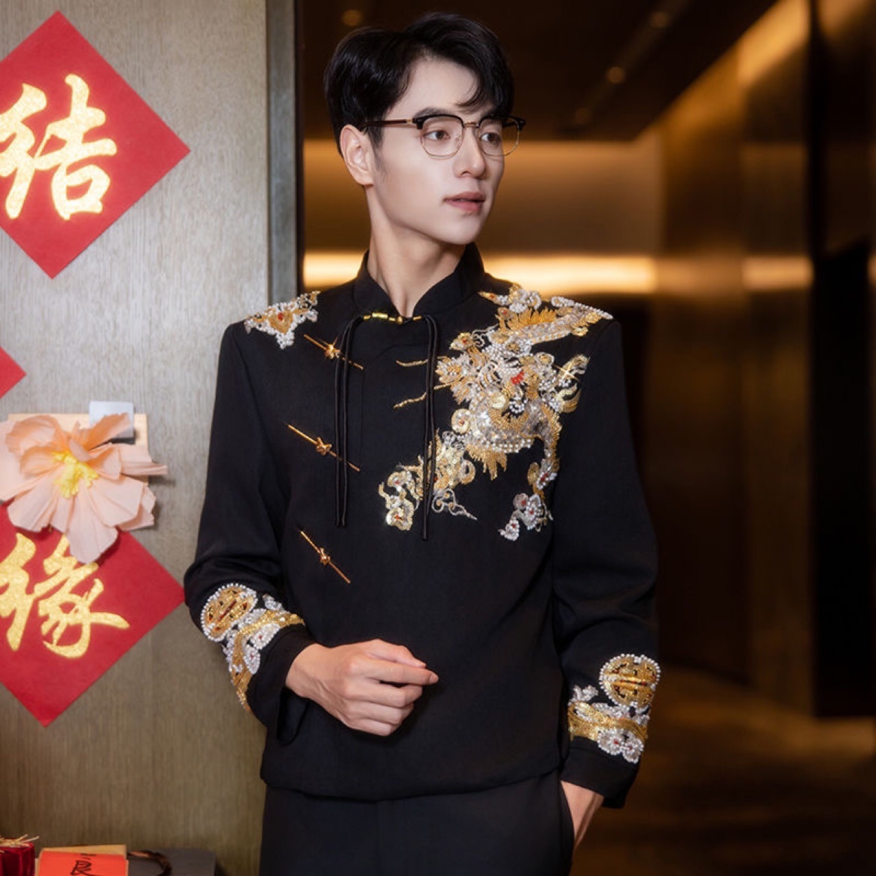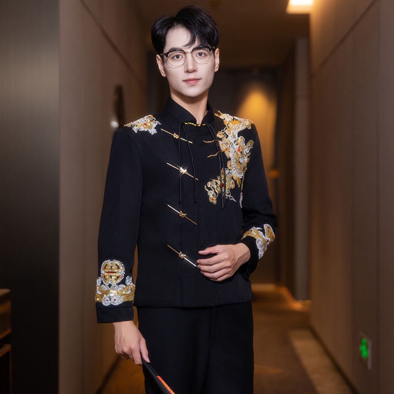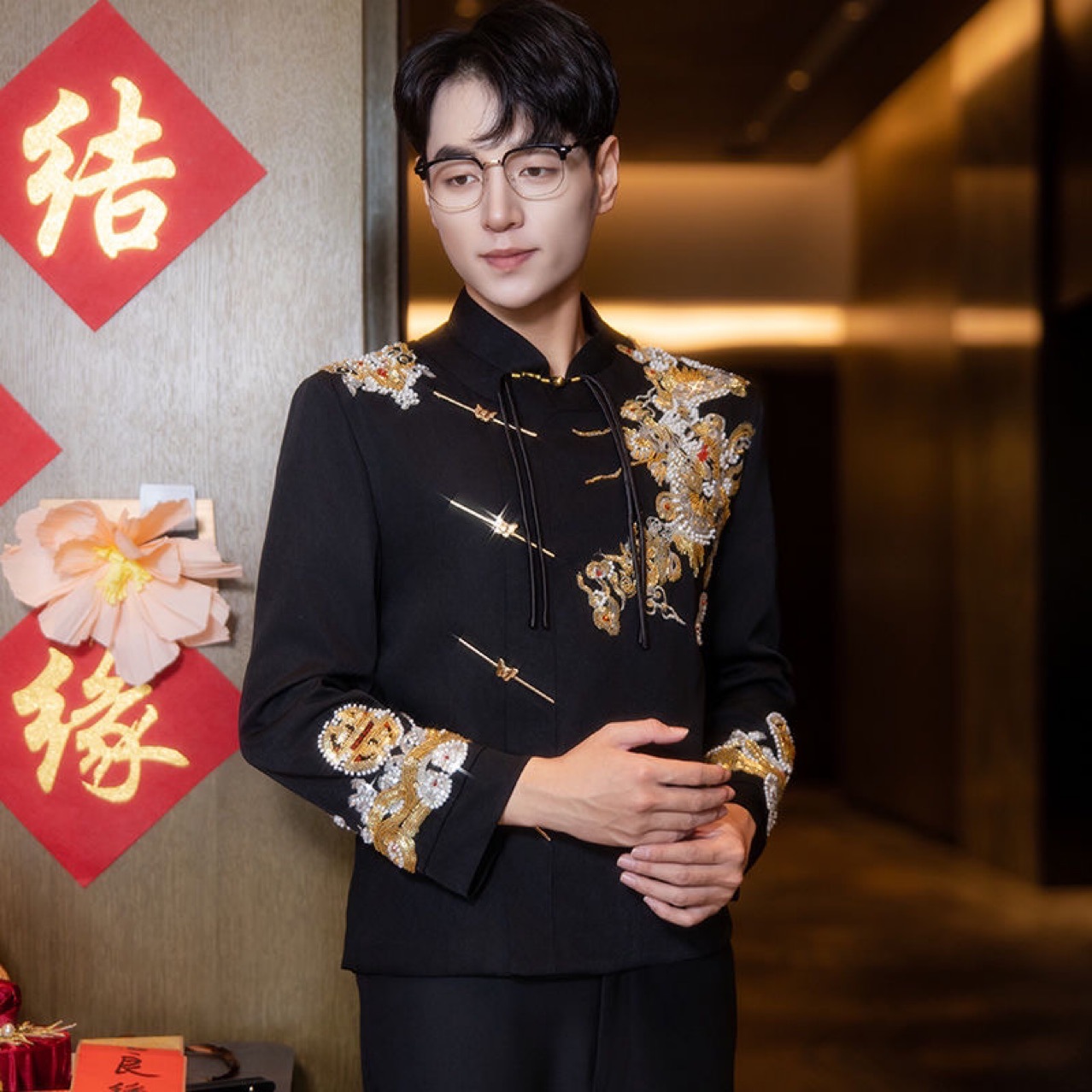 新中式黑色男装中山装男士结婚西服套装婚礼新郎礼服订婚婚服唐装