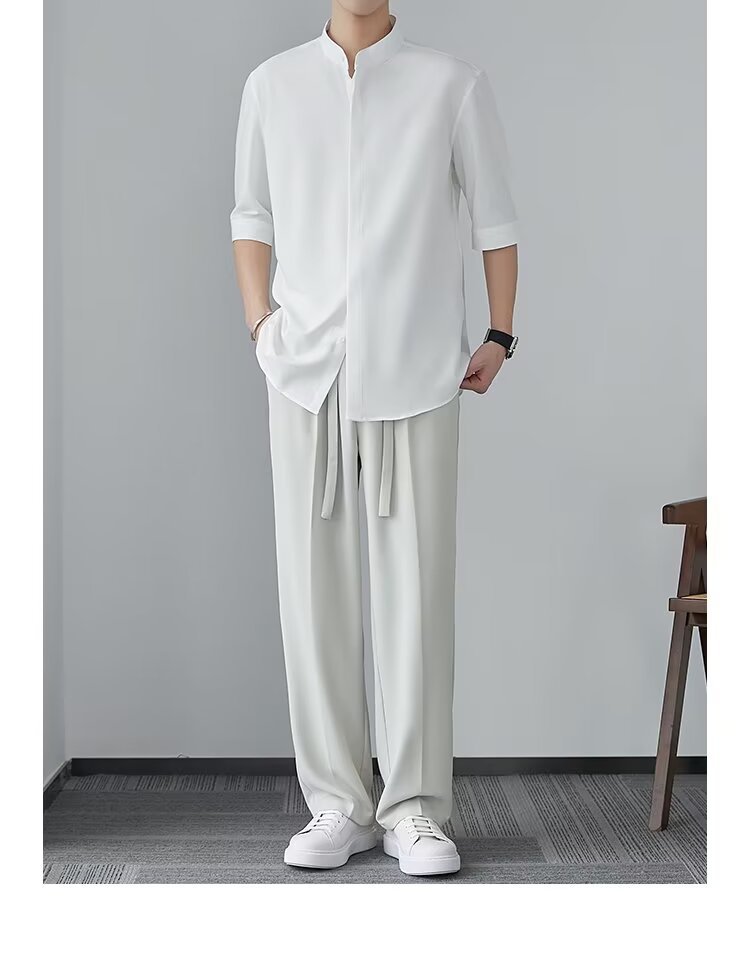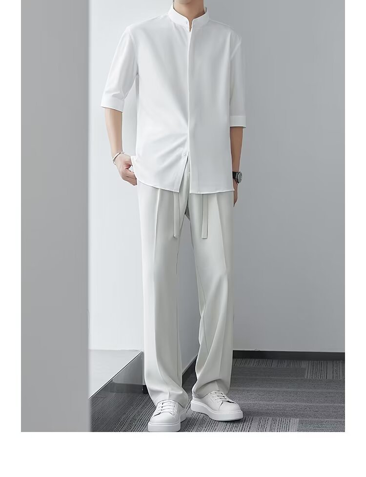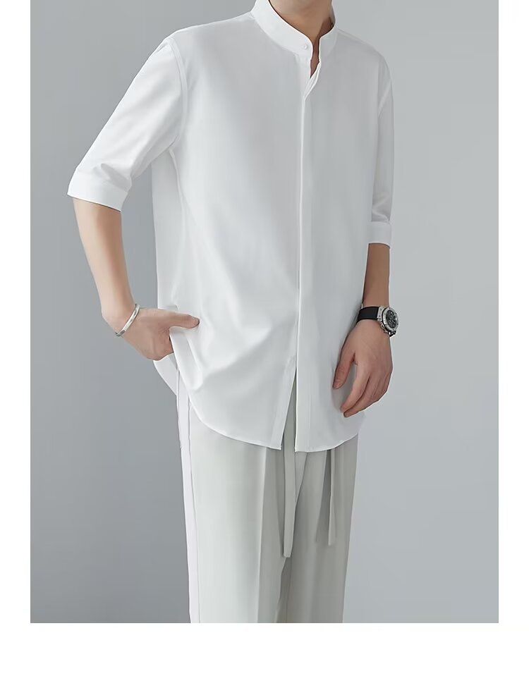 Kemeja Lengan Pendek Pria Gaya Tiongkok Baru Pakaian Pria Musim Panas Gaya Korea Slim Fit Tidak Tersetrika Kemeja Lengan Setengah Setengah