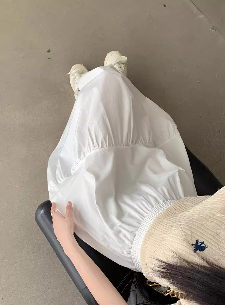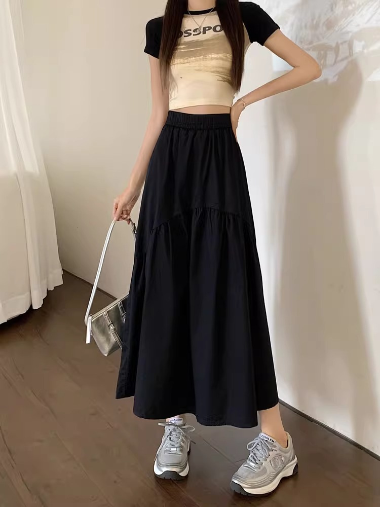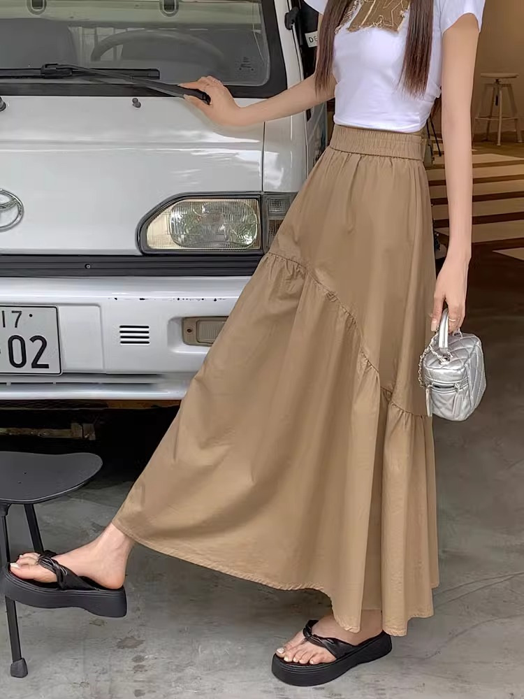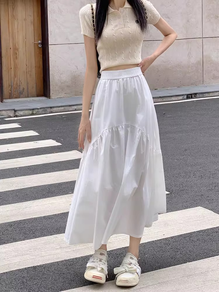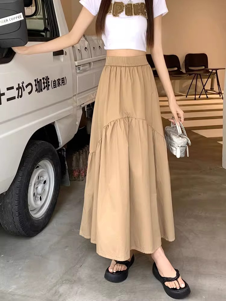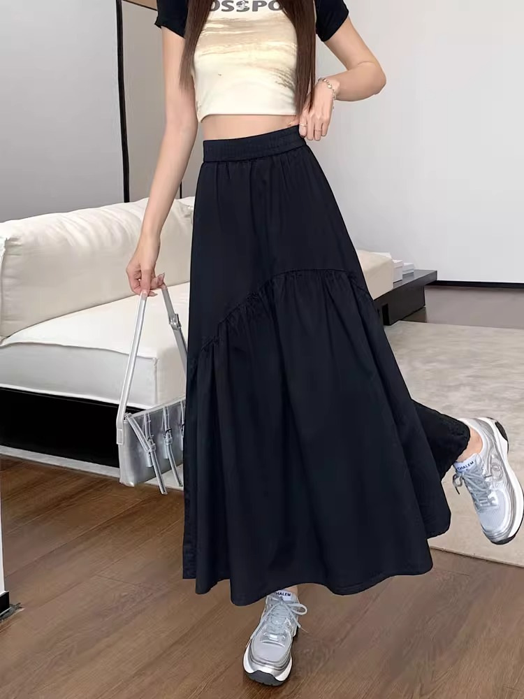 Rok kecil 2024 rok panjang pinggang elastis jahitan berlipat desain modis gaya Korea baru musim panas