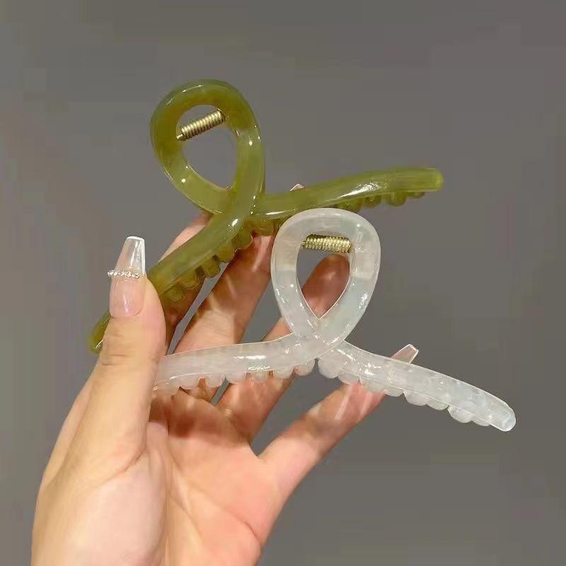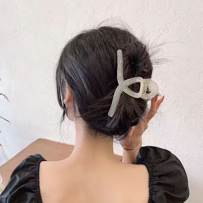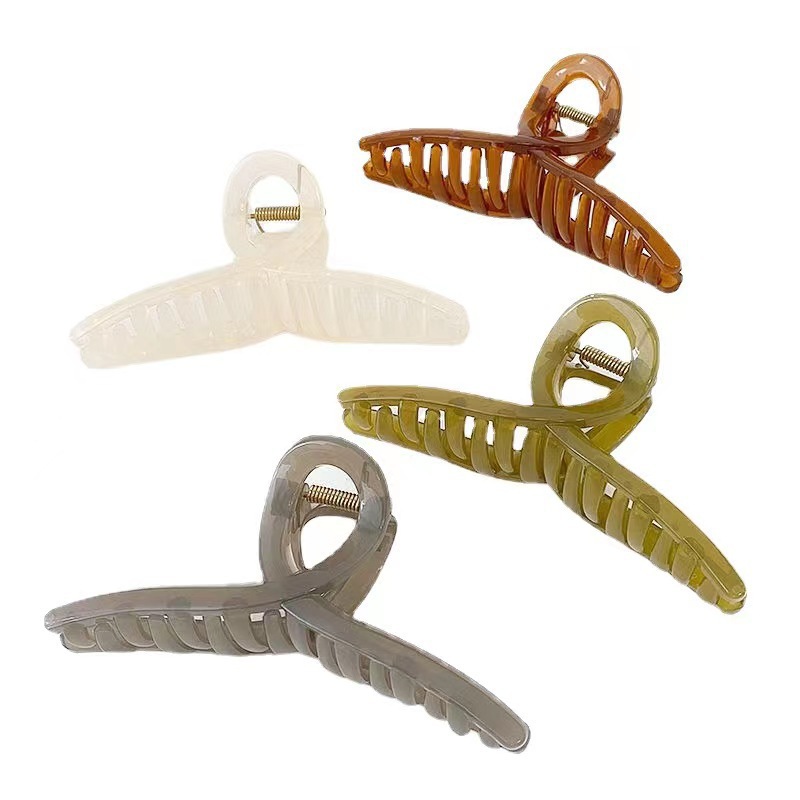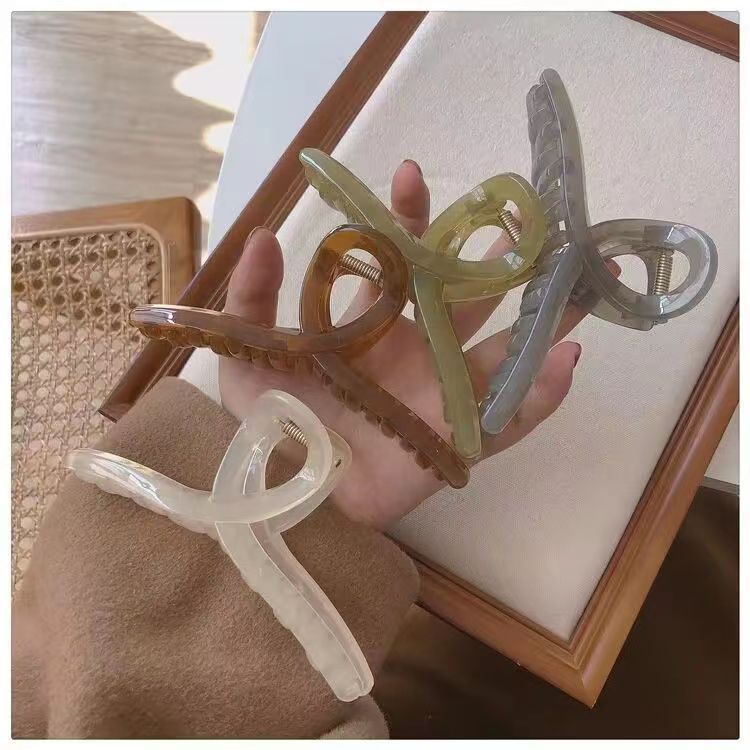 果冻透色韩国复古大号简约交叉抓夹后脑勺发卡鲨鱼夹 发夹diy底托