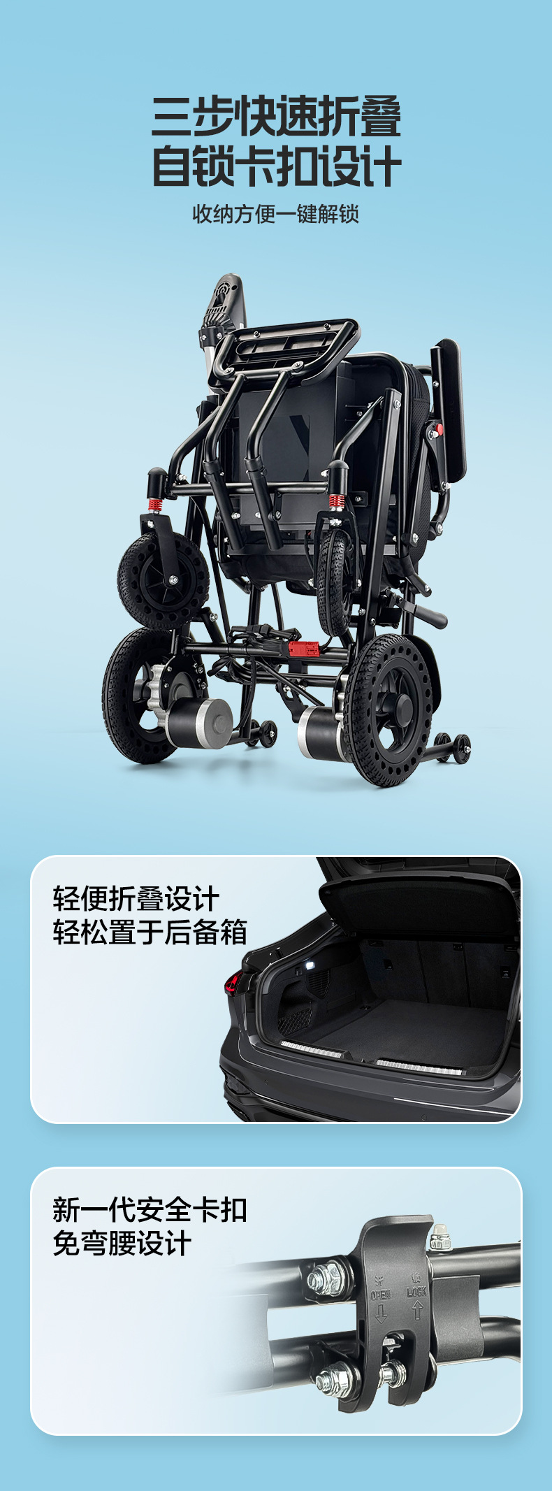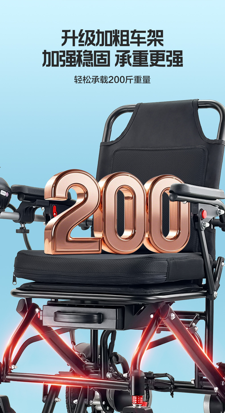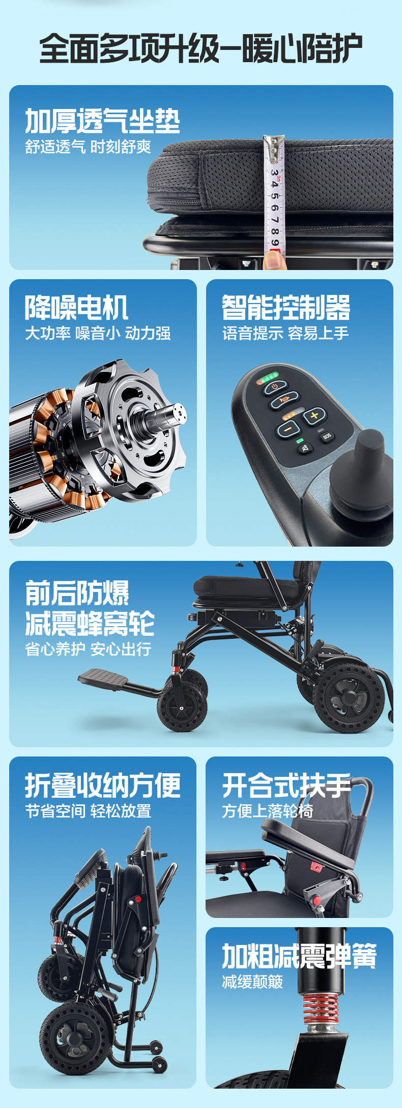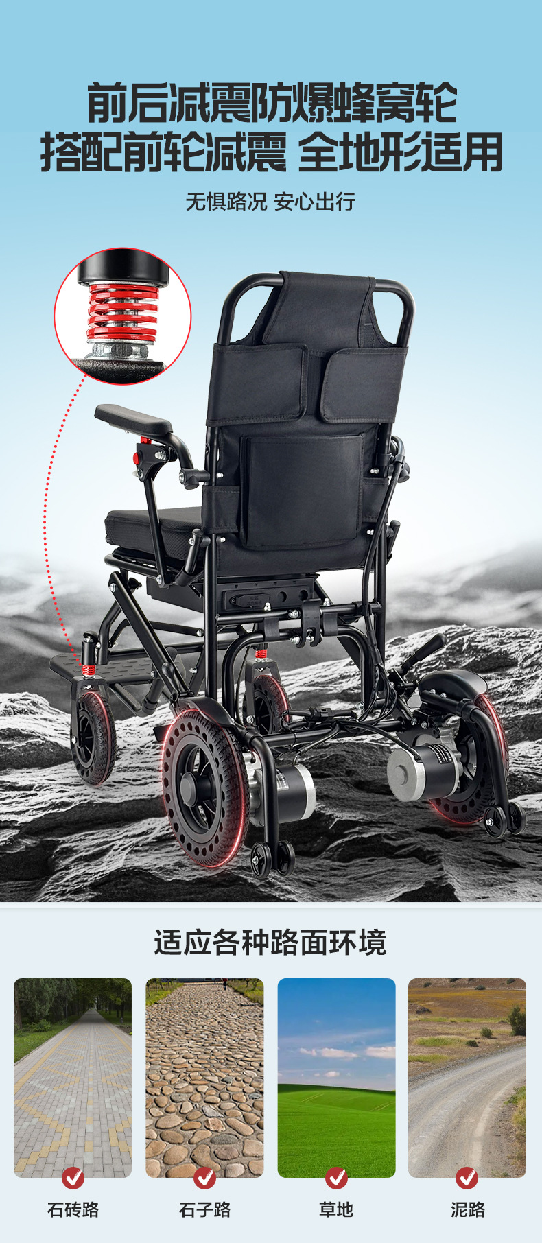 爆款碳钢电动轮椅智能全自动折叠轻便多功能便携老人代步旅游出门