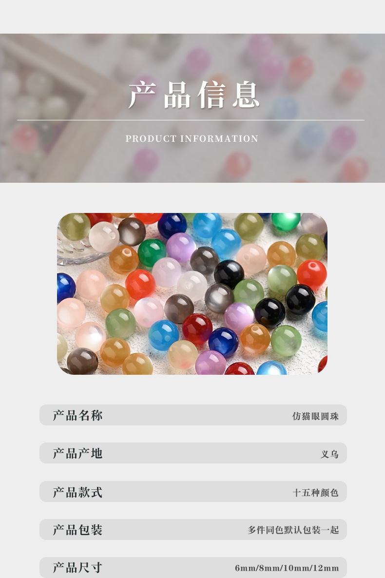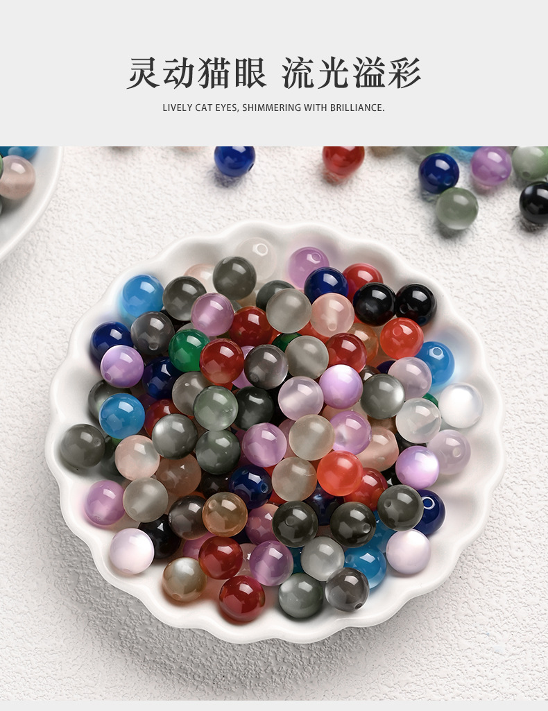 Gelang Bahan Manik-Manik Manik Resin Manik Bulat Batu Mata Kucing Imitasi Multi-Warna Manik Manik Manik Manik Buatan Tangan Buatan Tangan DIY Aksesori Perhiasan