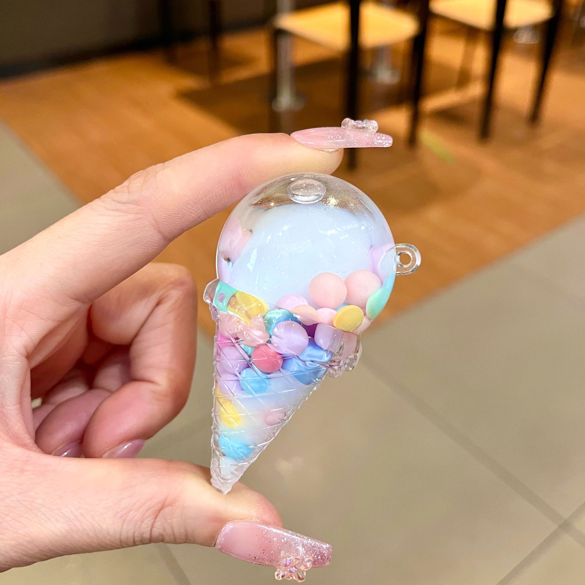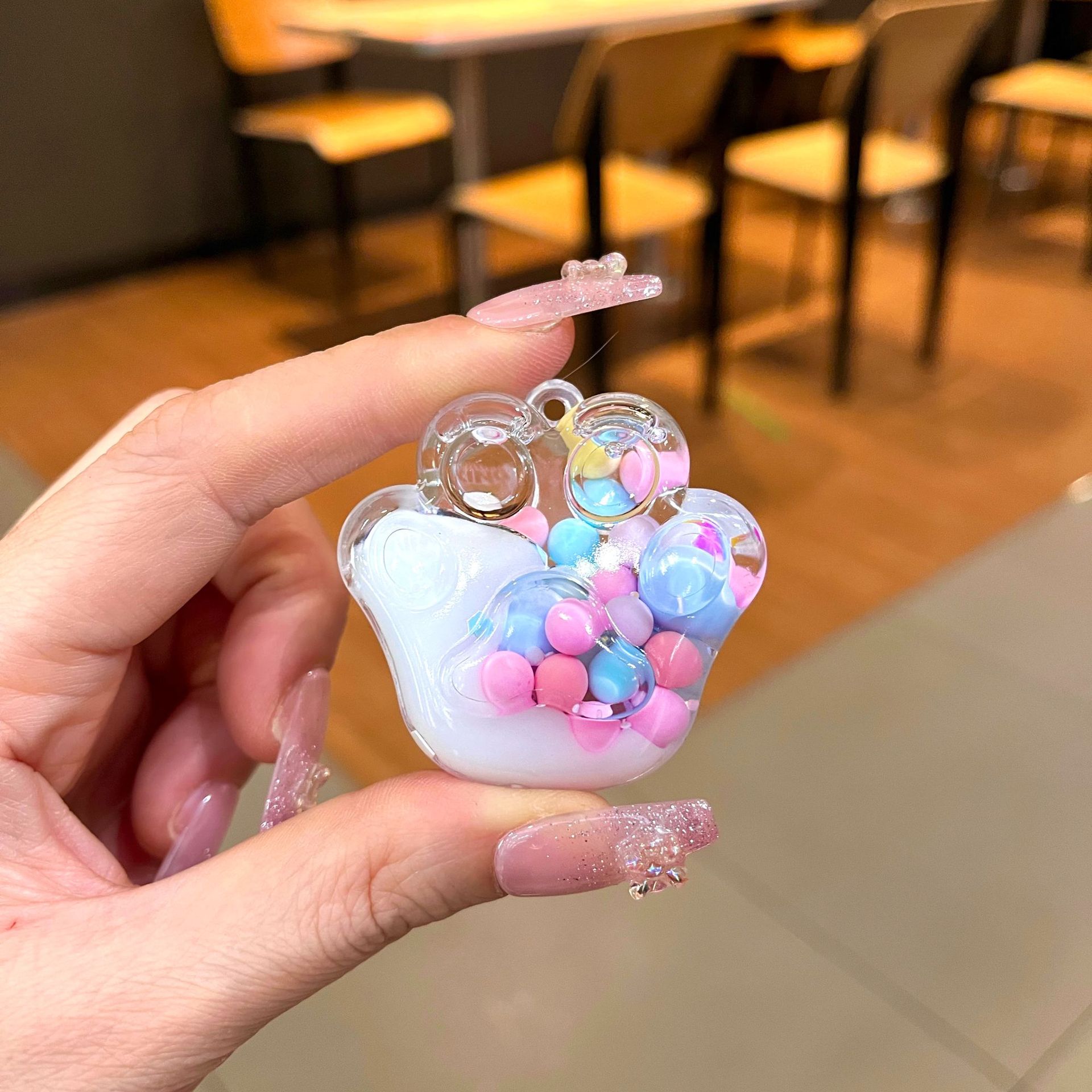 Botol pasir mengalir minyak akrilik kreatif manik-manik putih bercahaya Mickey kepala lollipop Aksesori liontin akrilik grosir