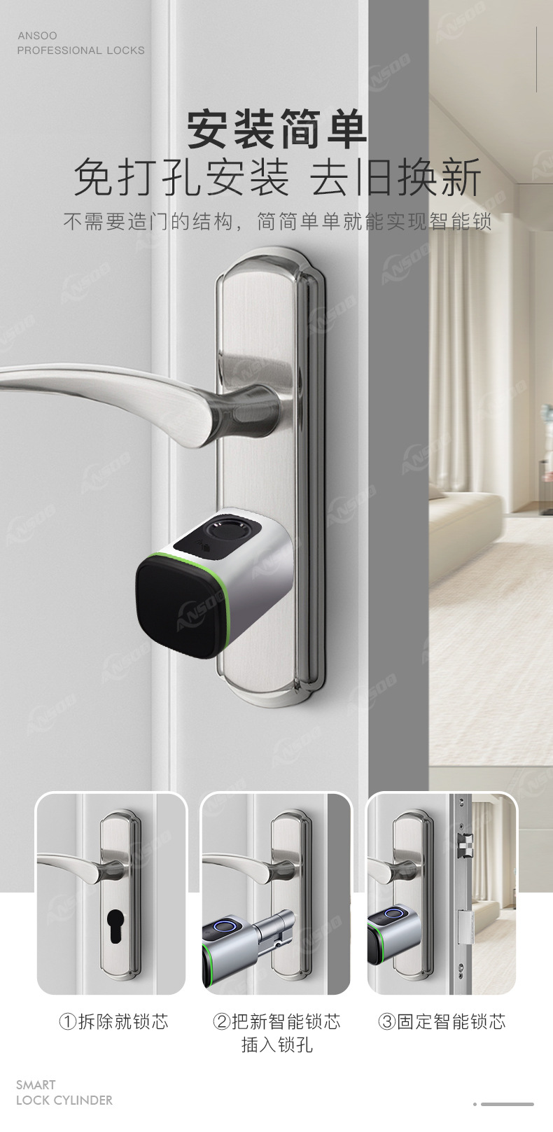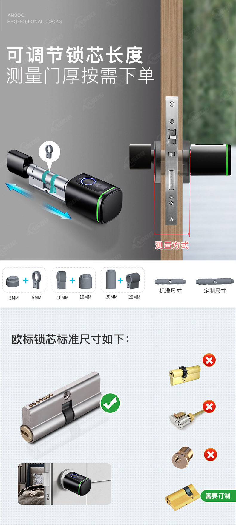 【Pilihan Premium】 Kunci sidik jari rumah tangga, kunci kombinasi, inti kunci pintar, kunci Tuya, inti kunci mekanis paduan aluminium untuk penggantian.