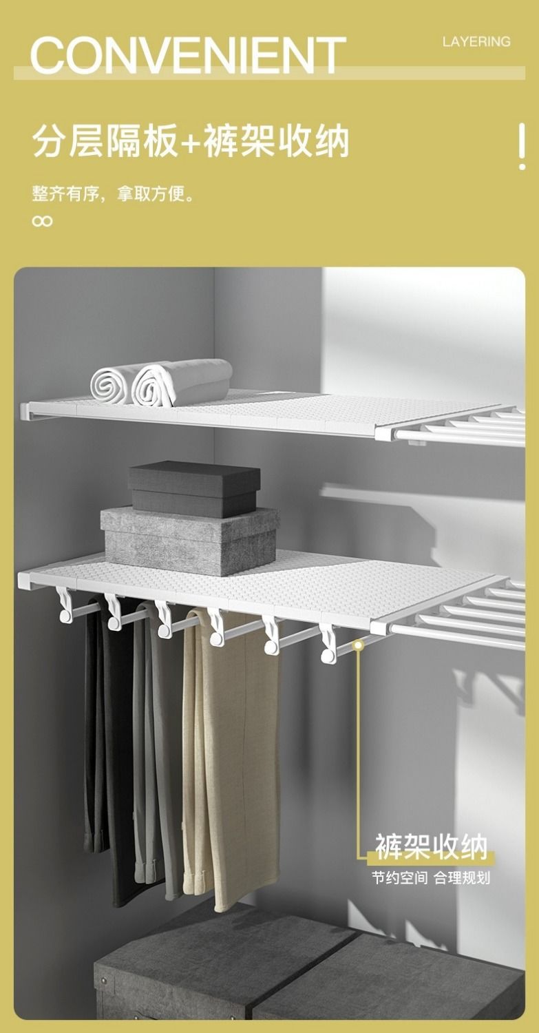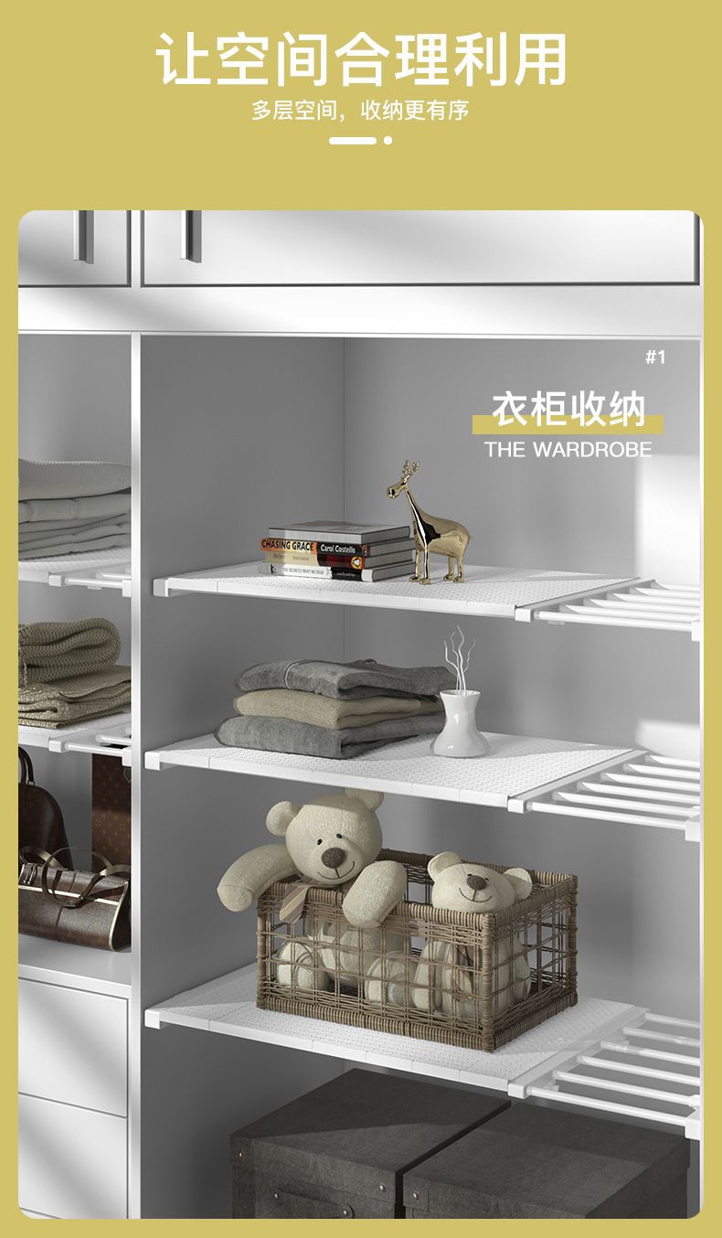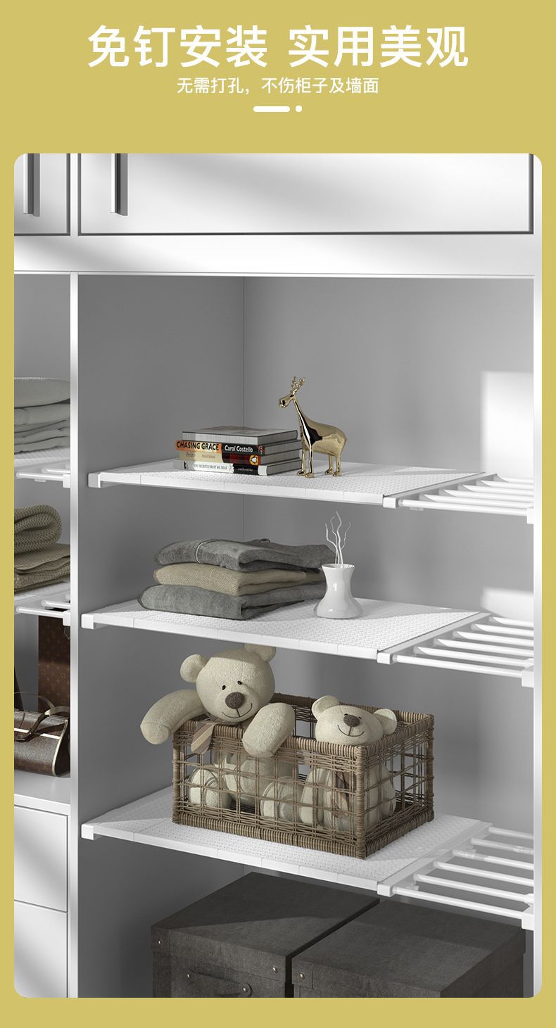 Lemari Pakaian Berlapis Papan Partisi Lemari Kamar Tidur Plastik Teleskopik Dinding Tanpa Paku Lemari Dapur Tanpa Paku Rak Rak Pemisah