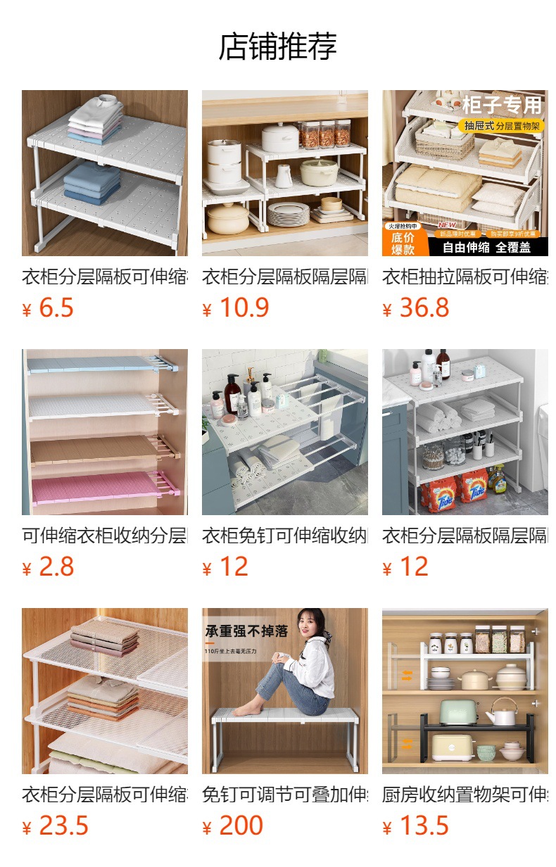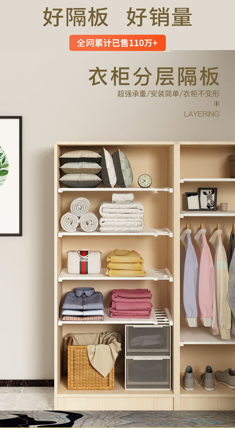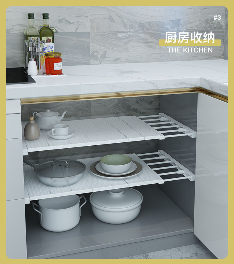 Lemari Pakaian Berlapis Papan Partisi Lemari Kamar Tidur Plastik Teleskopik Dinding Tanpa Paku Lemari Dapur Tanpa Paku Rak Rak Pemisah