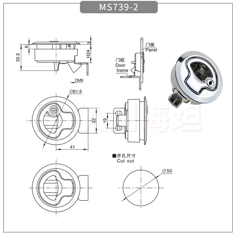 Kunci Pegangan Tersembunyi Tipe Tekan Pembukaan Internal dan Eksternal Kunci Panel Kunci Laci Kotak Alat RV MS739-3/2