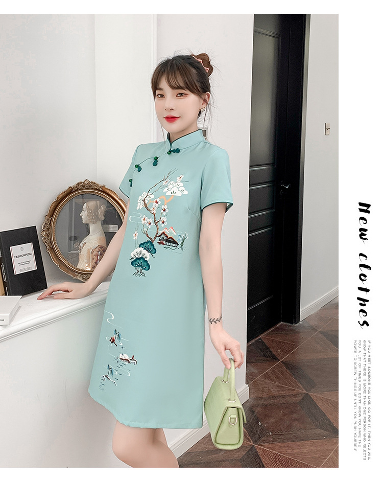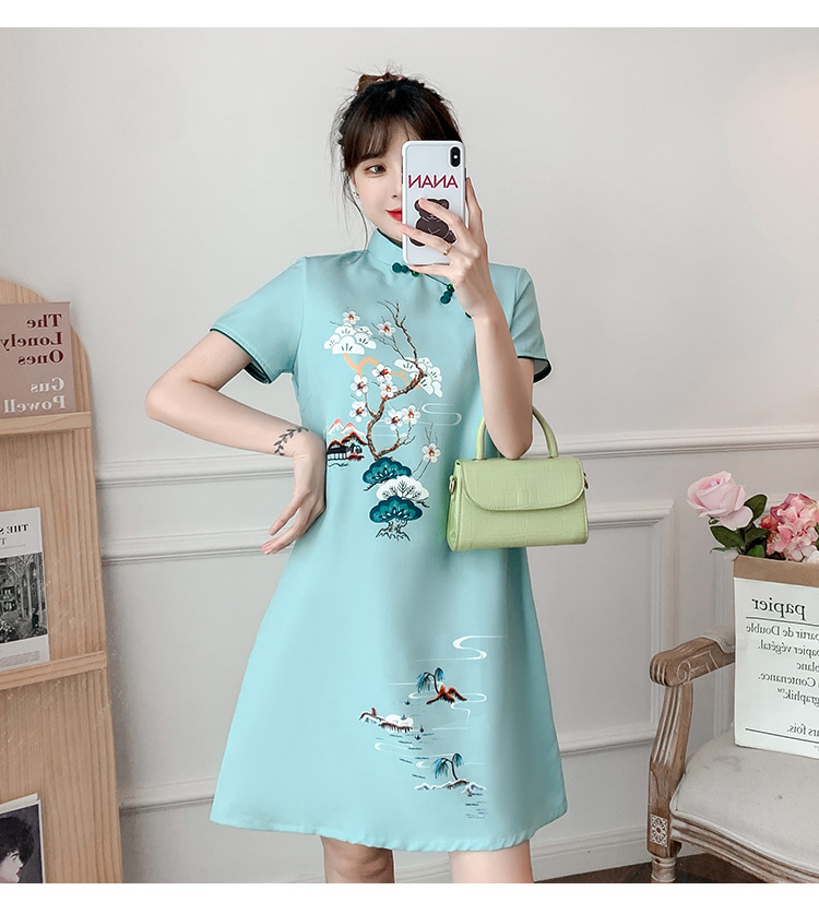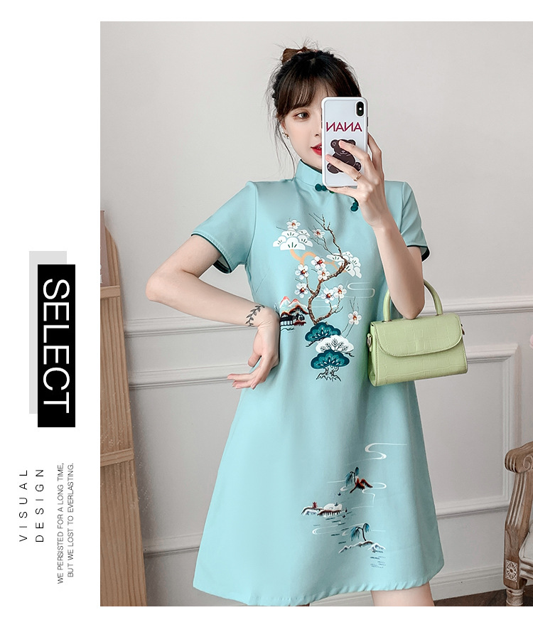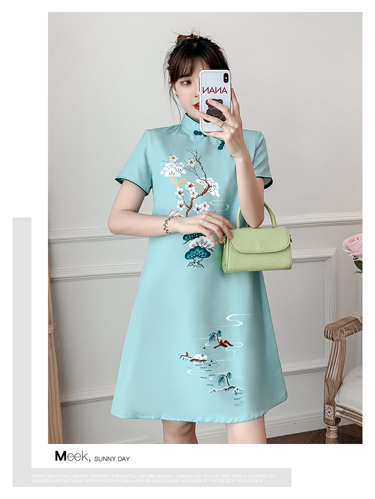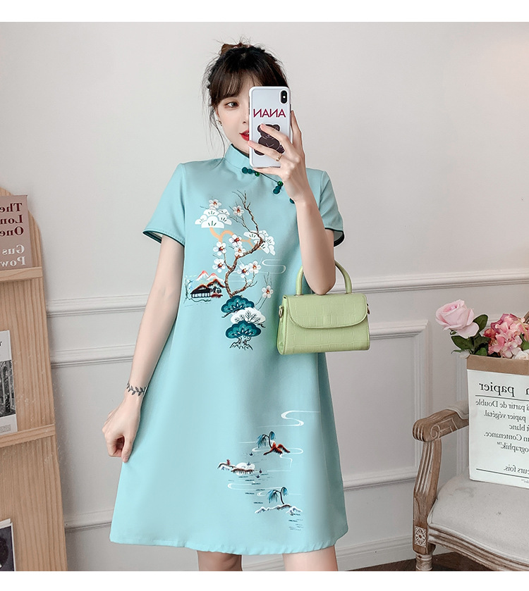 Gaun bercetak retro gaya nasional peningkatan ukuran Plus Musim Panas 2023 desain fashion longgar baru cheongsam muda