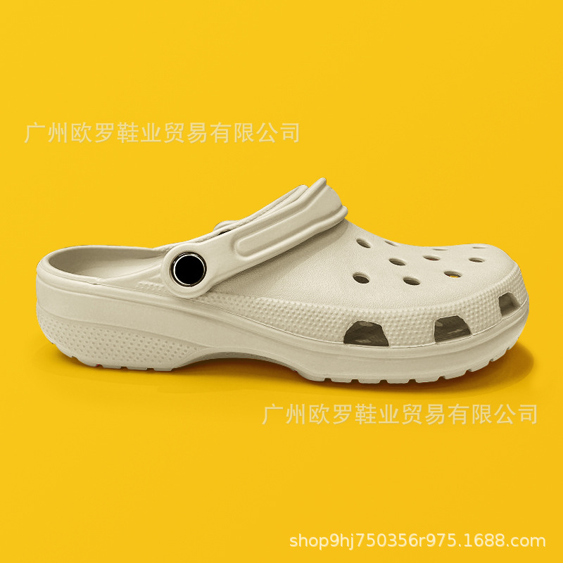 Sepatu sandal pantai berongga antiselip pria wanita, sepatu sandal pantai ujung tertutup bergaya selebriti dengan label dapat grosir