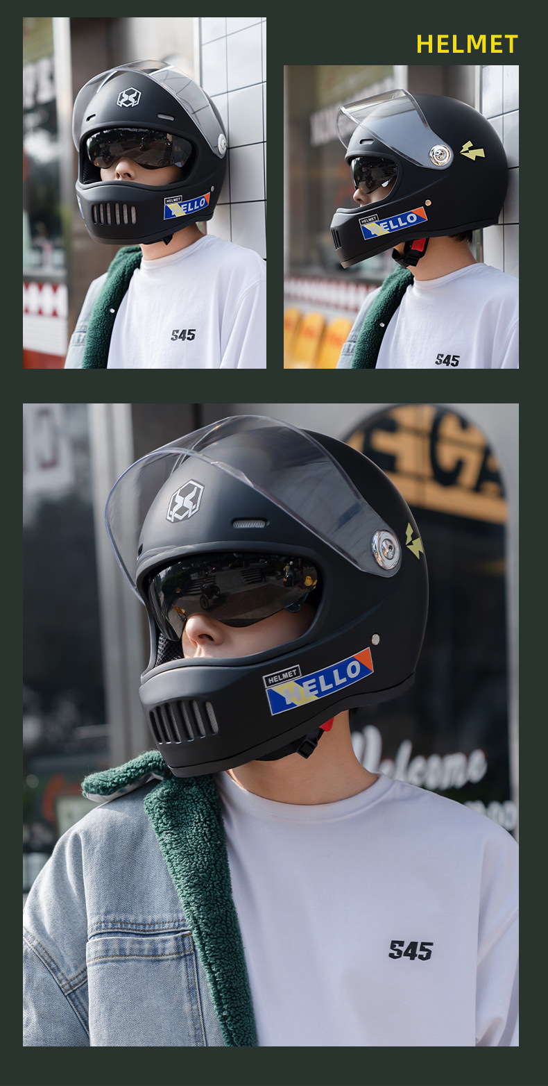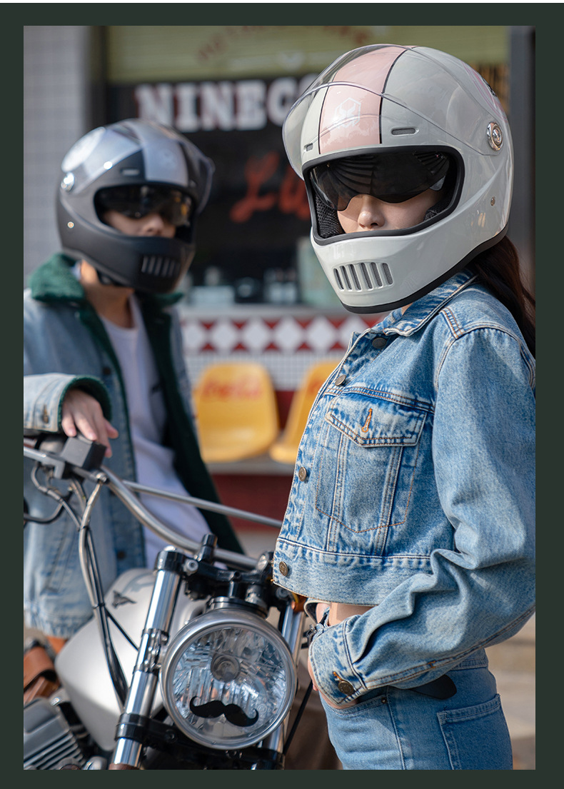 Helm mobil listrik eksklusif, pelindung kepala hangat musim dingin pria wanita perlindungan matahari retro berkendara baterai