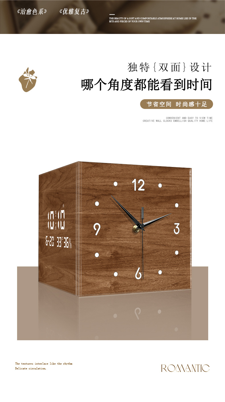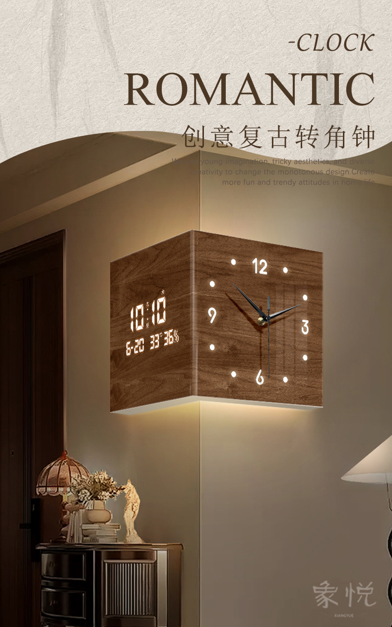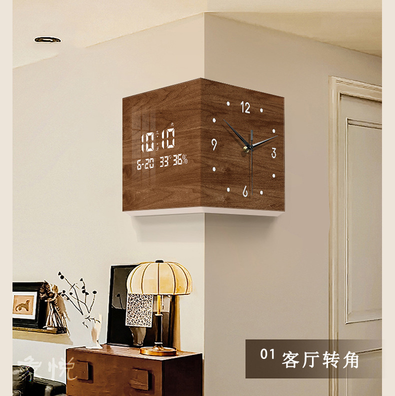 Kalender abadi Jam sudut ruang tamu gaya kuno 2025 Jam elektronik baru jam dinding dua sisi