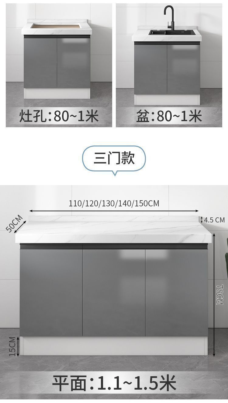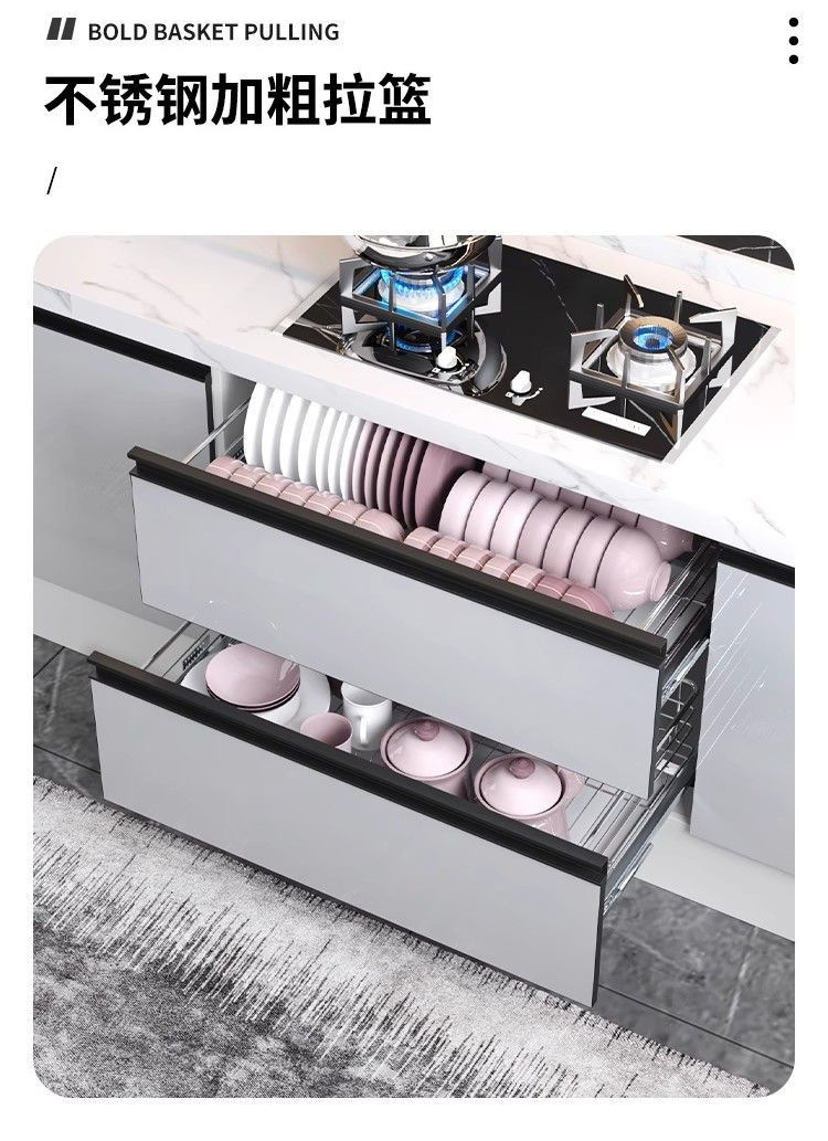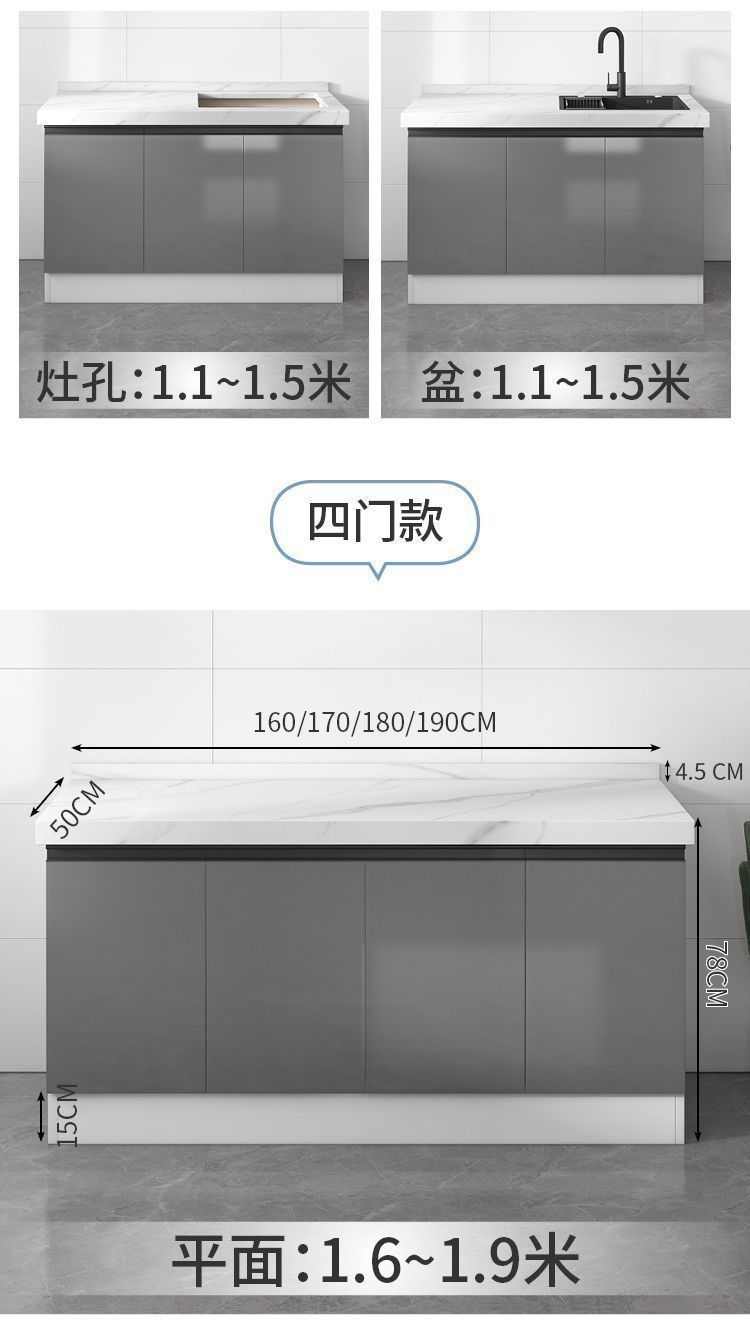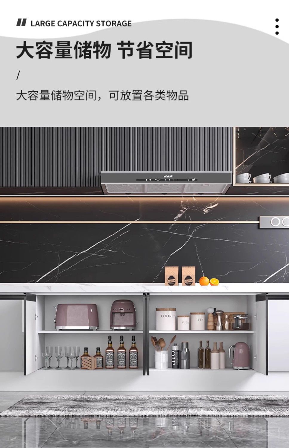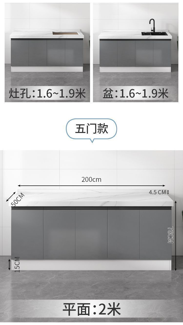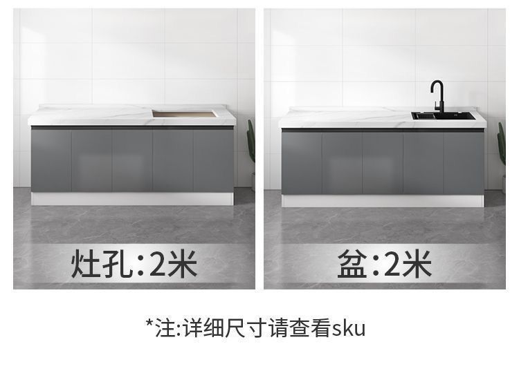 Lemari dapur minimalis modern dengan pintu terintegrasi, wastafel dan kompor terintegrasi untuk rumah tangga, laci datar, lemari ruang ekonomis.