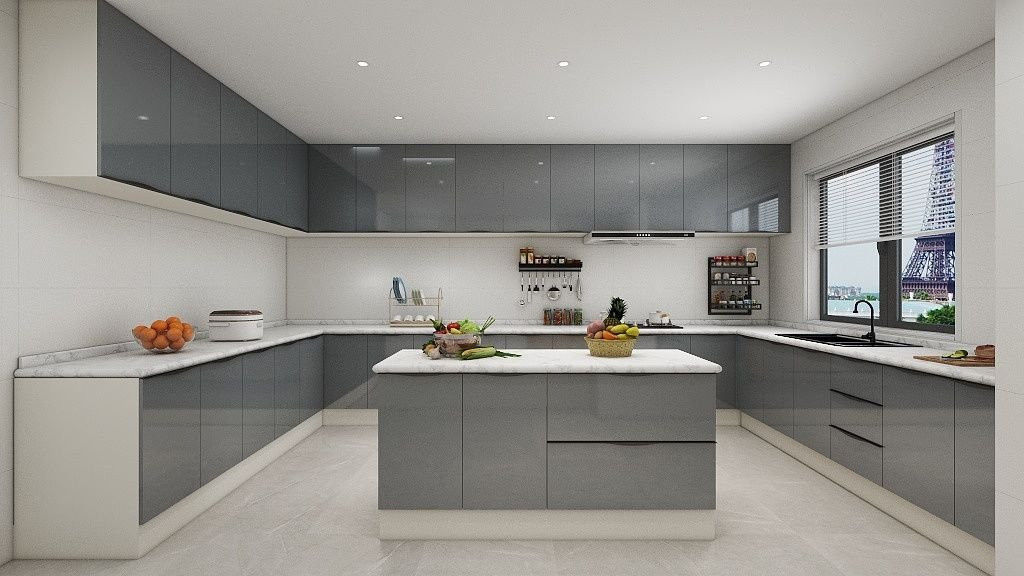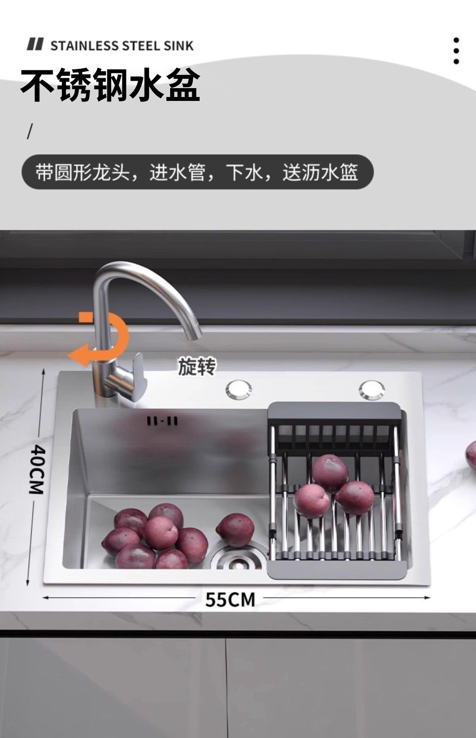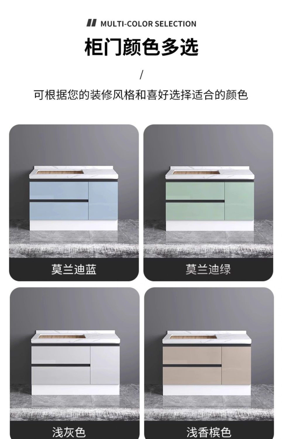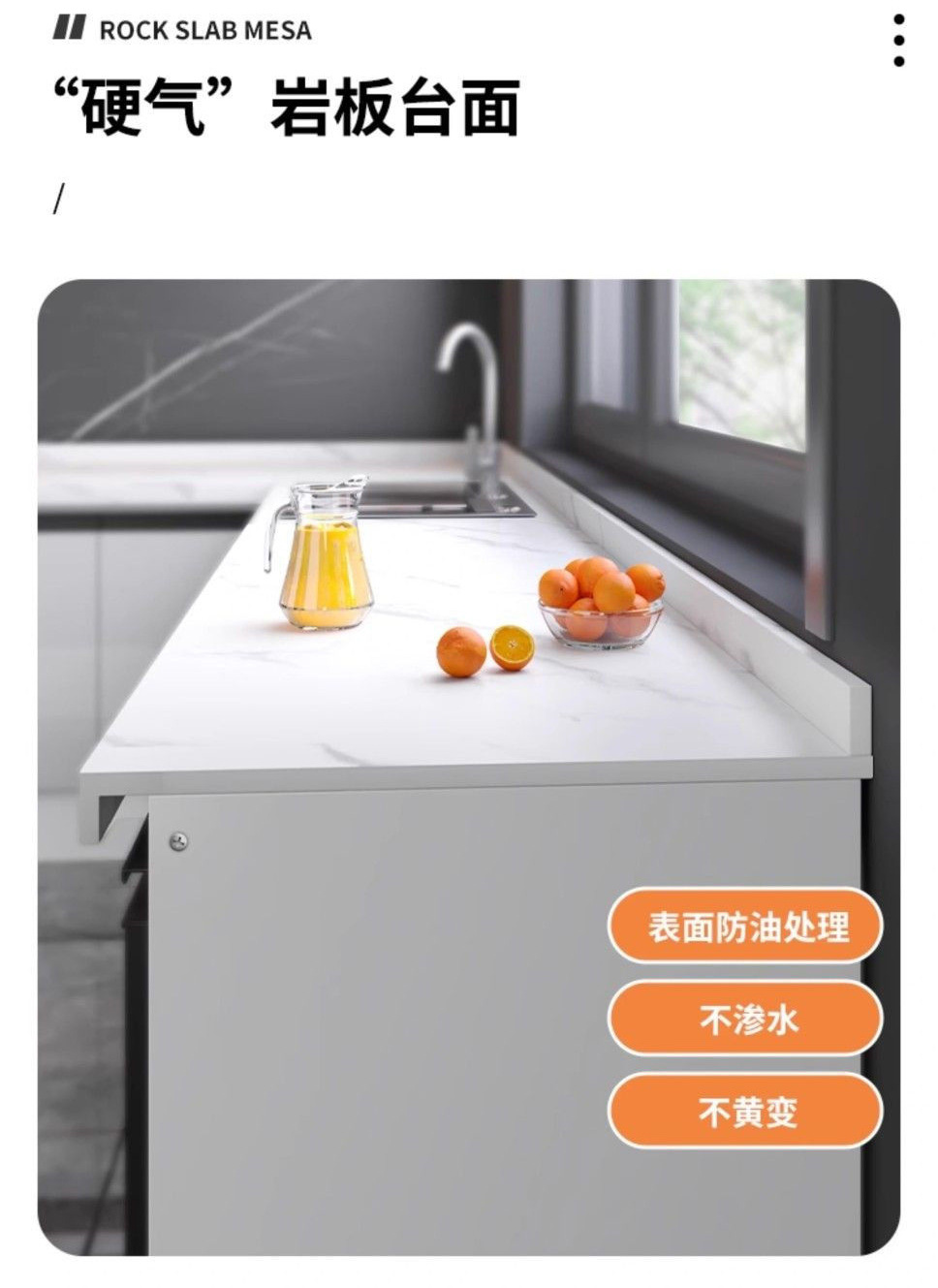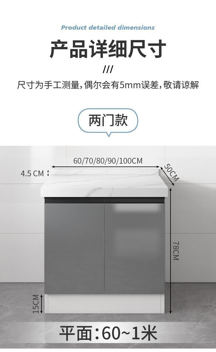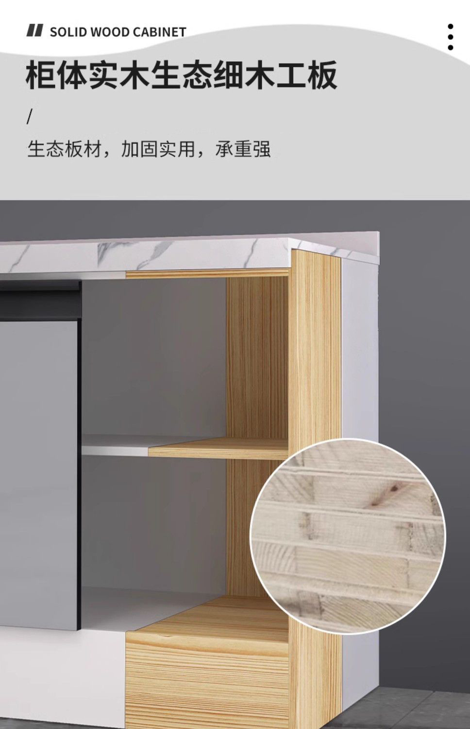 Lemari dapur minimalis modern dengan pintu terintegrasi, wastafel dan kompor terintegrasi untuk rumah tangga, laci datar, lemari ruang ekonomis.