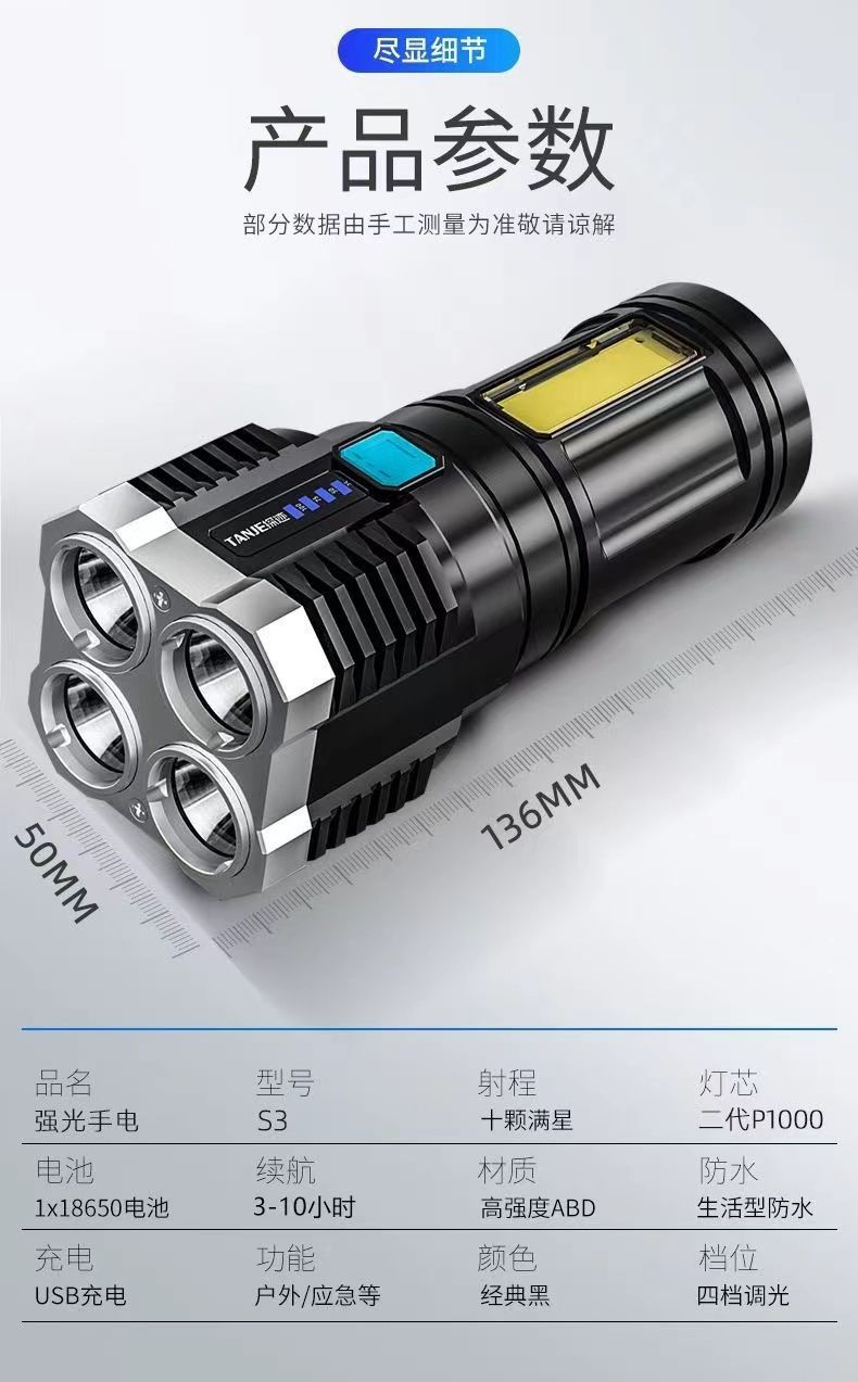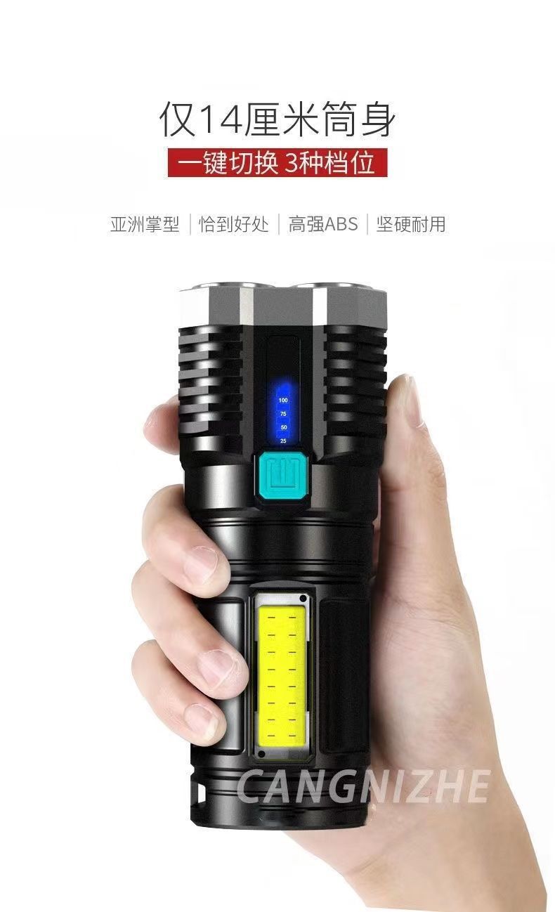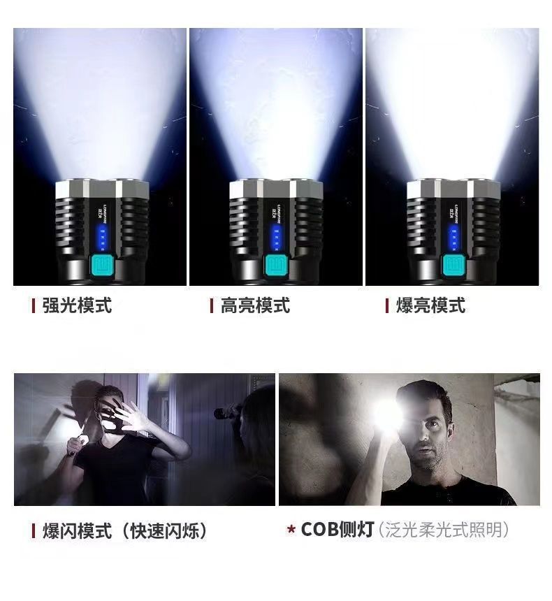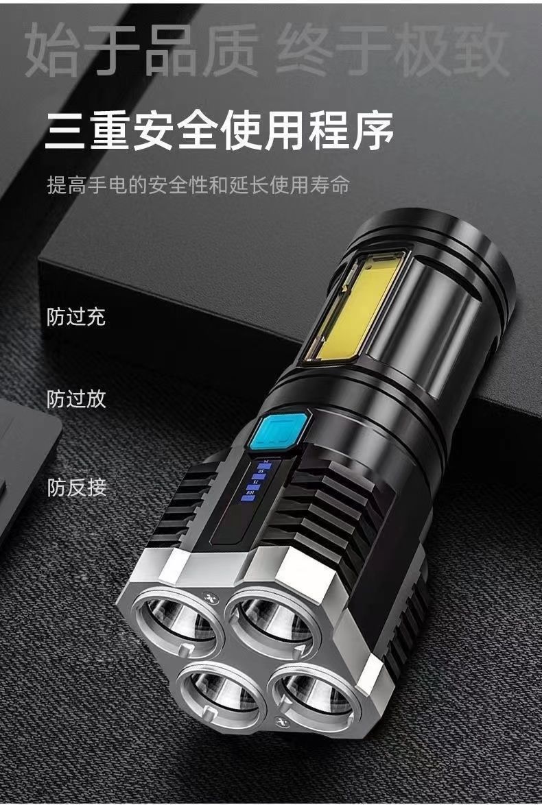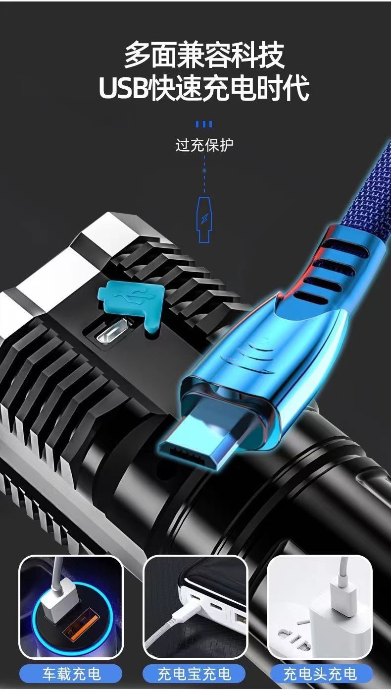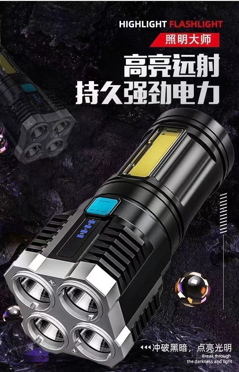 Senter Ledakan Empat Inti Cahaya Kuat Dapat Diisi Ulang 100.000 Lampu Kuat Lampu Khusus Luar Ruangan Multifungsi LED Jarak Jauh