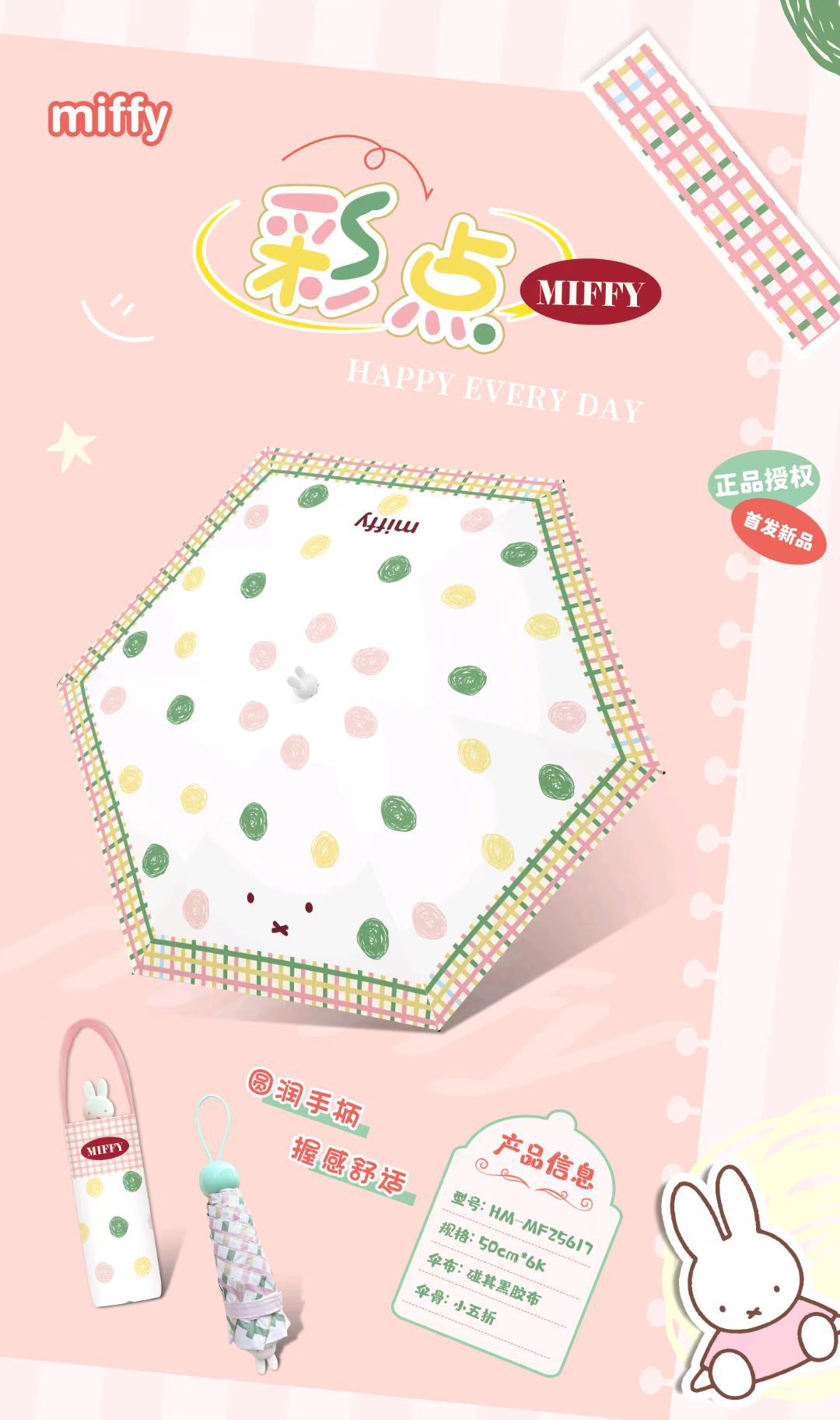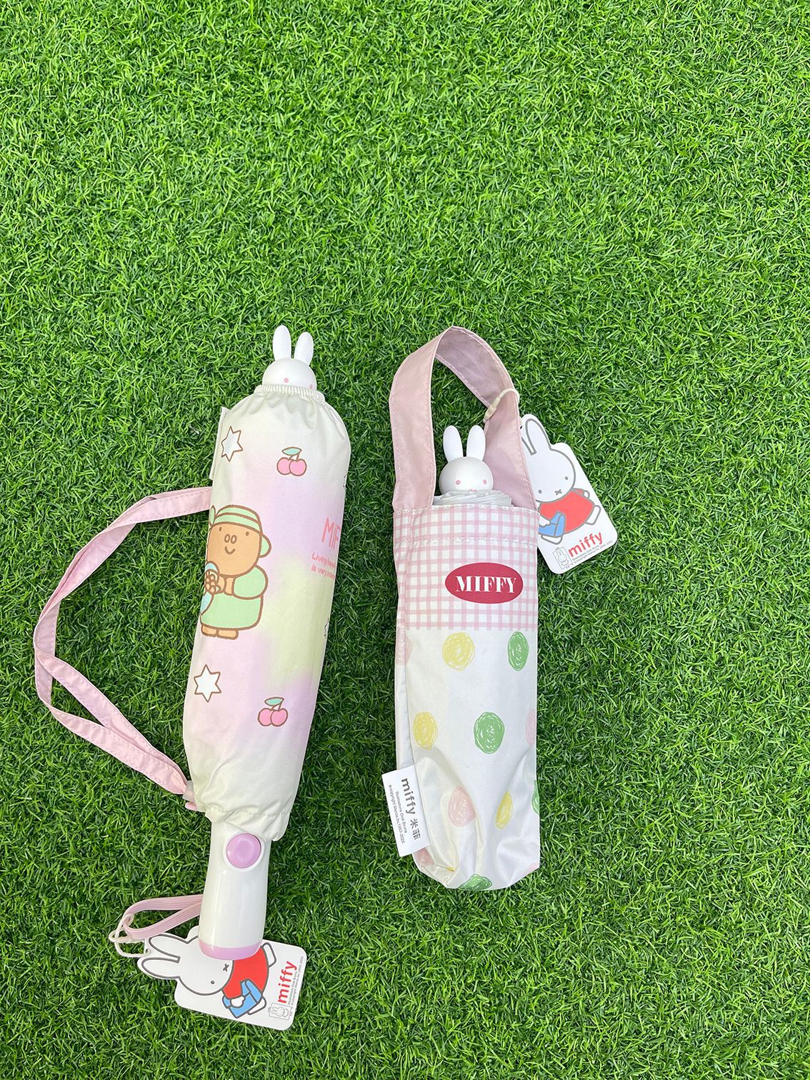 Payung Miffy, payung pelindung matahari berlapis hitam, fungsi ganda untuk matahari dan hujan, perlindungan UV, payung lipat manual lima kali lipat.
