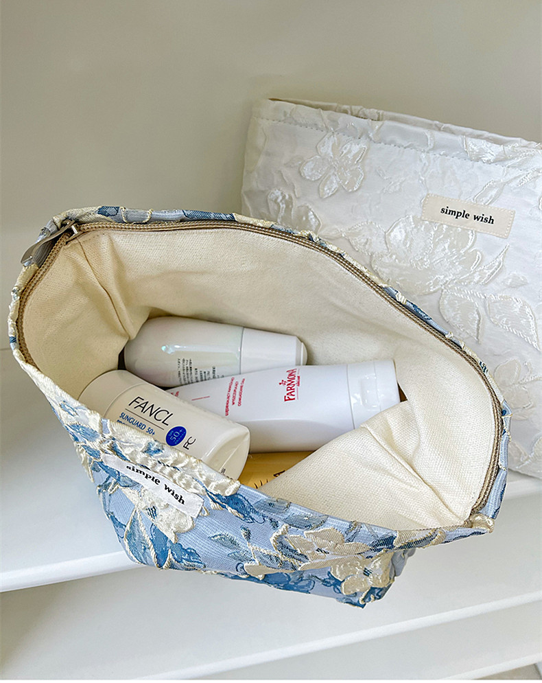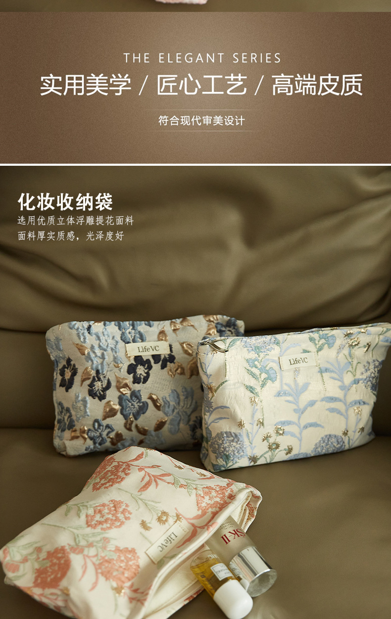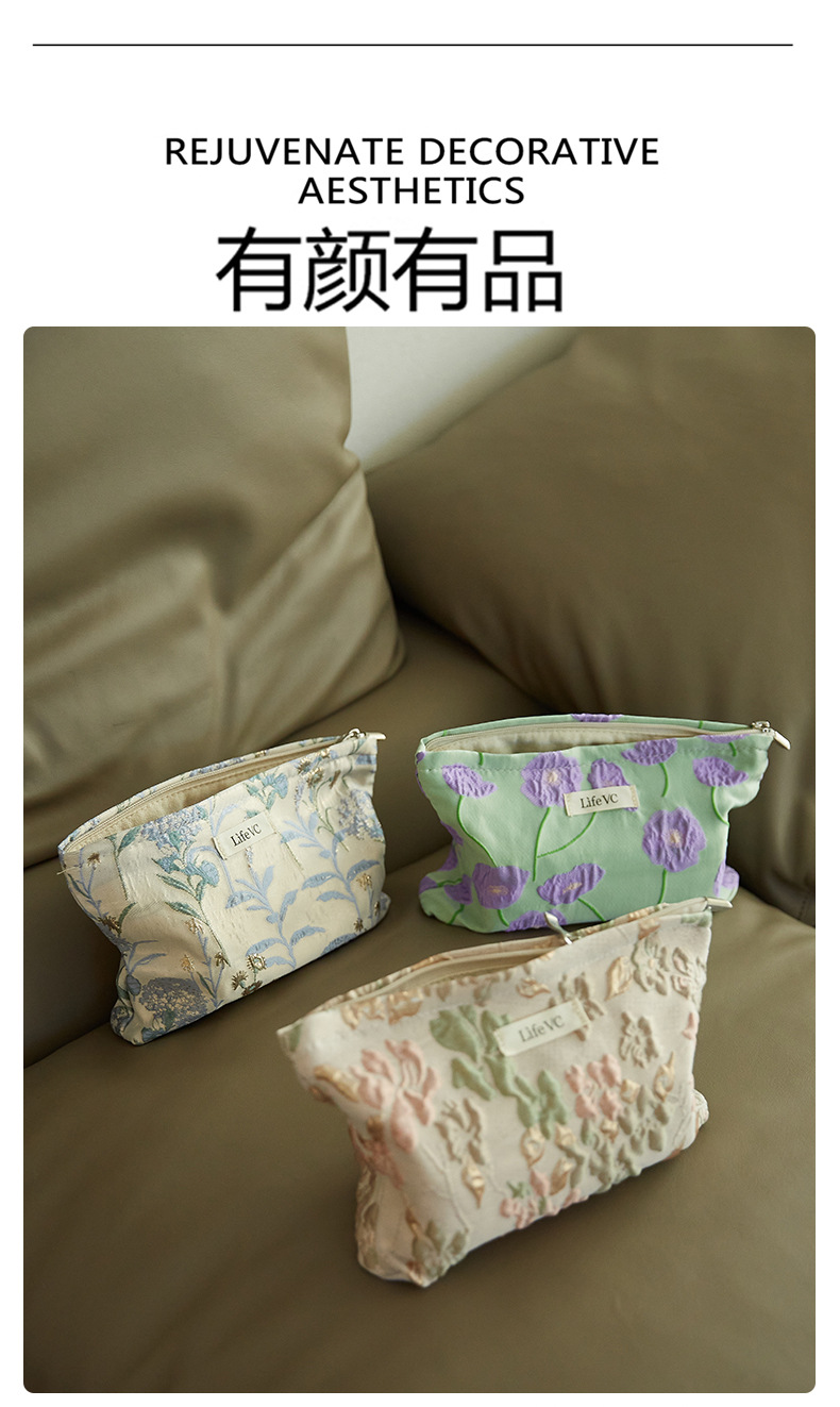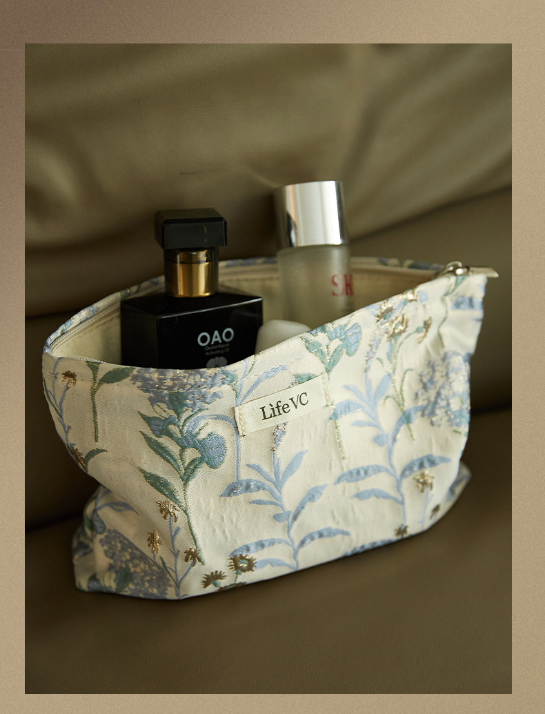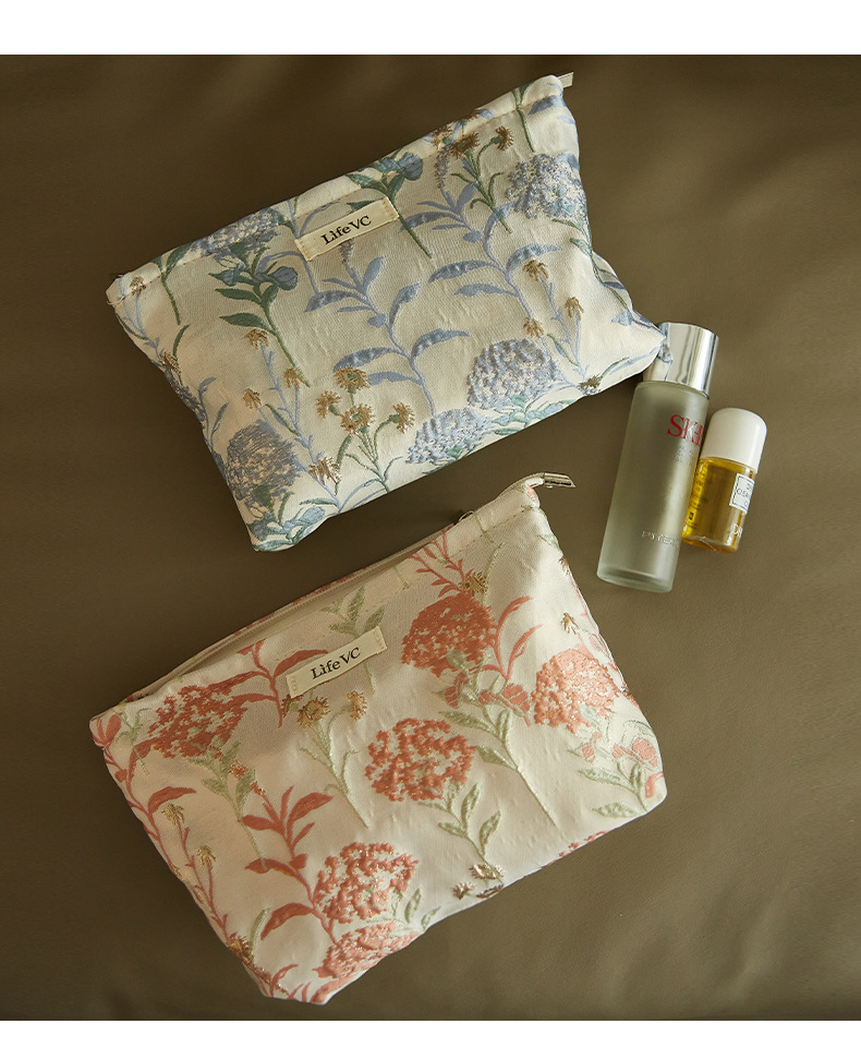 Tas Kosmetik Jacquard Model Premium Tas Penyimpanan Tas Tangan Portabel Nilai Wajah Tinggi Kain Kanvas Tas Dalam Ritsleting Kapasitas Besar