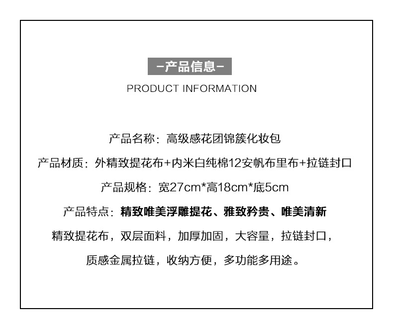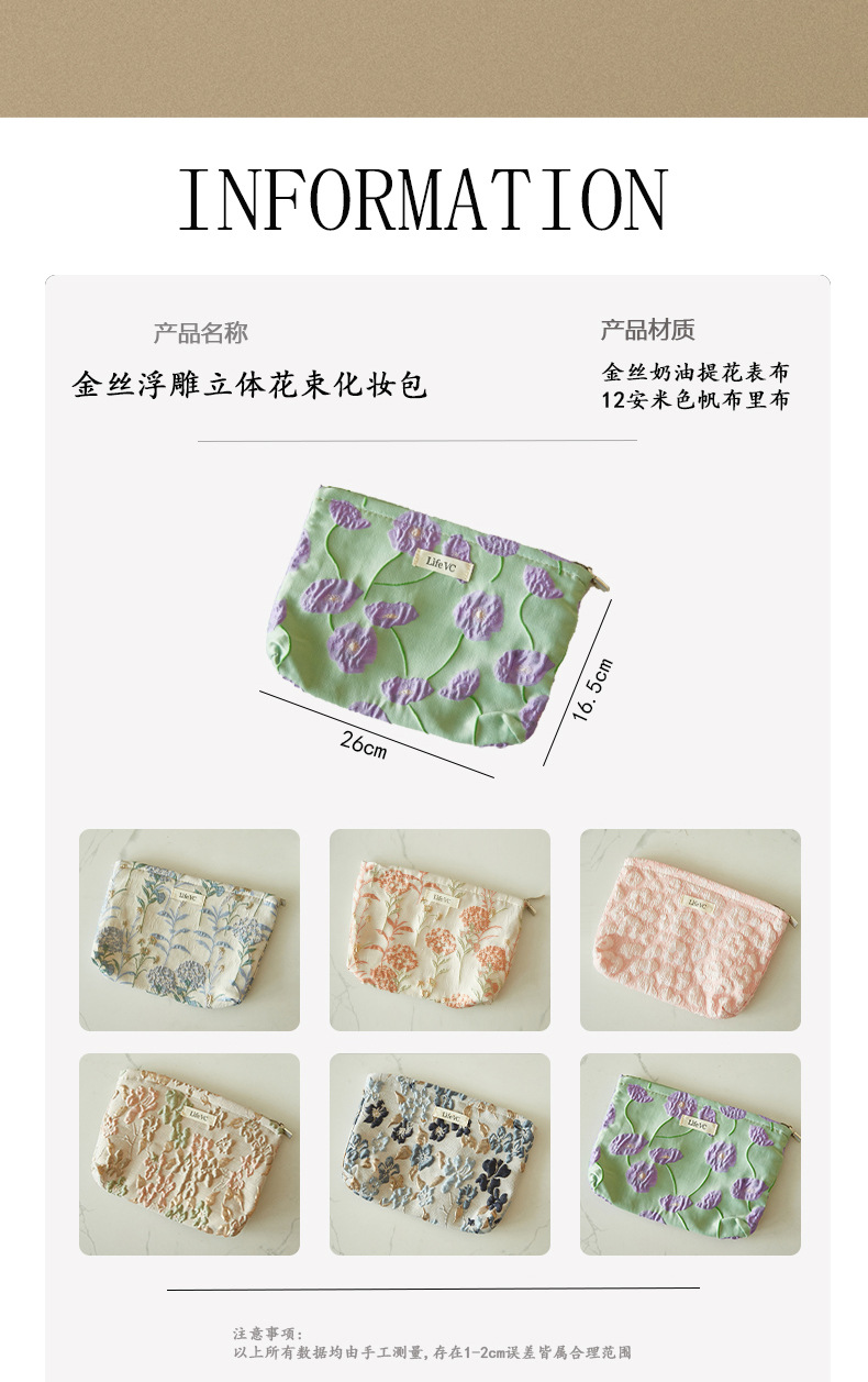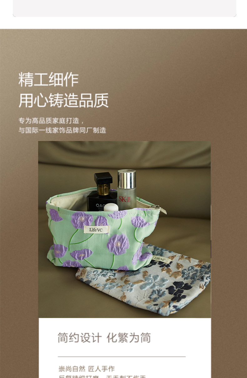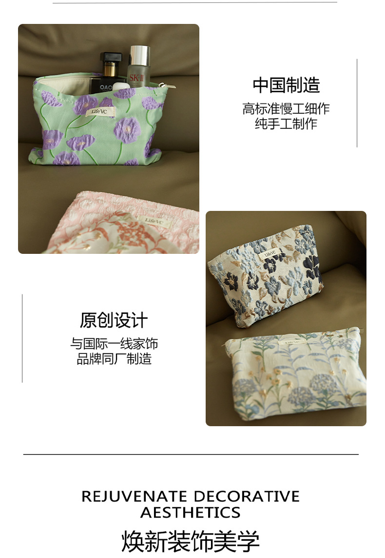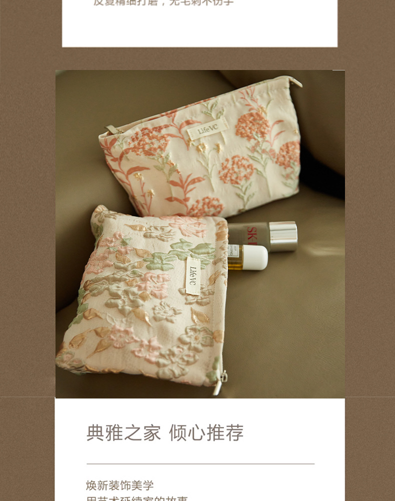 Tas Kosmetik Jacquard Model Premium Tas Penyimpanan Tas Tangan Portabel Nilai Wajah Tinggi Kain Kanvas Tas Dalam Ritsleting Kapasitas Besar