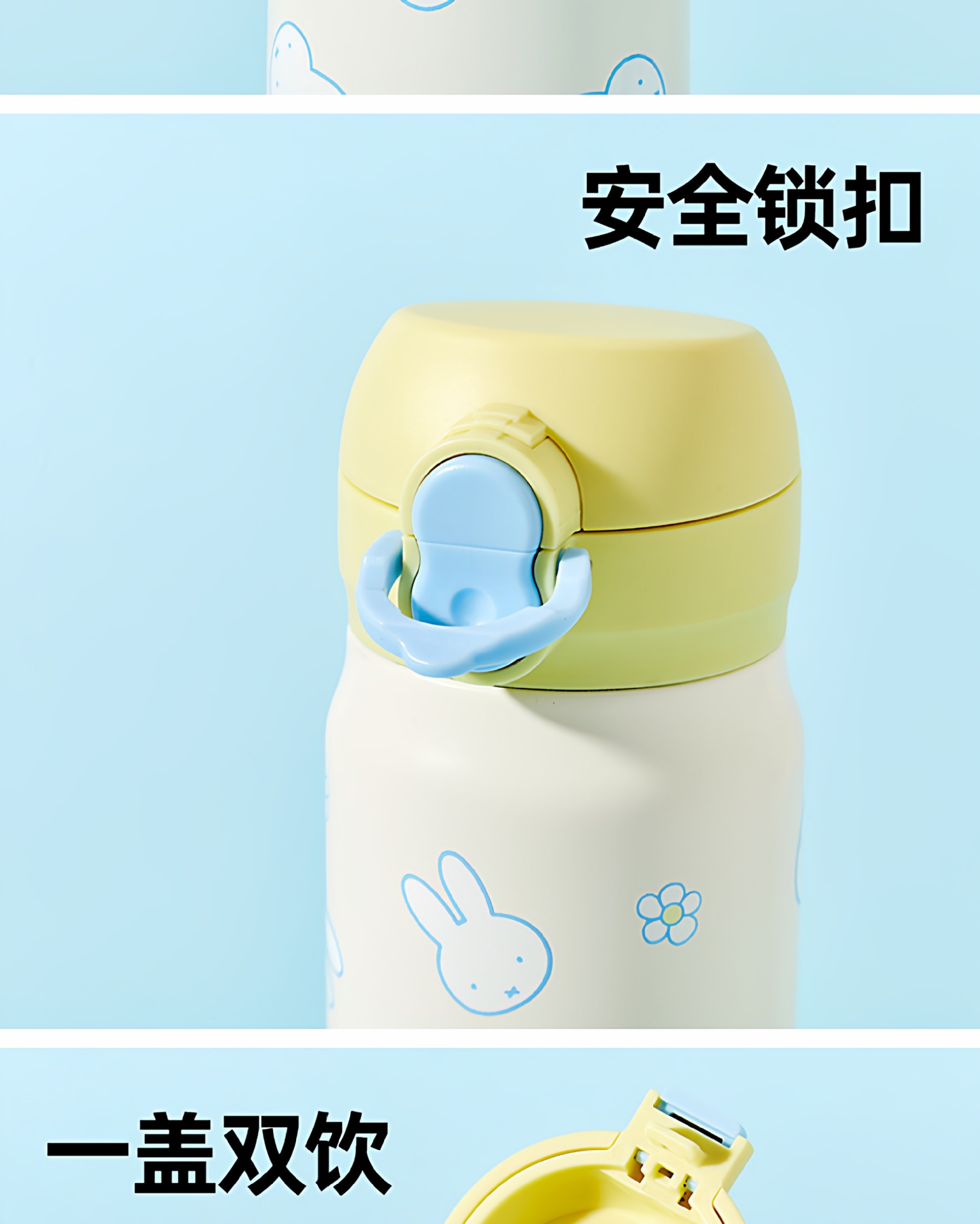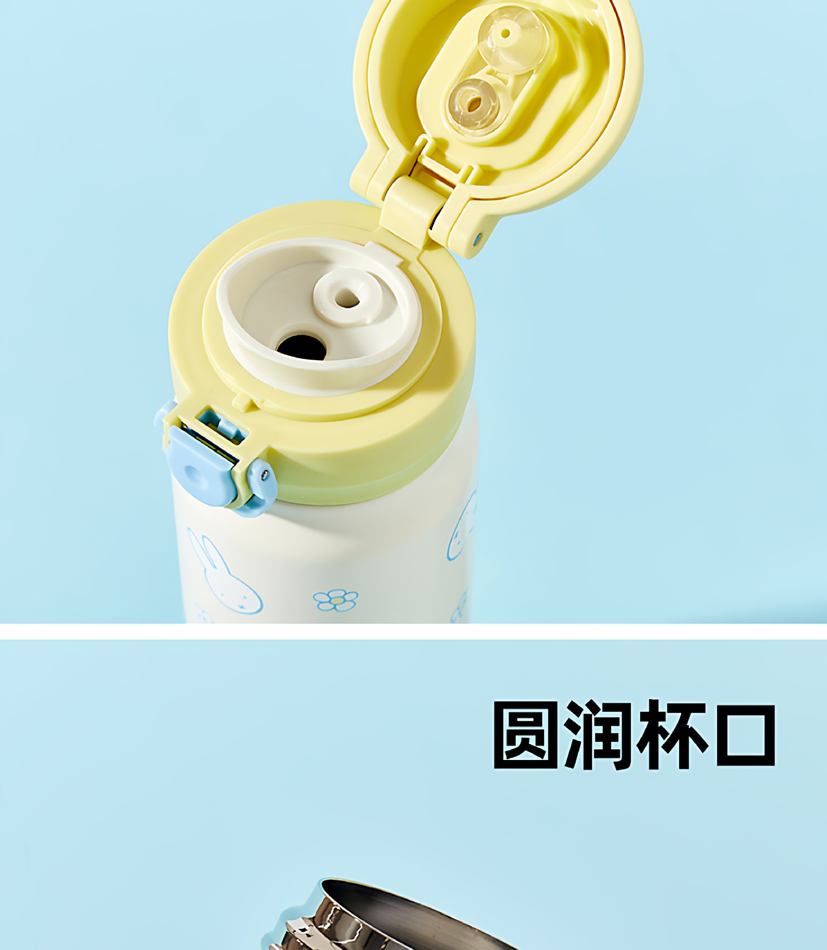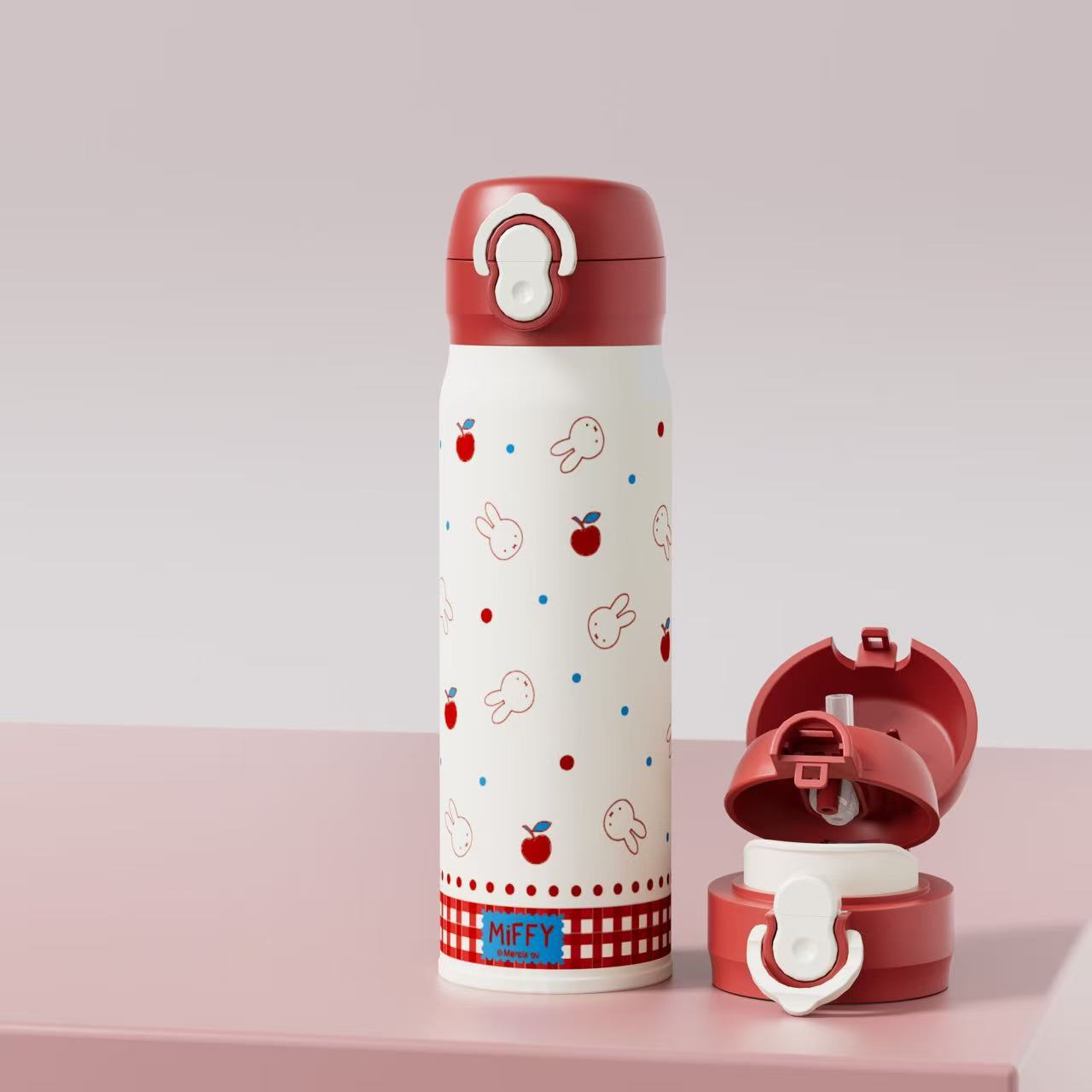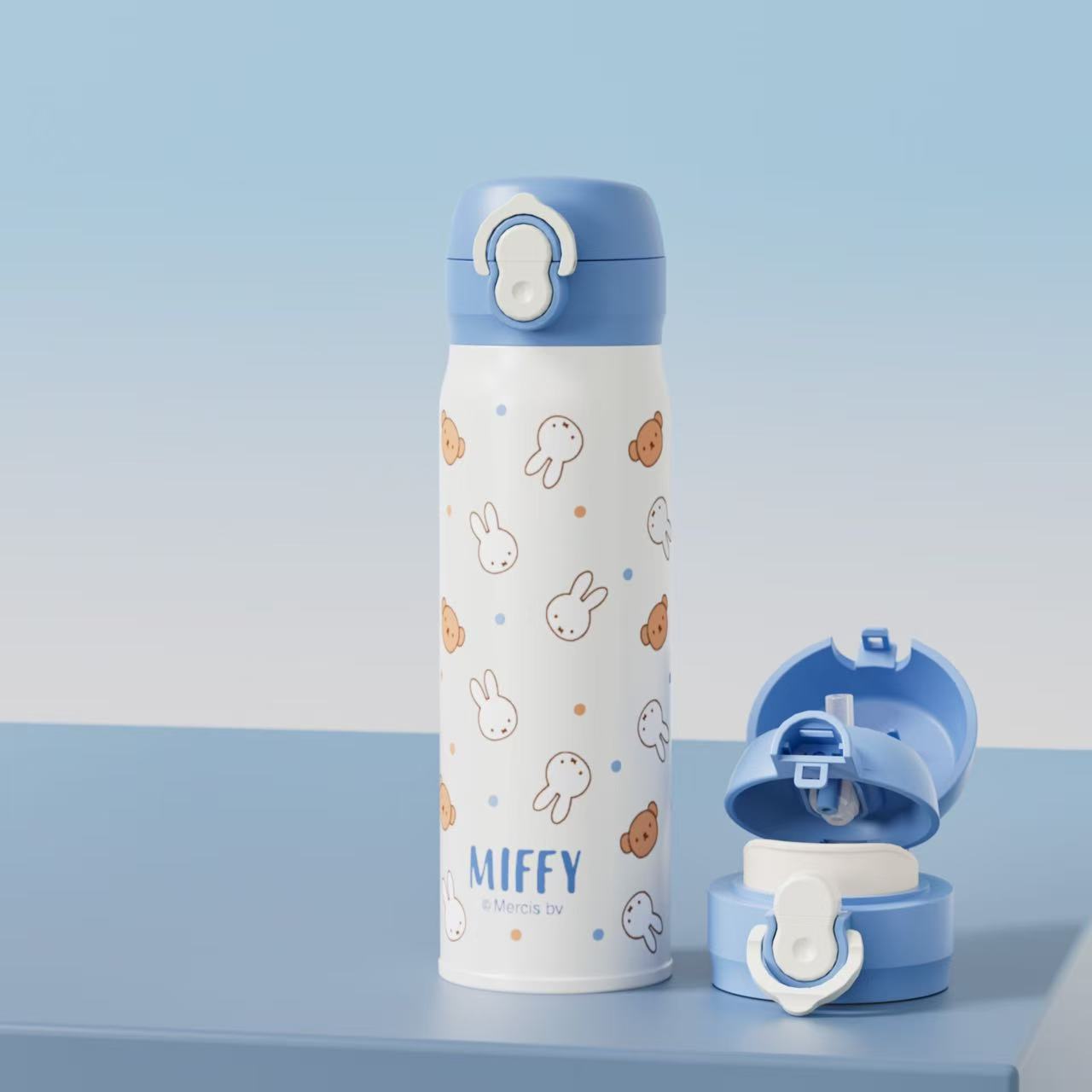 正版米菲兔弹盖保温杯卡通可爱日系316儿童学便携吸管喝水杯子