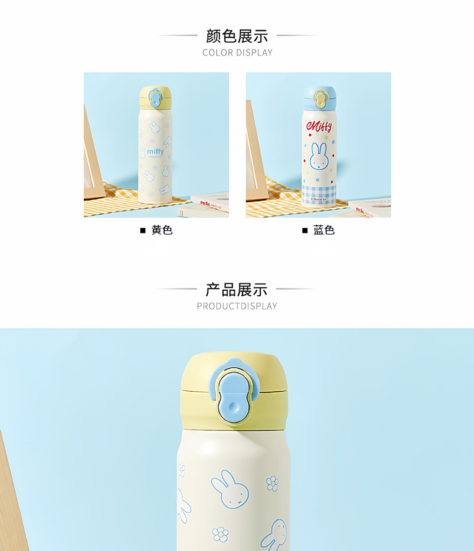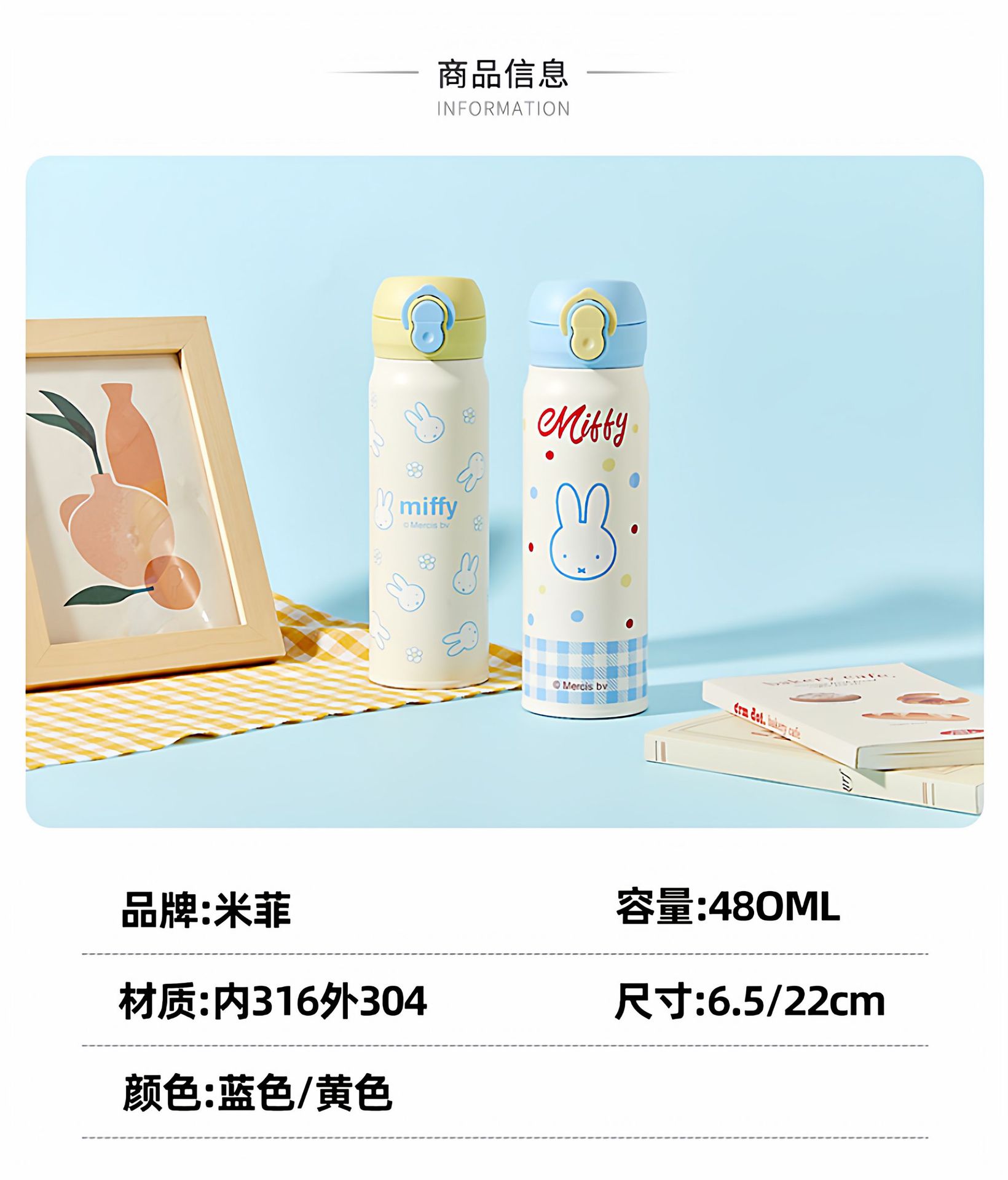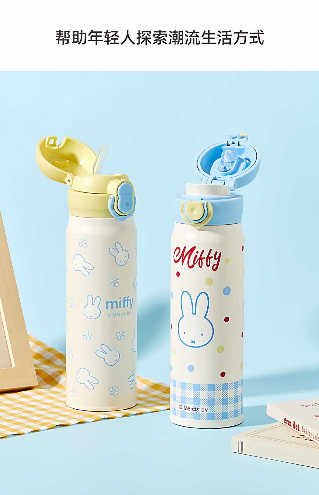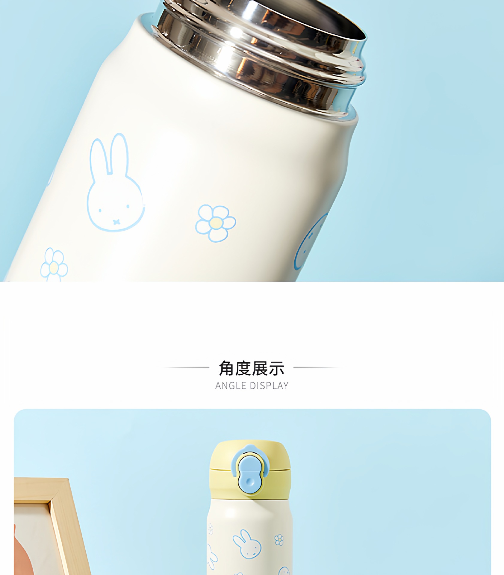 正版米菲兔弹盖保温杯卡通可爱日系316儿童学便携吸管喝水杯子