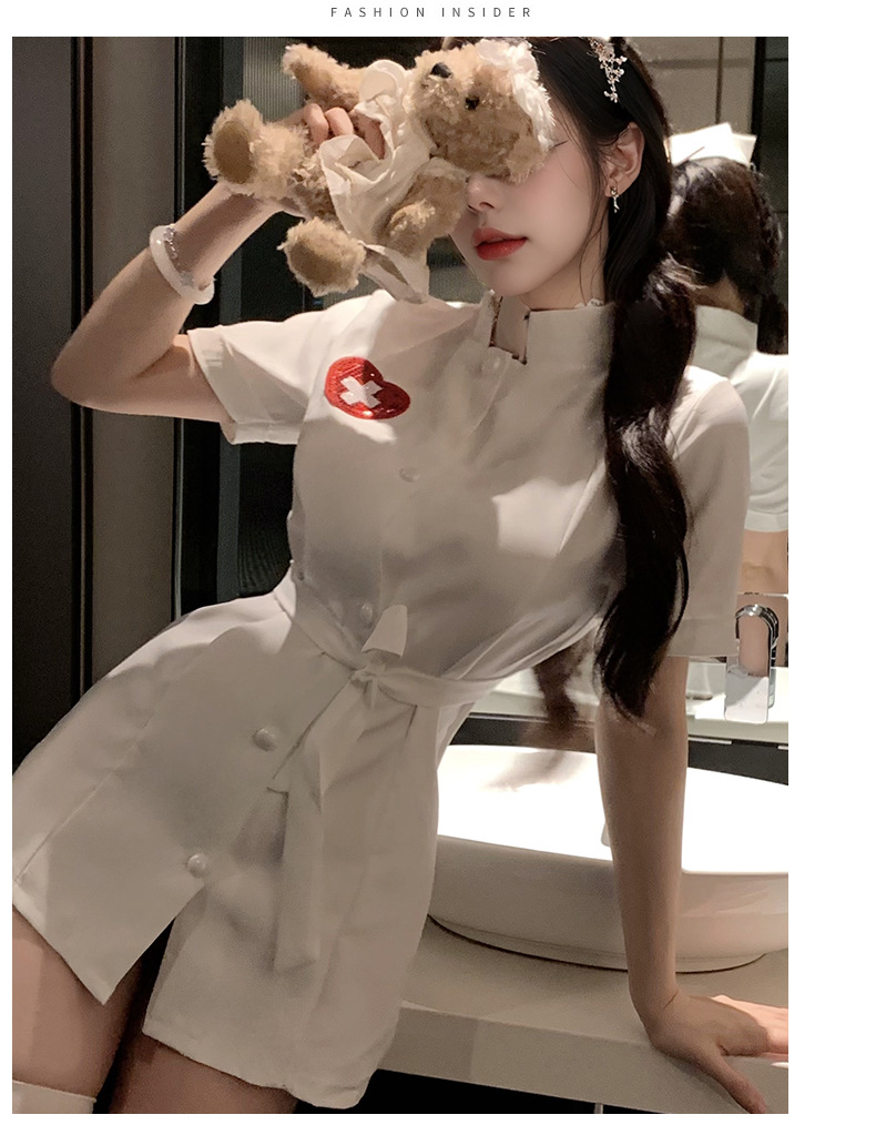 Pakaian dalam seksi Meinaer, setelan perawat menggoda dengan potongan V dalam, seragam peran panas, set godaan.