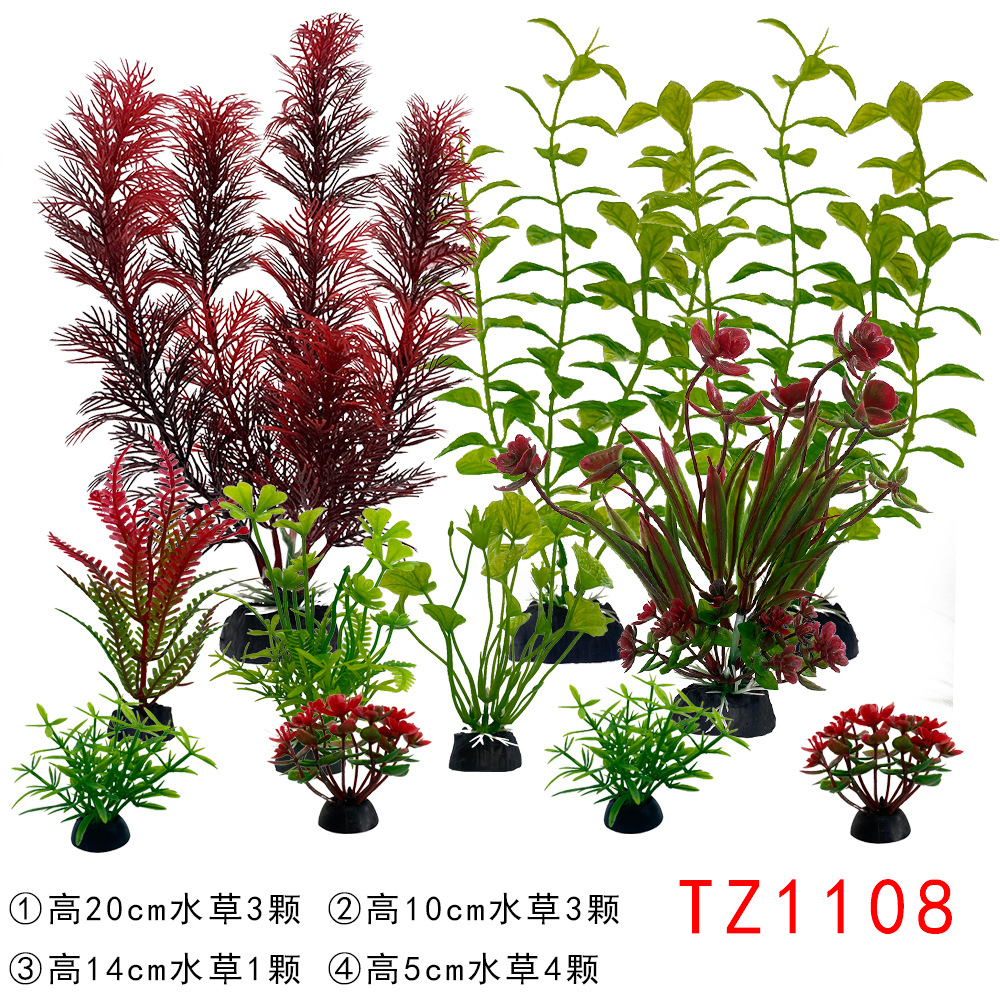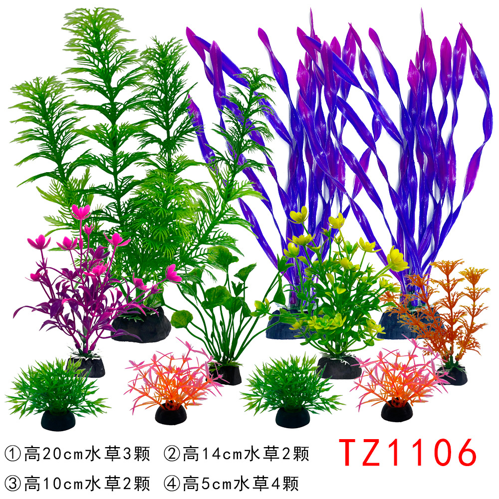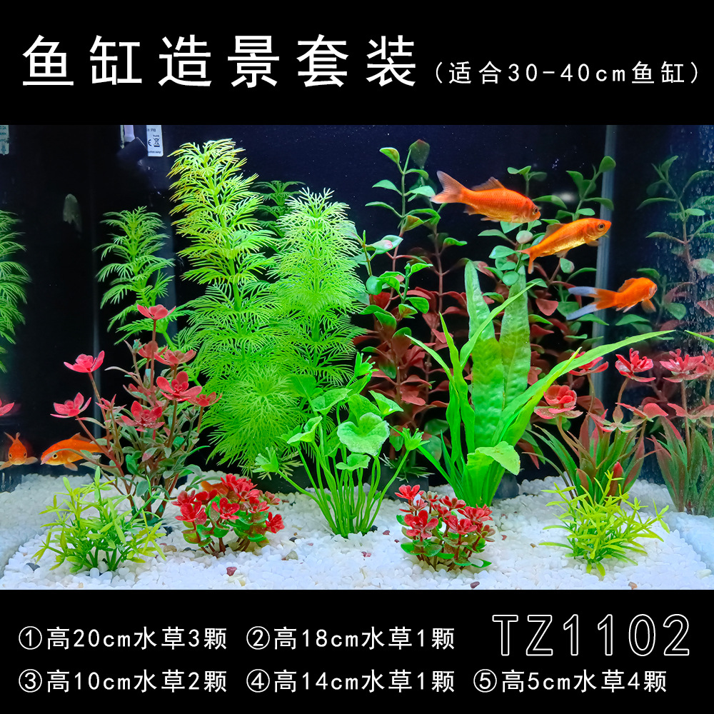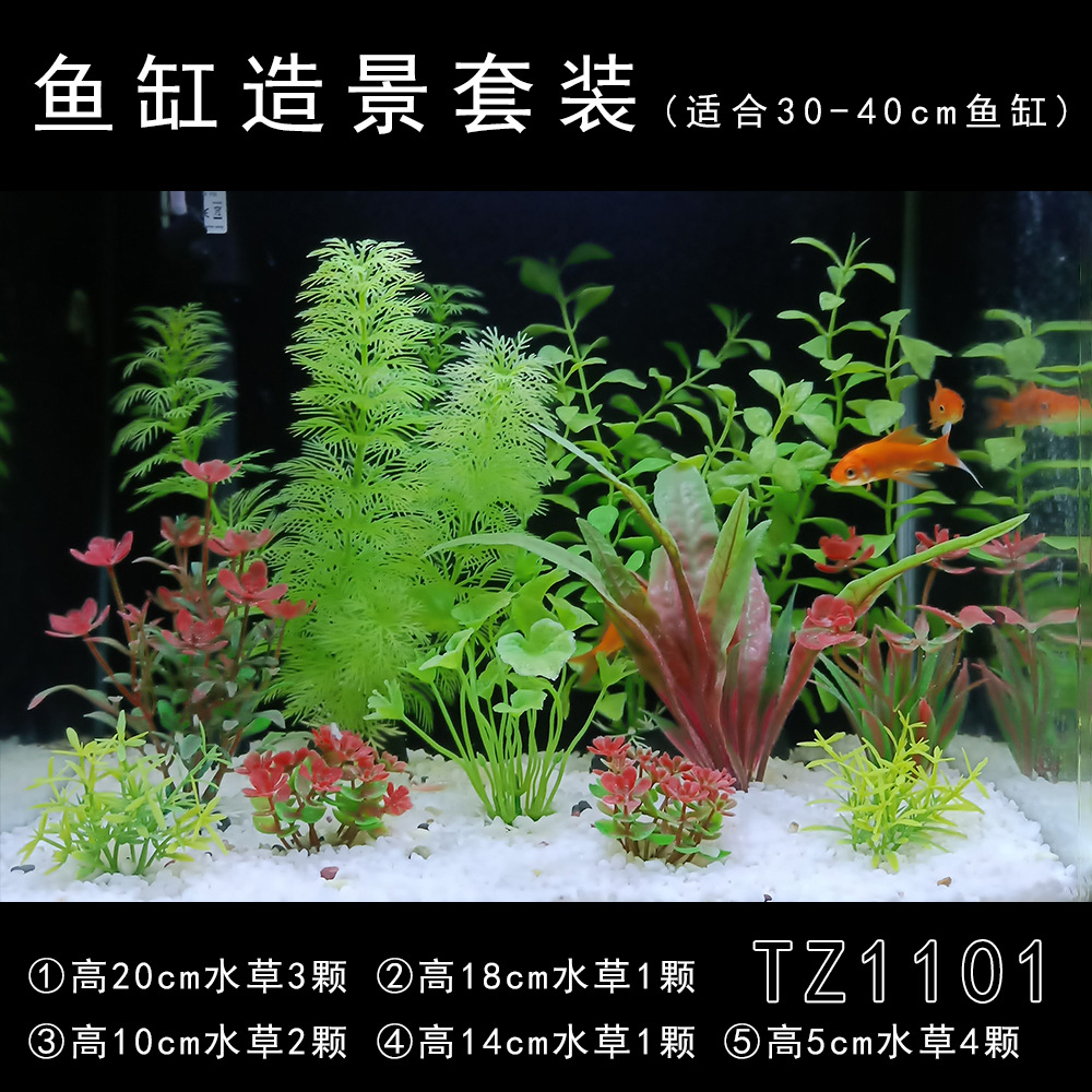 Set produk jadi dekorasi akuarium, tanaman air buatan plastik, dekorasi akuarium impor, set lengkap untuk pemula, rumput laut palsu
