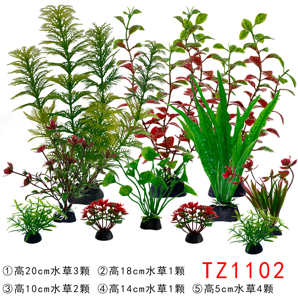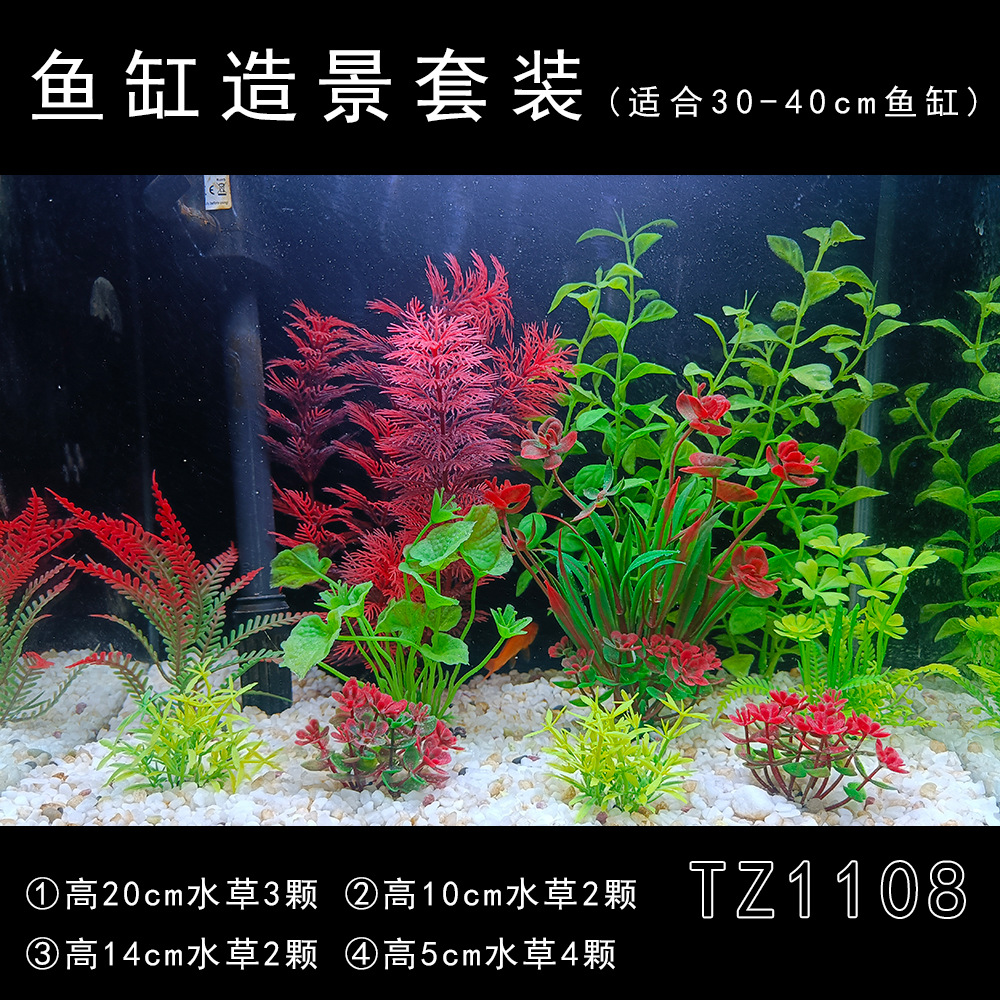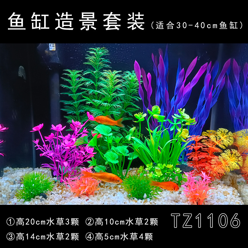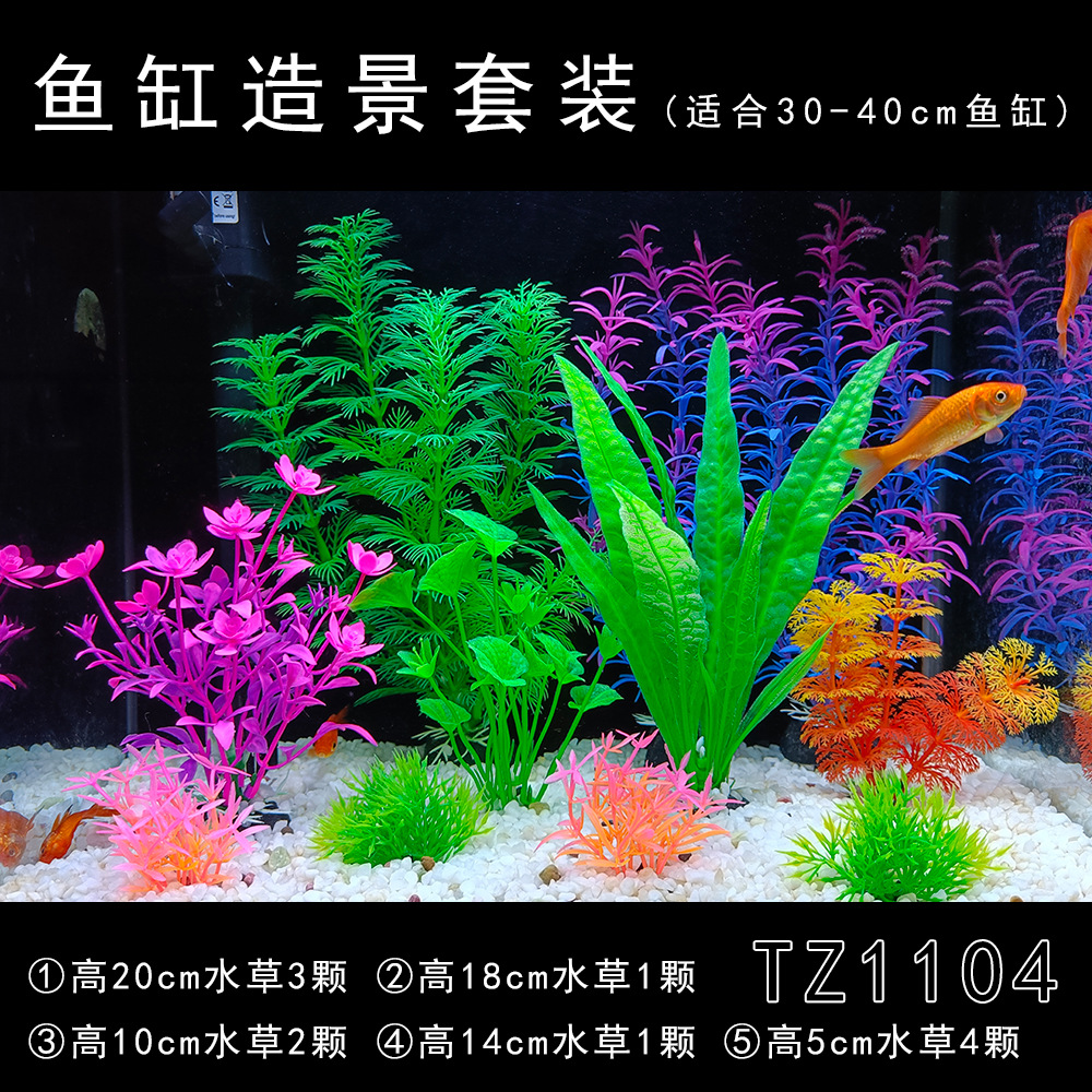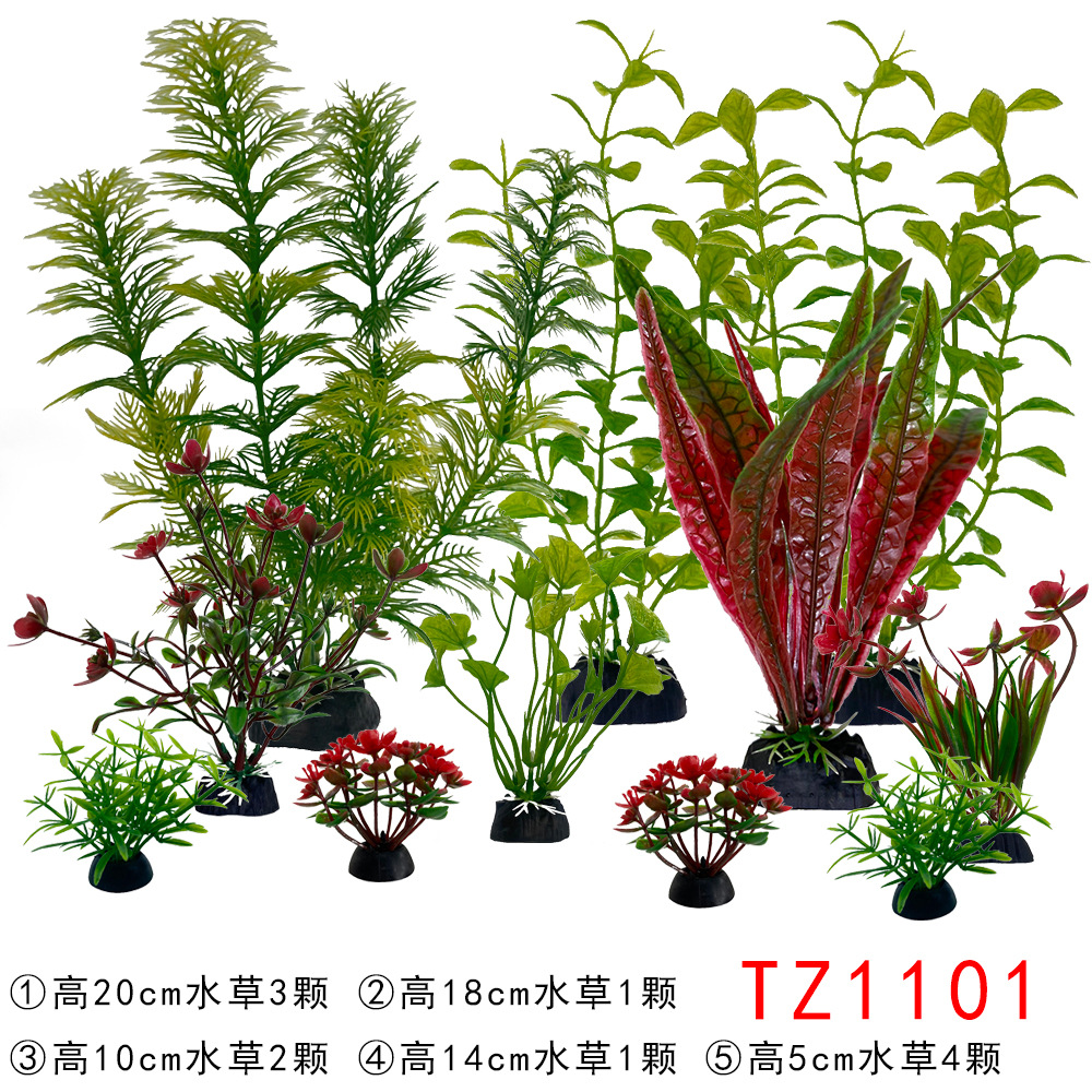 Set produk jadi dekorasi akuarium, tanaman air buatan plastik, dekorasi akuarium impor, set lengkap untuk pemula, rumput laut palsu