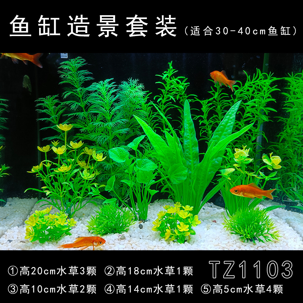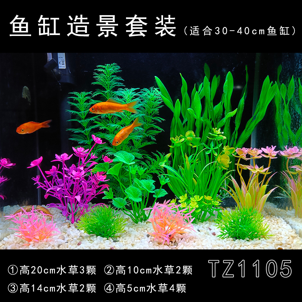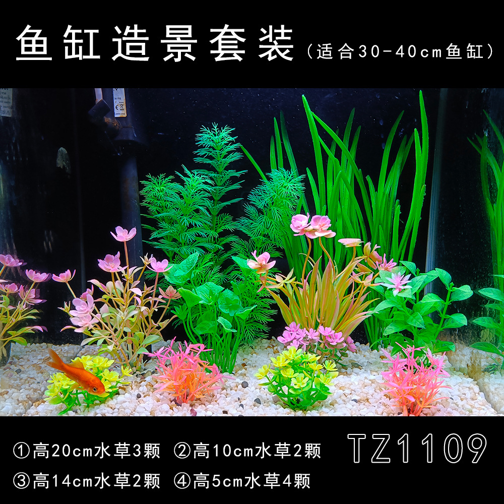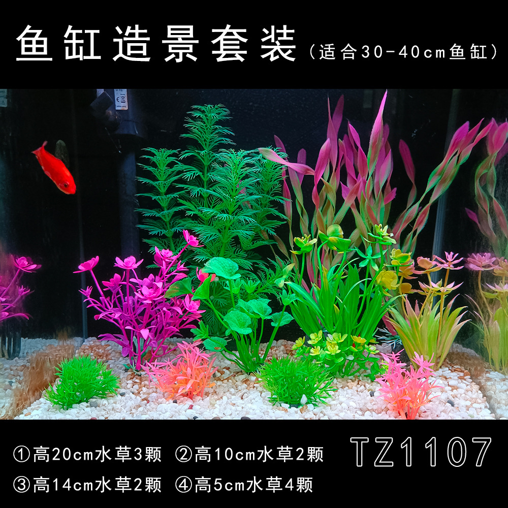 Set produk jadi dekorasi akuarium, tanaman air buatan plastik, dekorasi akuarium impor, set lengkap untuk pemula, rumput laut palsu