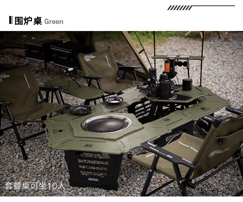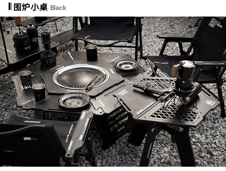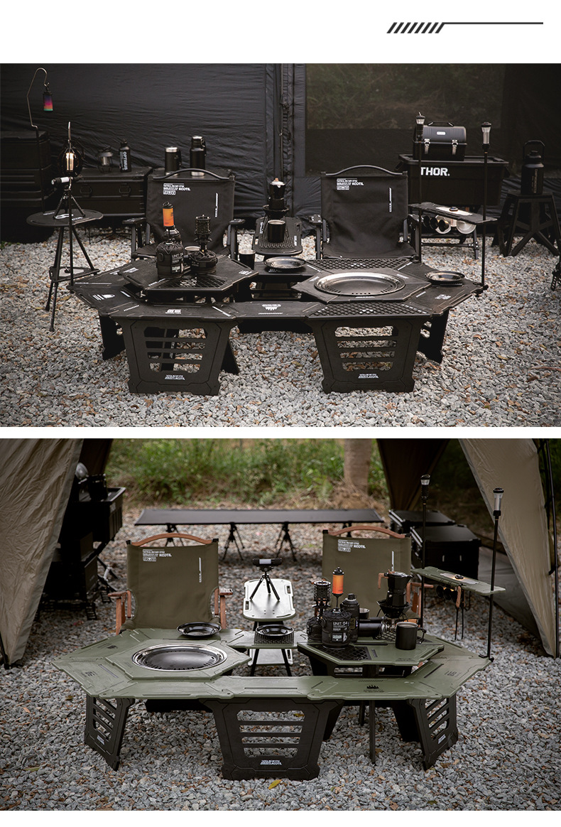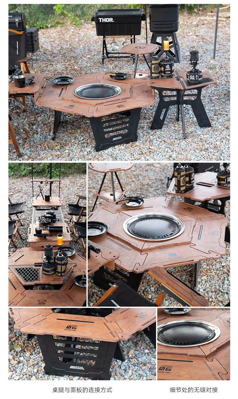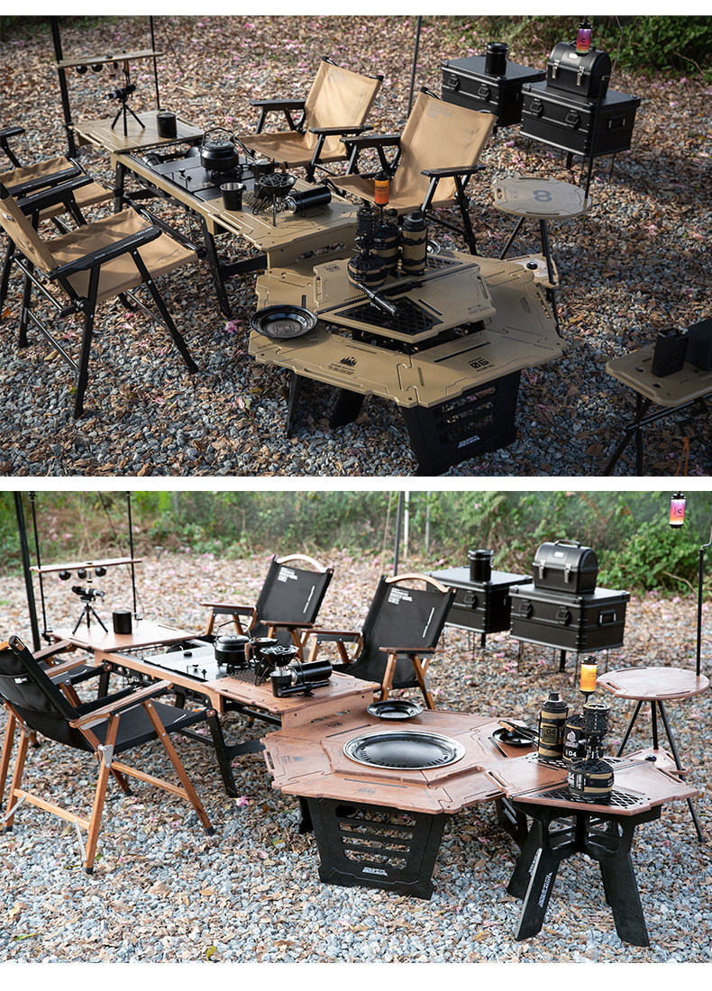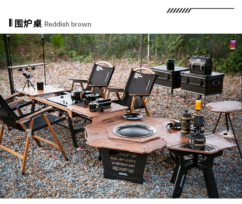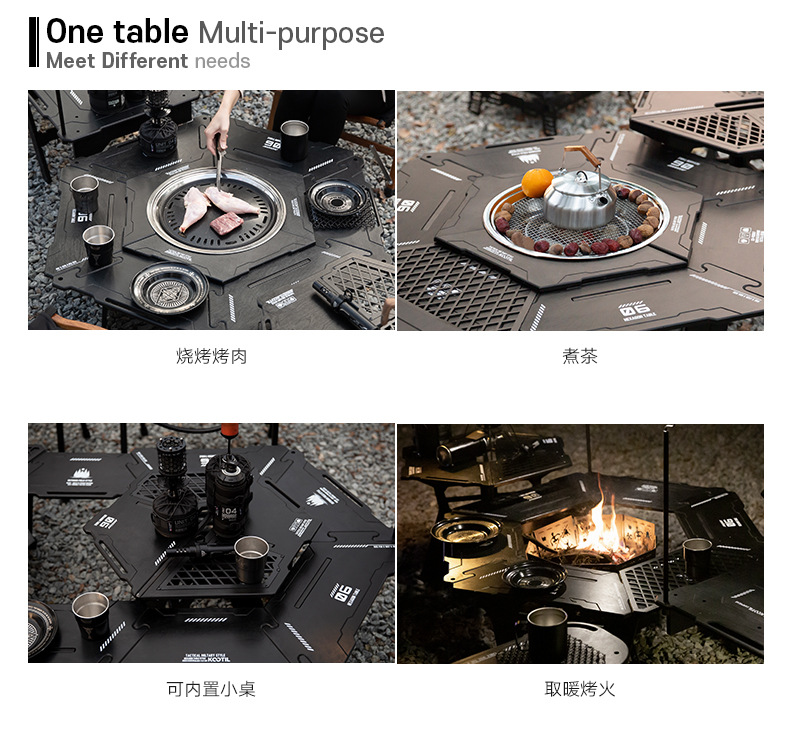 Meja kombinasi Multifungsi Camping, kompor luar ruangan meja teh berkemah, set lengkap meja barbekyu lipat heksagonal dapat dilepas