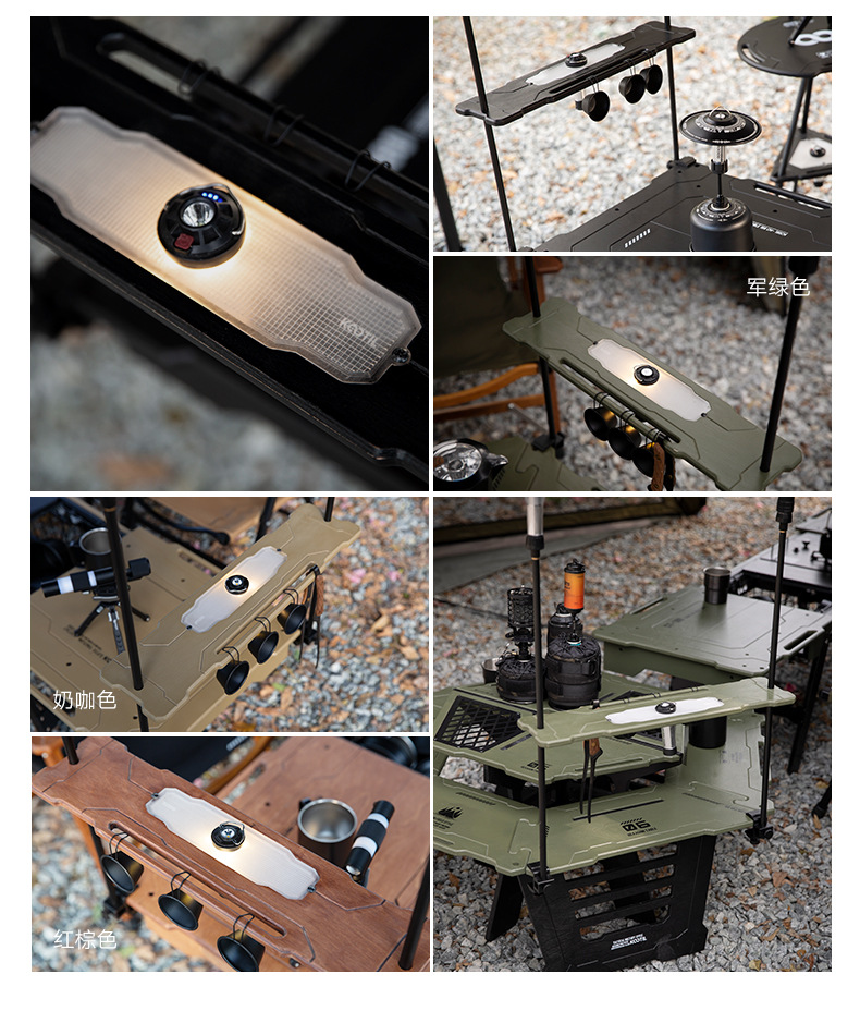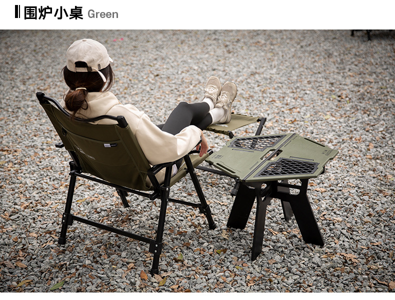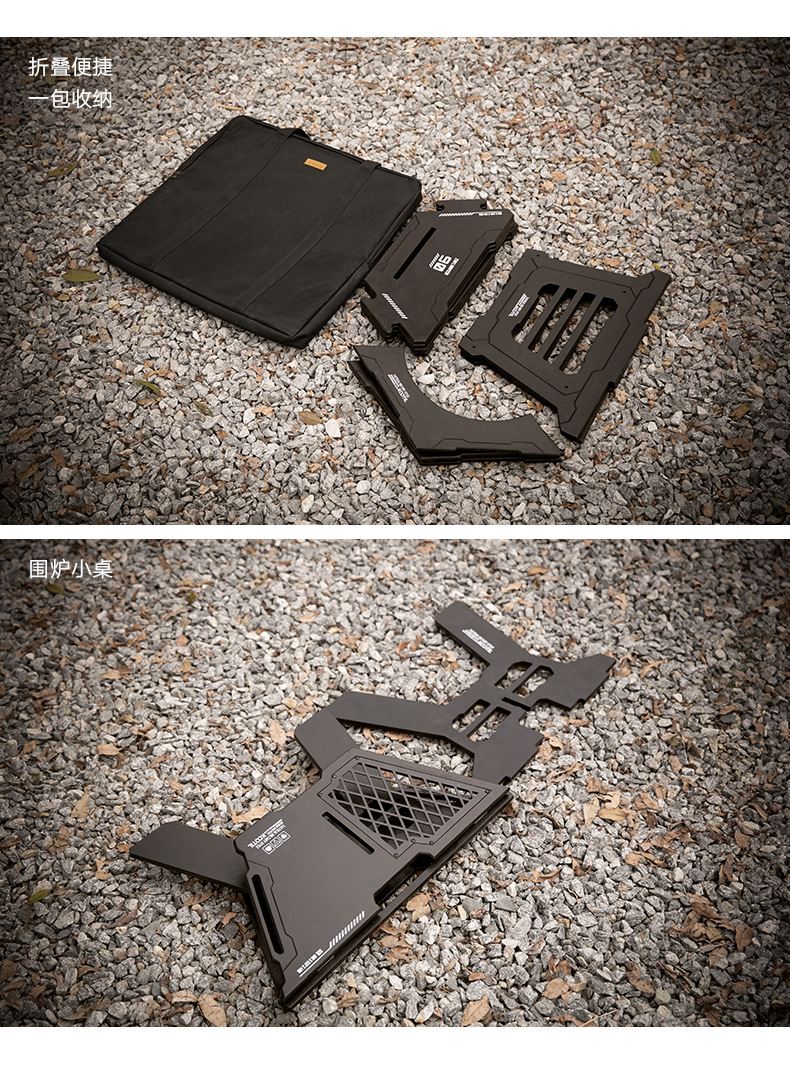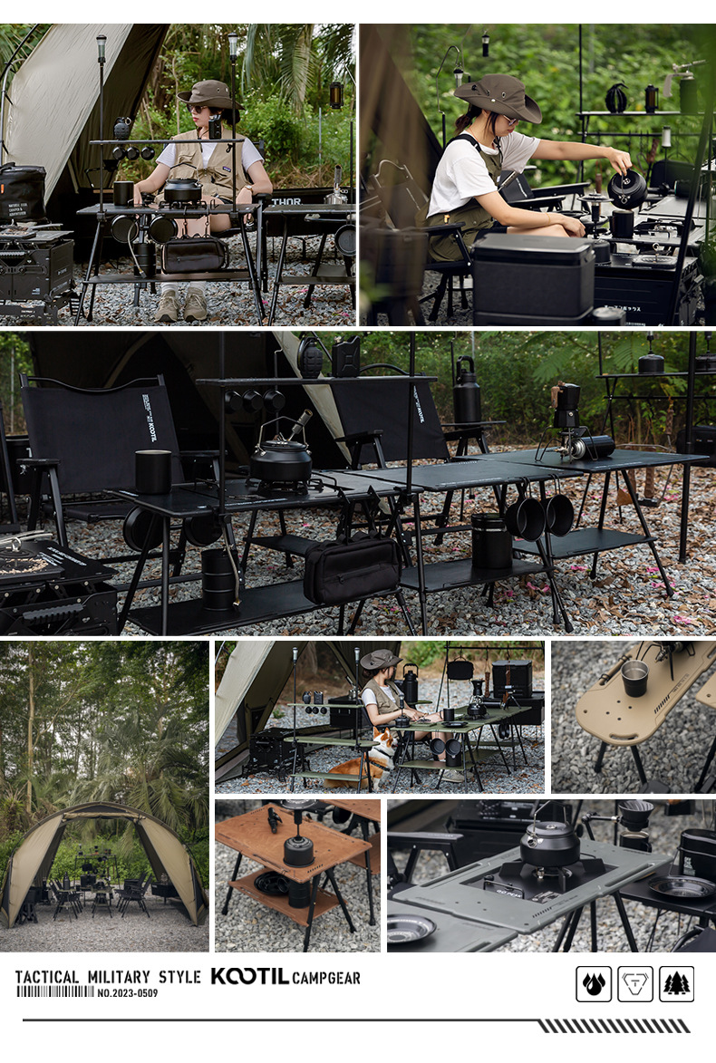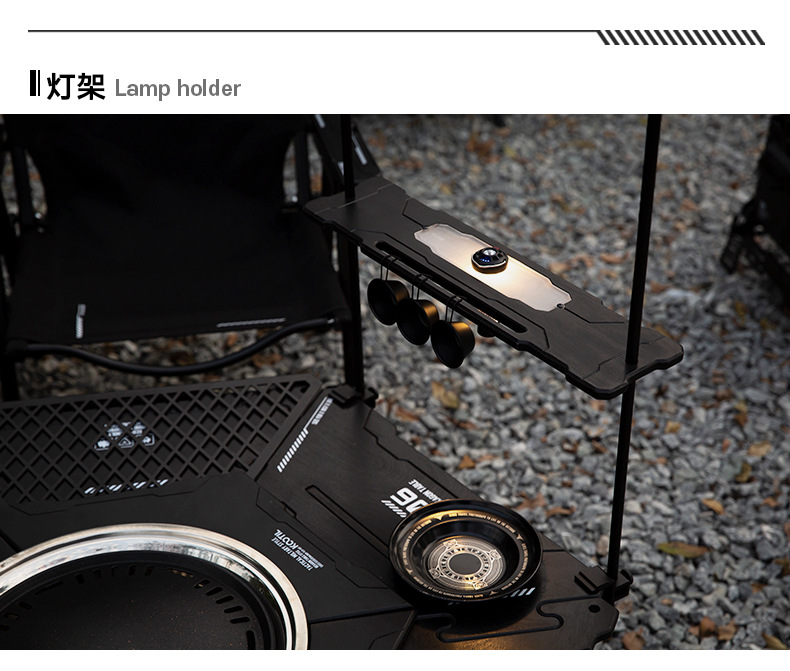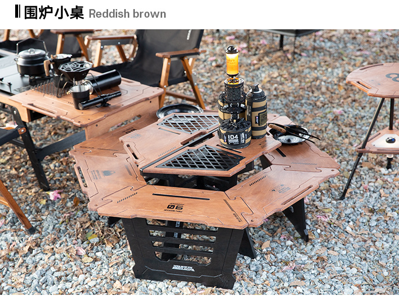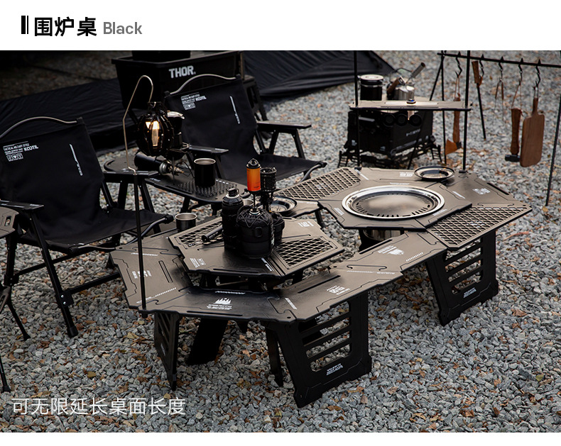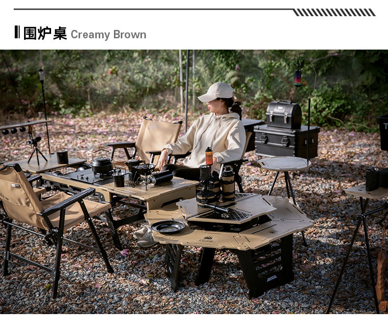 Meja kombinasi Multifungsi Camping, kompor luar ruangan meja teh berkemah, set lengkap meja barbekyu lipat heksagonal dapat dilepas