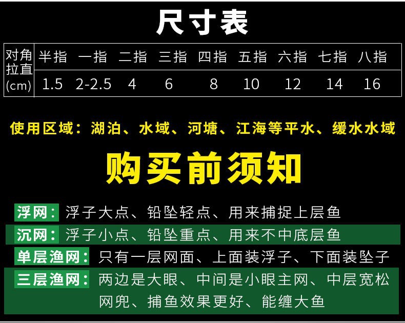 新手朋友可以参考下,方便选购渔网,渔获请以实际捕获为准!