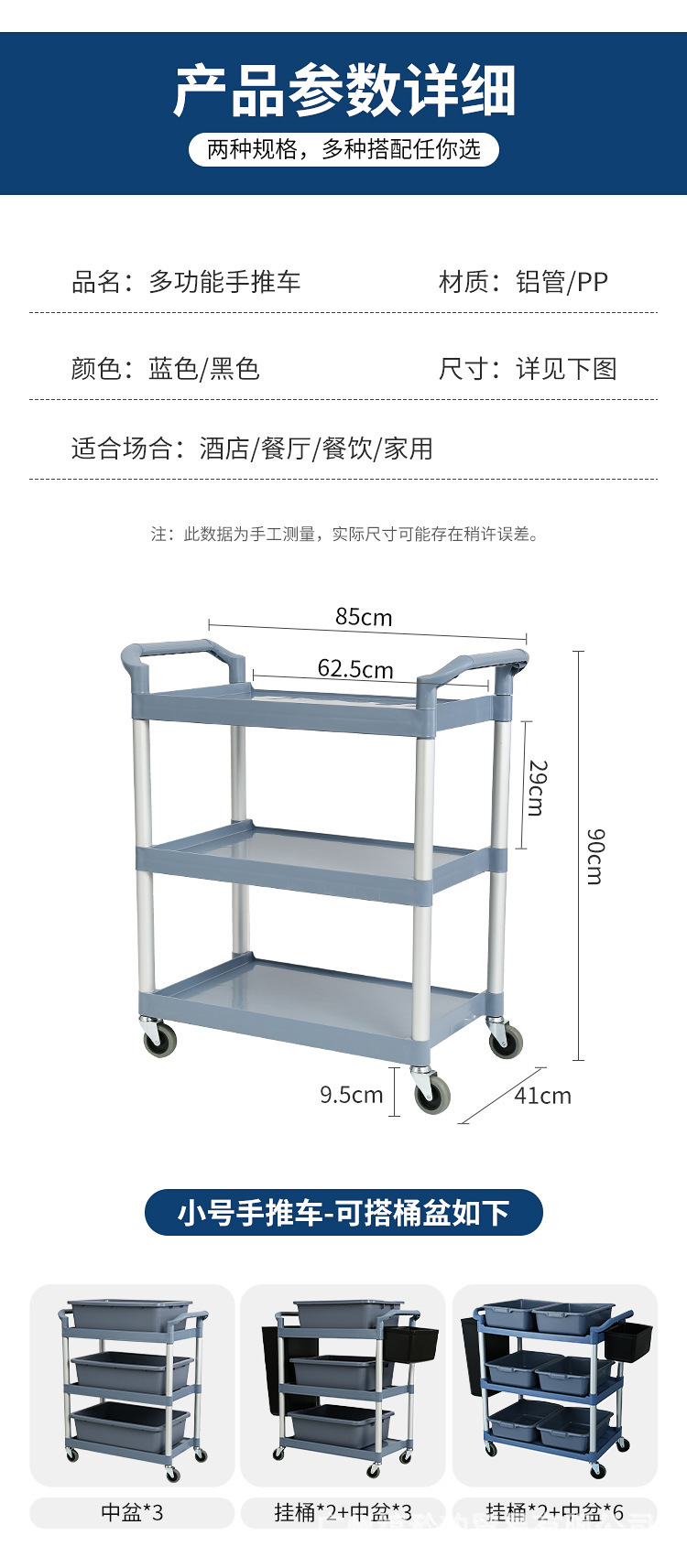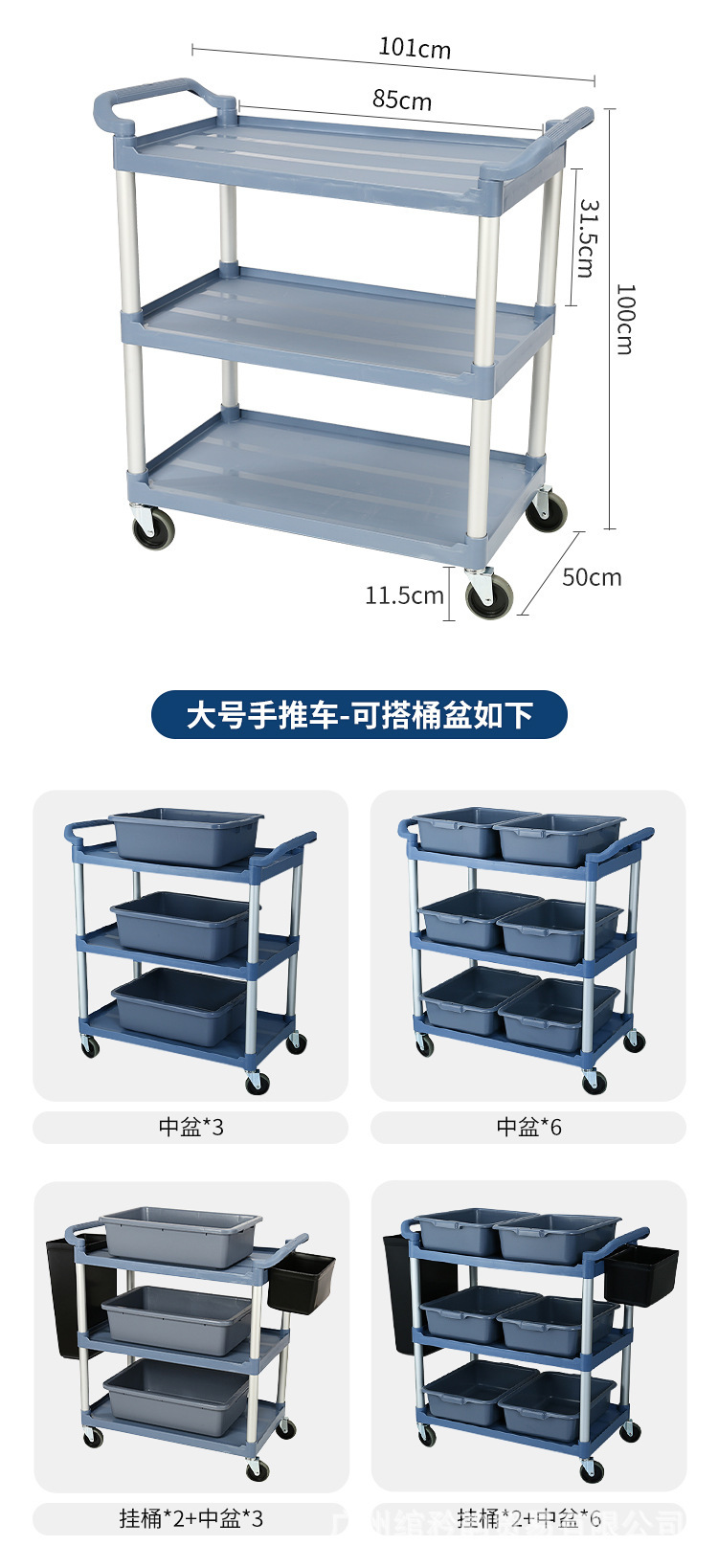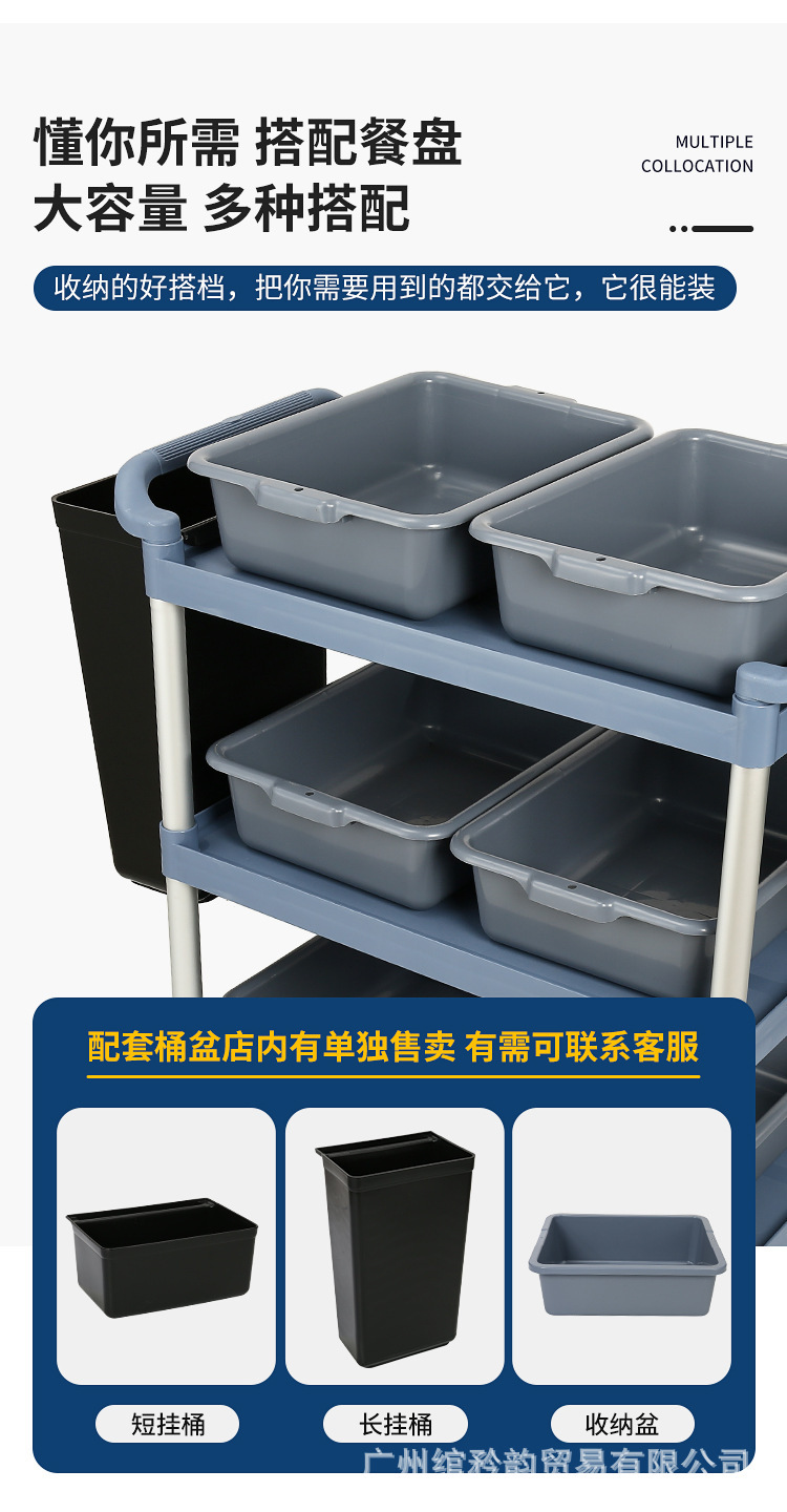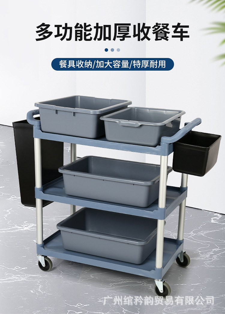 Gerobak makanan multifungsi, gerobak makan, gerobak penyajian restoran, troli tiga tingkat yang dapat dipasang di mobil hotel