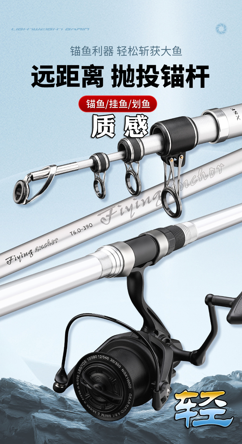 Sturgeon Shenggao tongkat pancing karbon super ringan super keras jangkar set penuh gulungan pancing anchor tembakan panjang memancing ikan gantung raksasa jangkar tongkat pancing laut